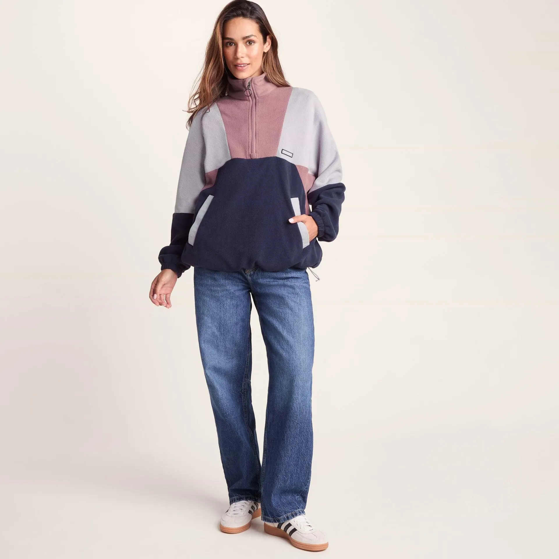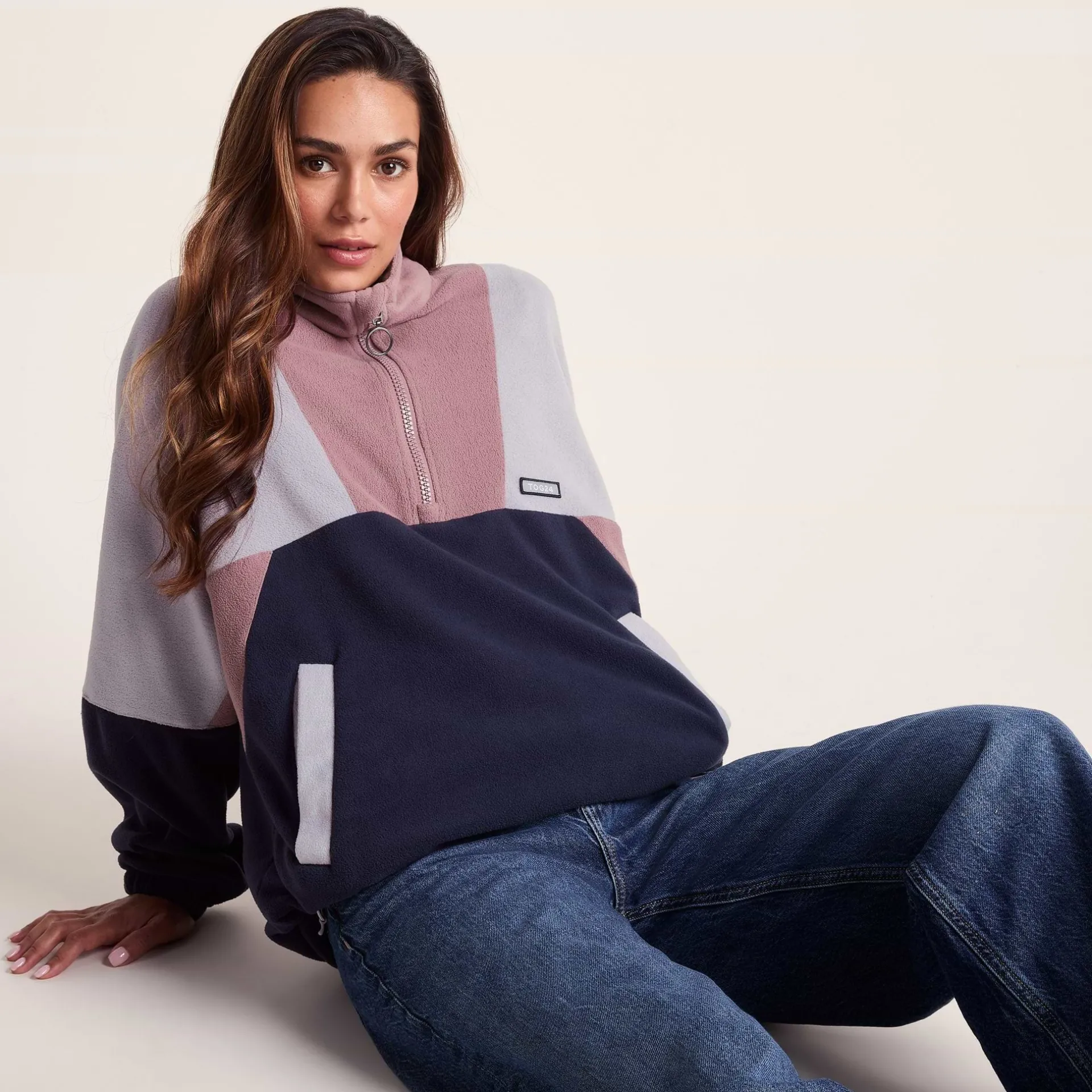Product DescriptionAfter a retro vibe with a modern twist? This microfleece zip ticks all the boxes. In a dreamy colour block mix, it takes inspiration from our classic heritage fleeces – just updated with softer microfleece and bags of retro charm.nnThe oversized fit and batwing sleeves give it that relaxed silhouette that’s perfect for chucking on over layers, while the colour block panelling is proper old-school cool. When the temperature drops, you’ll appreciate how lightweight and warm this zip-up jumper is, thanks to 220gsm of microfleece that keeps the chill off without weighing you down.nnThe practical details haven’t been forgotten either – toggle adjusters at the hem let you customise your fit, while the elasticated cuffs keep the warmth in and the chill out. There are two lower pockets for your bits and bobs, plus a tidy TOG24 badge on the chest to finish things off nicely.nnWhether you’re heading up a hill or just down the road to the pub, the pullover has got that cosy but stylish energy naiFeaturesLightweight u0026amp; warm microfleeceAnti-pill finishColour block panellingBatwing sleeveOversized fitZip neck opening2 Lower pockets – no zipsToggle adjusters to hemElasticated cuffsTOG24 badge on chest220gsmFitStudio model Gina Dress 8/10 uk Height 5’11* Bust 34c Waist 26.5