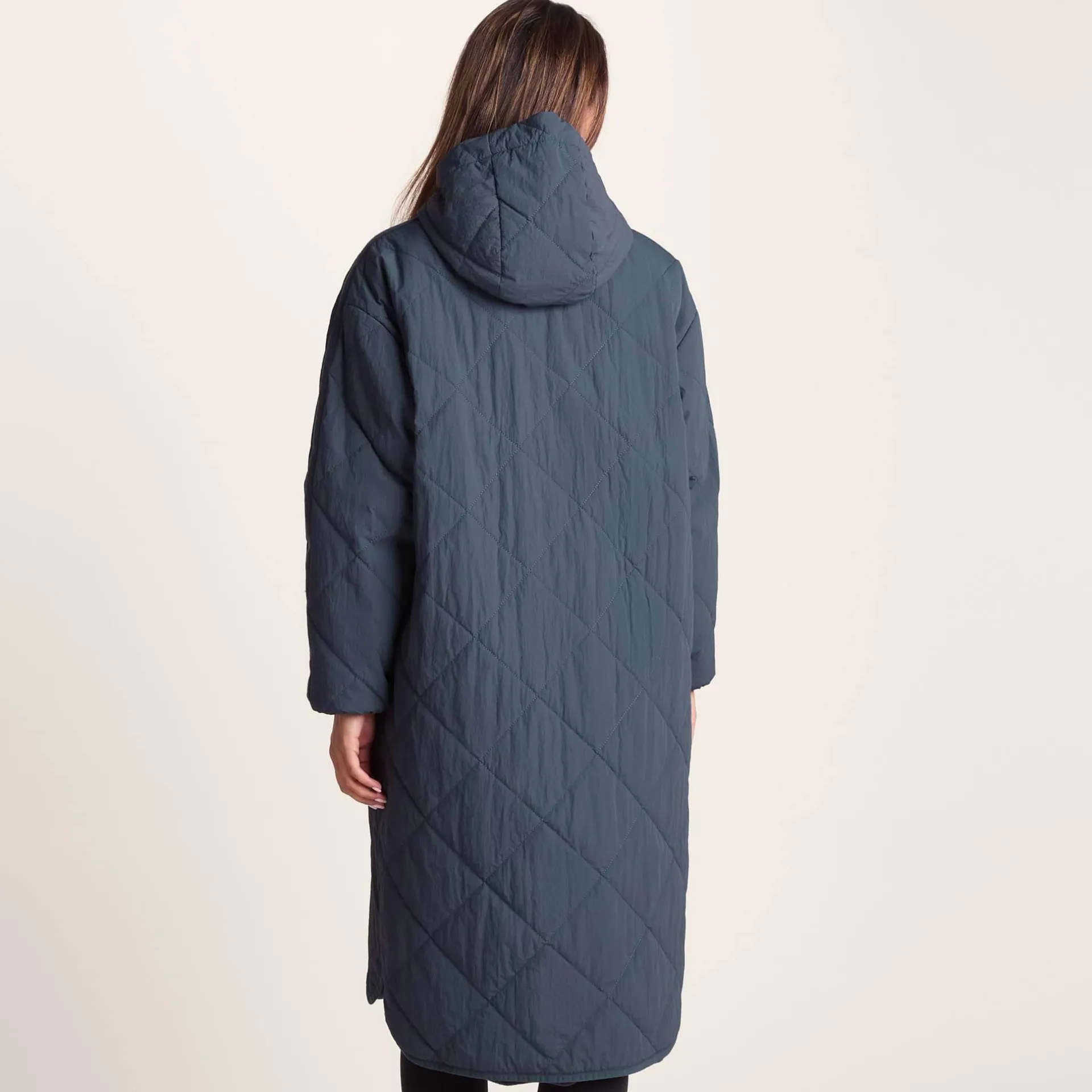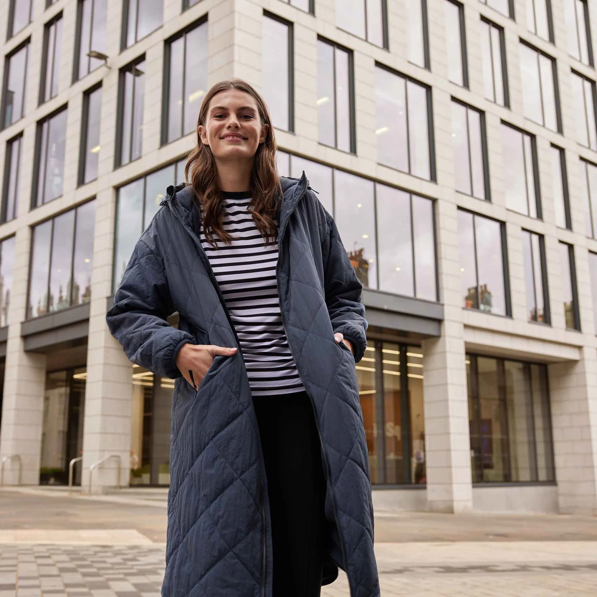 Product DescriptionIf youâre looking for a womenâs coat that keeps you toasty warm, is bang on trend, and looks right at home in the great outdoors, then youâve found your perfect match in the Banton. Its longer length provides extra protection from the elements, while the insulated diamond quilted baffles and soft microfleece lining will keep you warm and comfortable. The practicalities of the Banton ladiesâ waterproof coat donât end there, as not only is this coat great at keeping you warm, it also allows great movement too. nnThe two-way zip on this womenâs jacket enables free-feeling mobility, while the toggle adjusters on the hood add that much-appreciated bit of protection to the face when the wind picks up. Top it off with the fact that the Banton can protect you in light rain thanks to its water-repellent coating, you can rest assured this womenâs knee-length coat has your back on cold, windy and drizzly days.FeaturesLight rain protection, wind resistant and warmInsulated FillingWater repellent coating (DWR)Diamond quiltingMicrofleece liningToggle adjusters on the hood opening2 way zip opening on front2 lower zip pocketsElastic binding to cuffs and hemWebbing detail on sleevesShaped hemTOG24 embroidery on pocketFitStudio model Narine Dress 6 uk Height 5′ 6½* Bust 32 Waist 24