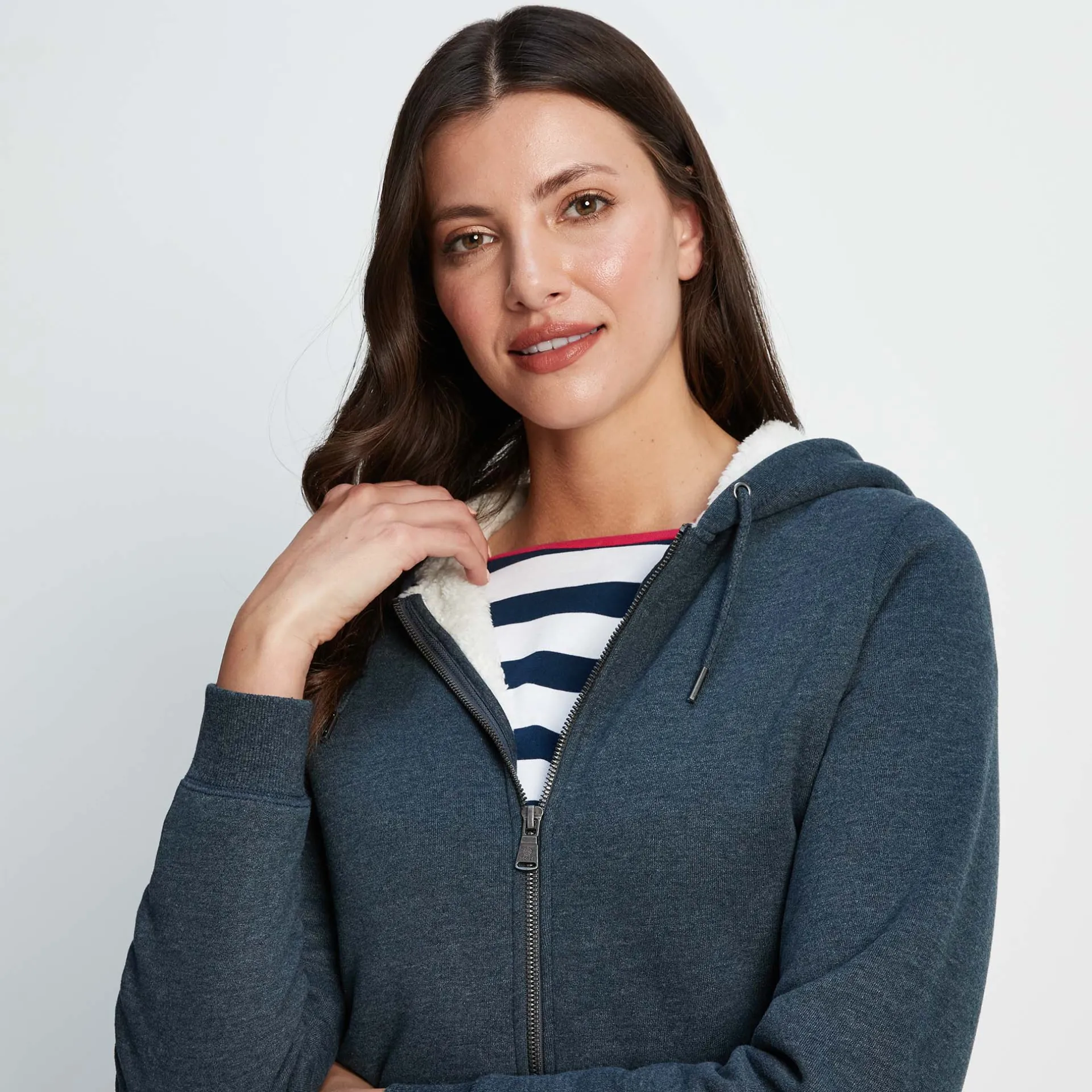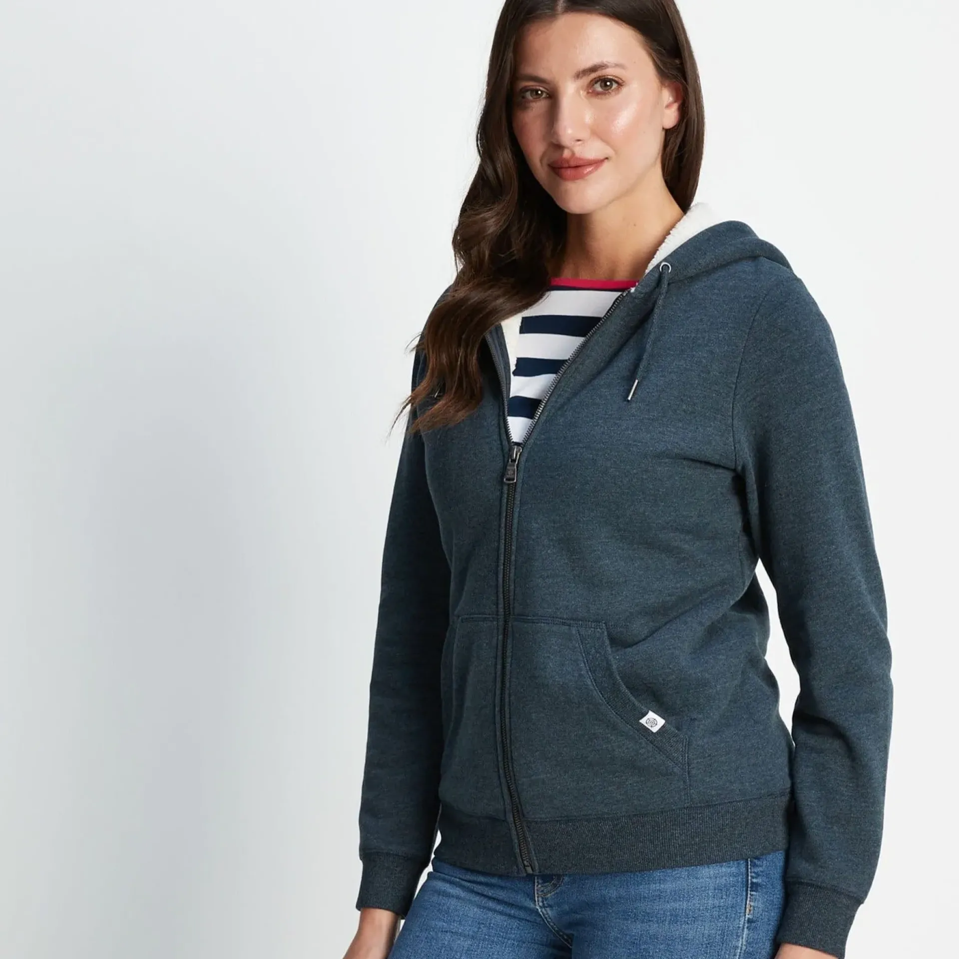 Product DescriptionDesigned to keep cold weather at bay, the Finch womens zip-up sweatshirt hoodie has an inside advantage – a luxuriously cosy sherpa fleece lining in the body and hood. It’s supersoft on the outside too with a gentle peach finish. Made for a typical Yorkshire winter, Finch comes in practical, rich colourways. Very easy to wear, the sleeves are unlined for easy movement whether you’re working outdoors or doing the supermarket shop. Finch also has a full-length zip and split kangaroo pocket. Ribbed cuffs and hem help to keep its shape. A small woven TOG24 pocket label is the finishing touch.FeaturesSupersoft zip-up sweatshirt hoodyWarm sherpa lining inside body and hoodFull-length zipSplit kangaroo pockets edged with ribbingRibbed cuffs and hemSmall woven TOG24 label on pocketFitStudio model Mayara is wearing size 8 and is 5’11