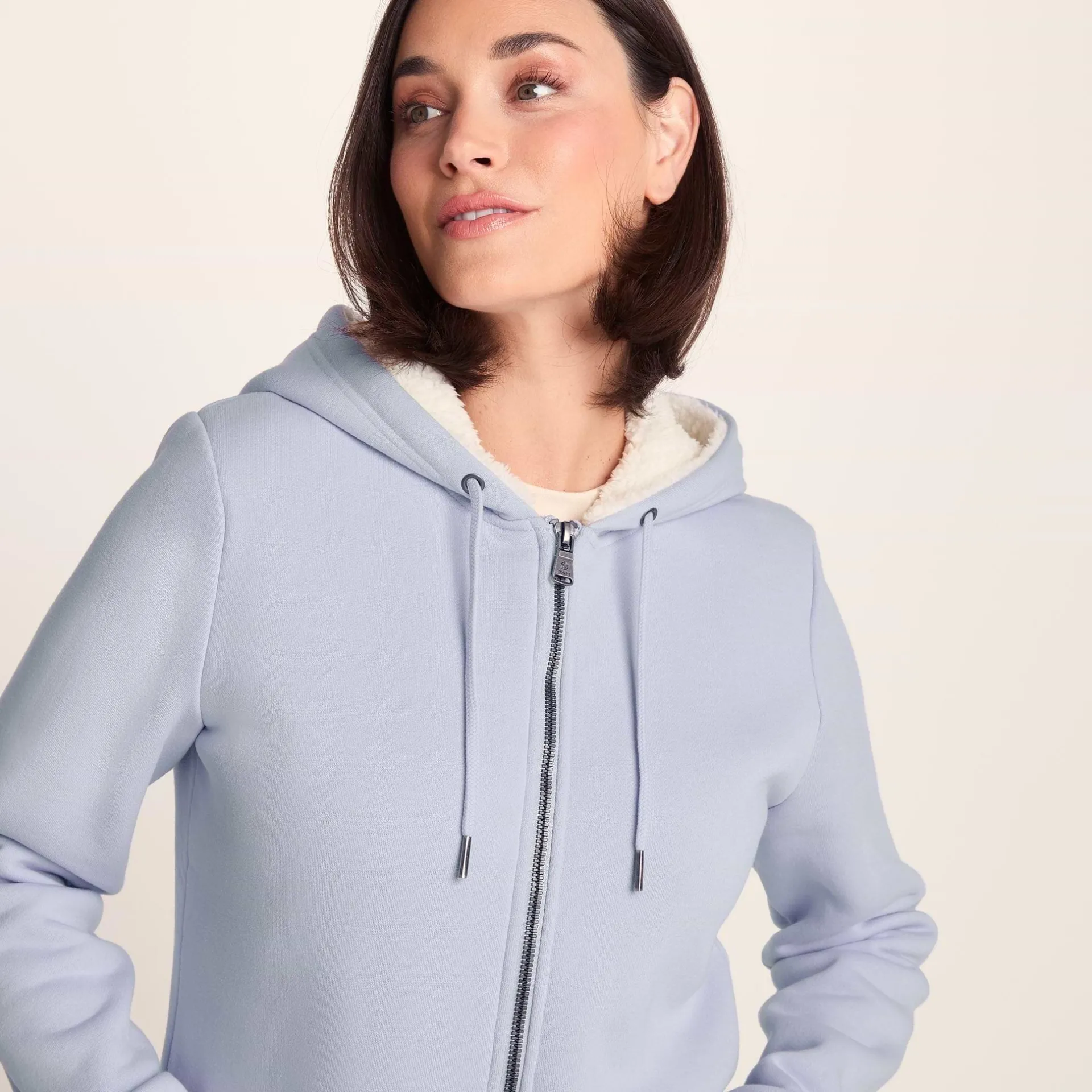 Product DescriptionDesigned to keep cold weather at bay, the Finch womens zip-up sweatshirt hoodie has an inside advantage – a luxuriously cosy sherpa fleece lining in the body and hood. It’s supersoft on the outside too with a gentle peach finish. Made for a typical Yorkshire winter, Finch comes in practical, rich colourways. Very easy to wear, the sleeves are unlined for easy movement whether you’re working outdoors or doing the supermarket shop. Finch also has a full-length zip and split kangaroo pocket. Ribbed cuffs and hem help to keep its shape. A small woven TOG24 pocket label is the finishing touch.FeaturesSupersoft zip-up sweatshirt hoodyWarm sherpa lining inside body and hoodFull-length zipSplit kangaroo pockets edged with ribbingRibbed cuffs and hemSmall woven TOG24 label on pocketFitStudio model Georgia Dress 8 uk Height 5’10* Bust 34 Waist 25.5