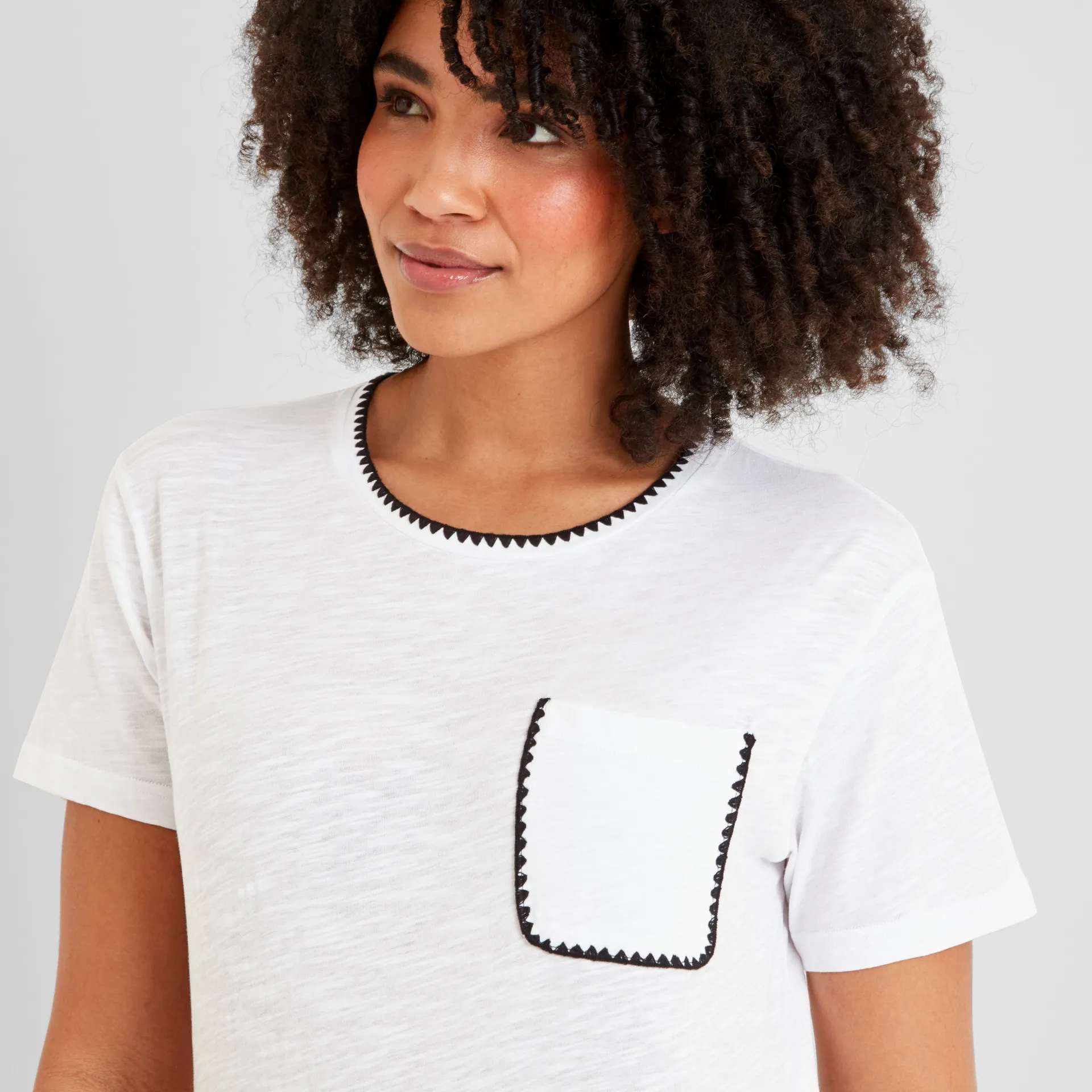 Clearance*This product is excluded from all additional promo code discountsProduct DescriptionThe Liana supersoft cotton tee is a perfect pick for warm summer days. Made from ultra-soft cotton, it feels light and breathable, keeping you comfortable all day long. The scooped neckline and subtle laddering detail around the neck and pocket add a stylish touch, while the laid-on pocket brings a casual, relaxed vibe. Finished with lovely embroidery and the TOG24 label on the hem, this tee pairs beautifully with wide-fit trousers for a little-bit-smarter-than-casual summer look. Whether you’re out and about or enjoying some downtime, the Liana tee is a must-have for your warm weather wardrobe.FeaturesSUPERSOFT COTTON TEESCOOPED NECK LINEWHIP STITCH EMBROIDERY DETAIL AROUND NECK AND POCKETLAID ON POCKETTOG24 LABEL ON THE HEMFitStudio model Erik is wearing size M and is 5’11