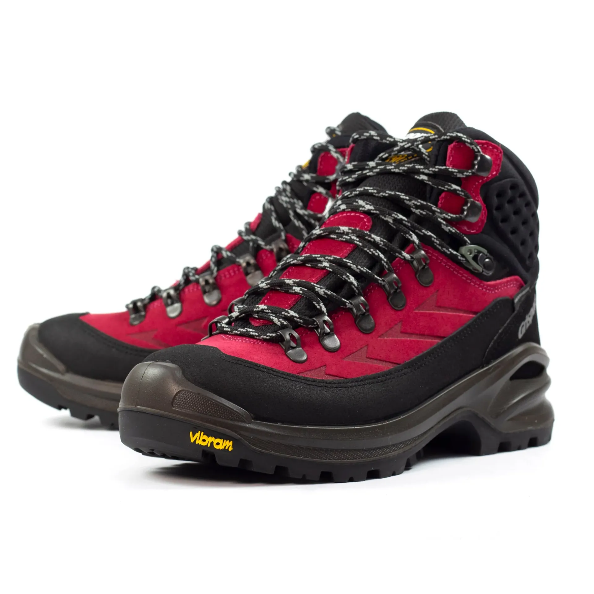 Product DescriptionThe Lady Nevis red walking boot blends style and performance. Featuring a waterproof membrane, Vibram® non-slip sole, and triple-density midsole, it ensures comfort and durability. The premium suede leather upper, dynamic arch support, and anti-scuff heel provide stability and protection. Perfect for long walks, it’s a stylish choice for outdoor adventures.FeaturesWaterproof Membrane – Seals out Water u0026amp; Allows Moisture To EscapePremium Suede Leather UpperVibram ‘Light-Trek’ Non-slip Rubber SoleInternal Waterproof ‘Bootie’ ConstructionTriple-Density Midsole – Absorbs Walking Impact to Allow All-day Comfort On Longer Walks’Quick-Fast’ Middle Lace Hook To Ensure Optimum Fitting, Auto Adjusts While Walking2-Zone Lacing SystemRemovable Anatomic InsolePadded, One-Piece Thermoformed Collar Created From New ‘Neo-Trek’ One Piece Soft-Touch Fabric100% Waterproof LacesDynamic Arch Support System for Foot Protection u0026amp; Heel LockingProtective Anti-Scuff Material On HeelMetal Speed Lacing HooksR-System Anti-Twist, Nylon Mid-sole for Rigidity on Uneven TerrainProtective u0026amp; Abrasion Resistant RandFitMaterial CompositionSuede LeatherCare