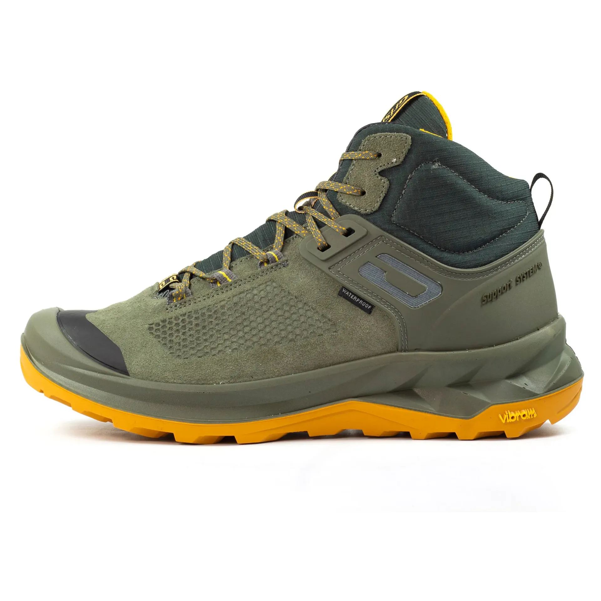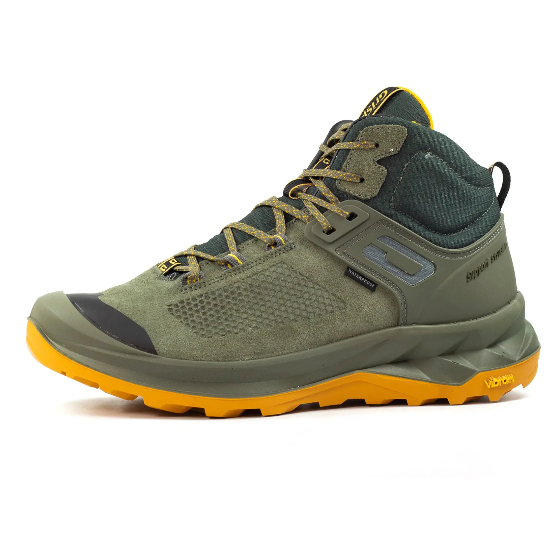Product DescriptionAll-Day Comfort â Designed with an anatomic footbed and cushioned collar, the Sherman offers superior support and reduces foot fatigue, keeping you comfortable mile after milennWaterproof u0026amp; Breathable â Featuring a waterproof, windproof u0026amp; breathable membrane, these boots keep your feet dry while allowing moisture to escapeâno more damp, uncomfortable walks.nnUnmatched Durability â Made from high-quality nubuck leather with reinforced stitching, the Sherman is built to withstand even the toughest conditions, making it a boot you can rely on for years.nnGrip u0026amp; Stability You Can Trust â The ‘Vibram’ rubber sole delivers exceptional traction on wet, uneven, and slippery surfaces, ensuring you stay steady on your feet no matter the adventure.nnTimeless Military Green Design â Adventure-ready and stylish, the Shermanâs military green finish makes it stand out in both performance and aesthetics.FeaturesWaterproof membrane, exceptional breathability and waterproof performanceNew Vibram ‘Adventure’ rubber sole with deeply defined lugs for increased tractionUltra-light midsole compound, with extra micro-air bubbles to absorb walking impactSuede leather/Cordura mesh mixed upperNew support system, designed to give personalised heel lock adjustment, for optimum fitToe protection cap – reinforced for toe protection and greater durabilitySeamless upper construction providing ultimate comfort and weight savingDouble stitched adjustment loops on the heel and tongueBellows tongue – keeps debris out and improves waterproofing capabilitiesSpeed lacing systemRemovable, carbon activated, memory foam footbedBreathable, inner-mesh lining providing increased air circulation100% waterproof laces and webbingPadded collar and tongue FitMaterial CompositionSuede LeatherCare