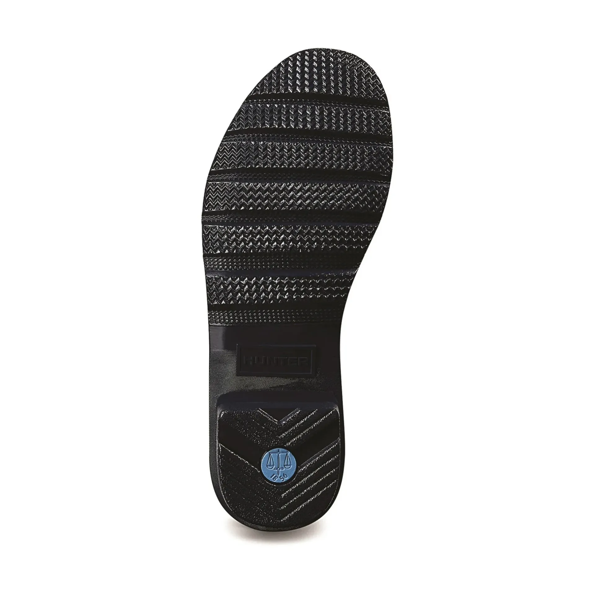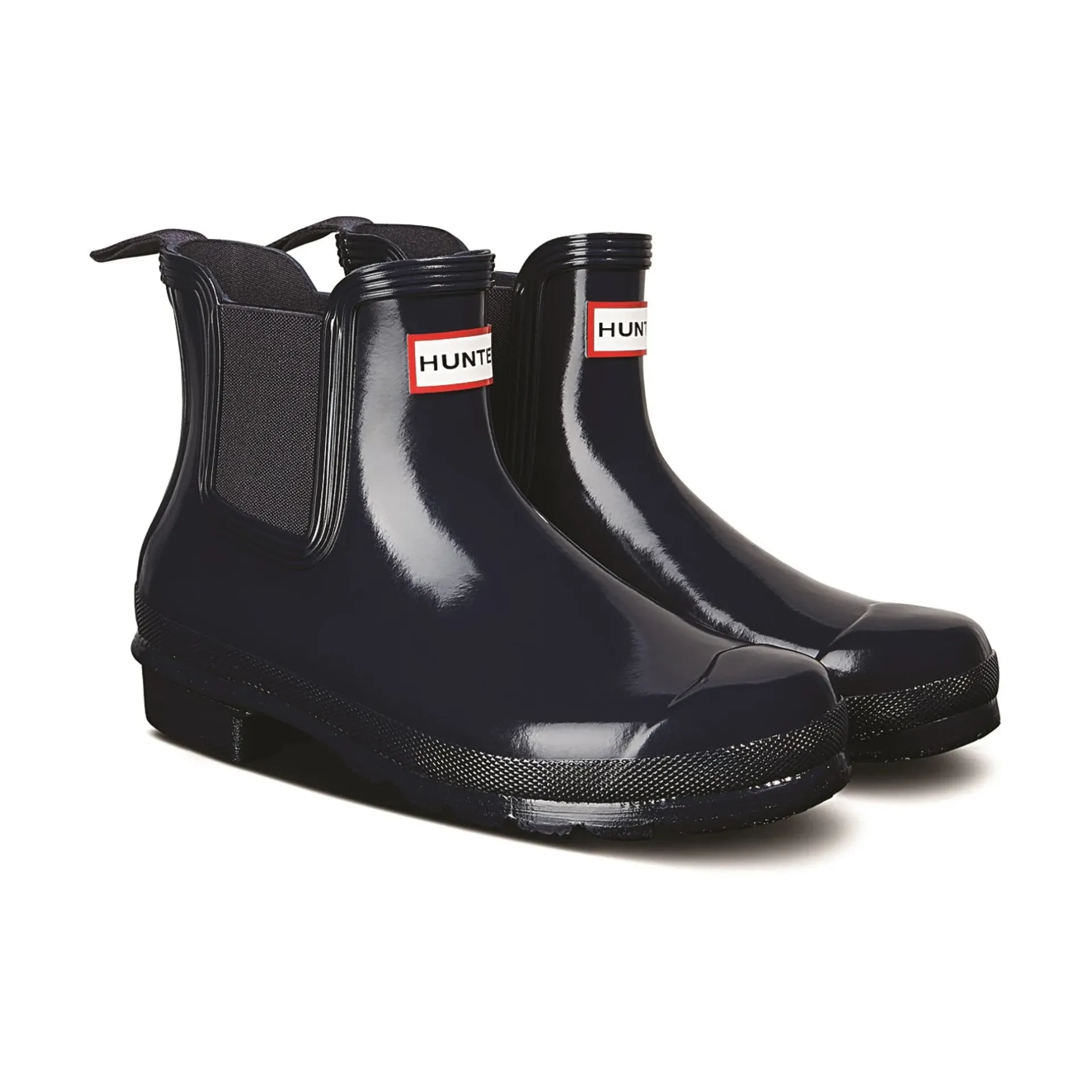 Product DescriptionThe Hunter Original Chelsea Boot has been re-engineered for an improved fit and all-day comfort. A wider ankle circumference, and an increased curve in the heel and around the Achilles tendon delivers an even more comfortable fit.FeaturesTrue to size, Regular fitElasticated-gussetsNylon pull-tabCrafted from natural vulcanised rubber with gloss finishFitMaterial CompositionUpper: Rubber. Lining: Polyester. Sole: Rubber.Care