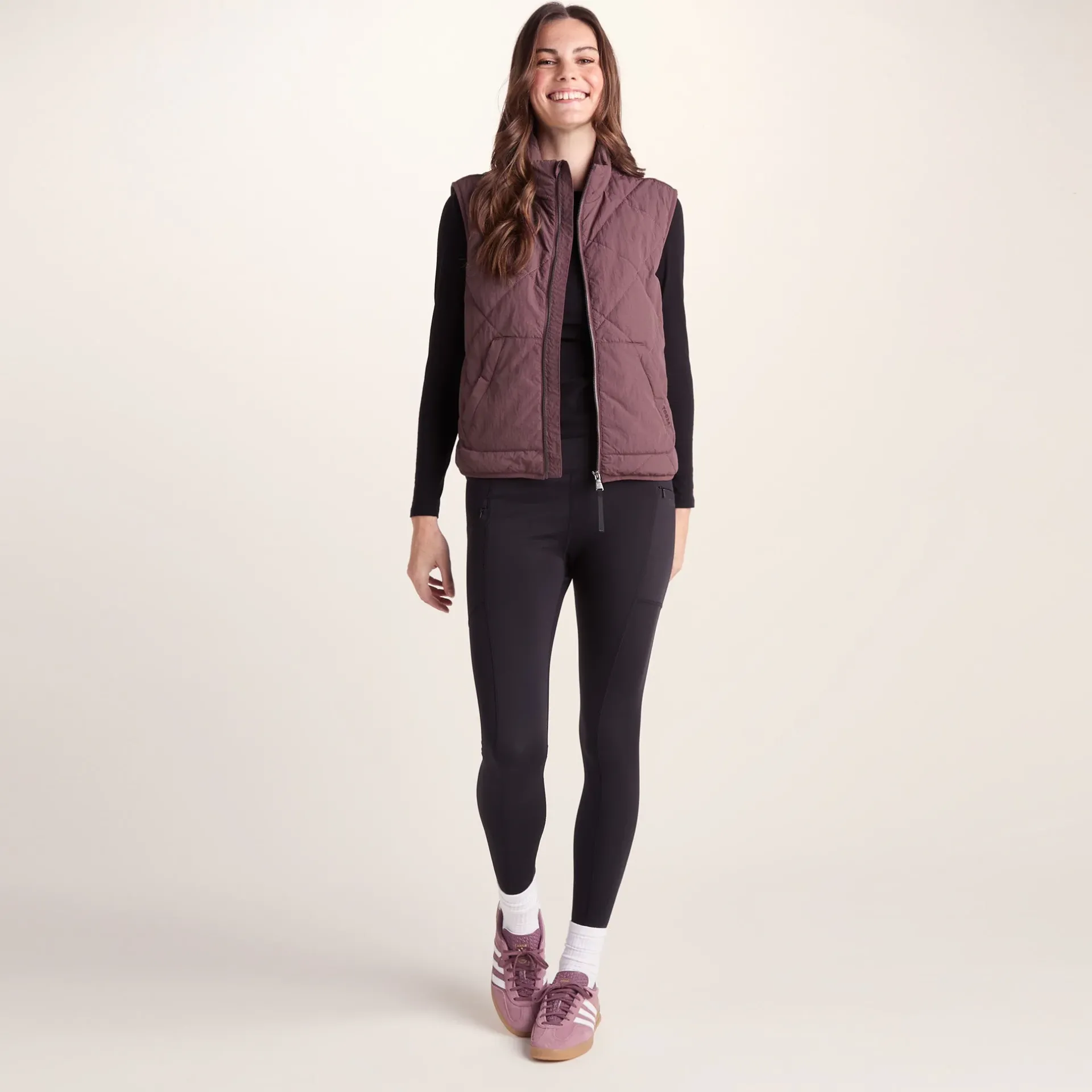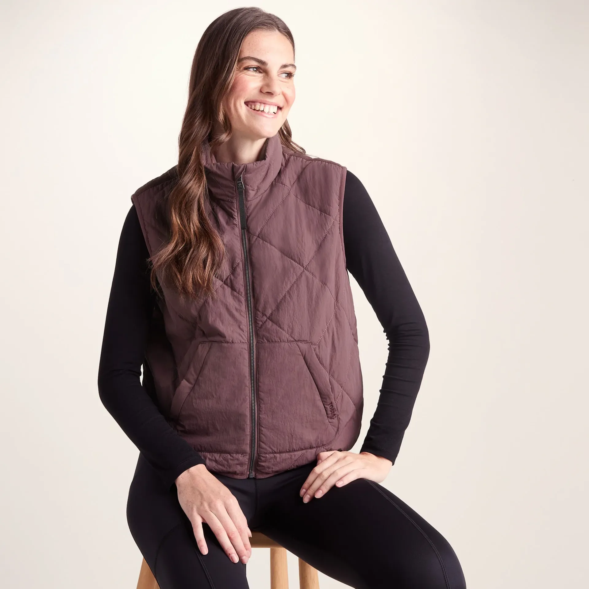 Product DescriptionLooking for a cosy layer when the temperature drops? The Juni winter gilet’s got you covered (quite literally) on those chilly days. With its relaxed, boxy fit and casual curved hem, this gilet sits just right on your frame without feeling too tight or bulky.rnThe handwarmer pouch pocket at the front gives you that comfy, hoodie-like feel, perfect for keeping your fingers toasty when the wind picks up. Its water-repellent DWR coating means light rain simply rolls off, while the diamond quilting with insulated fill traps heat close to your body.rnSlip your hands into the two lower zip pockets to keep your essentials secure, and enjoy the super-soft microfleece lining that feels like absolute bliss against your skin. The elastic binding around the armholes helps blocks out nasty draughts, while the webbing detail on the shoulders adds a little touch of style that makes this gilet stand out.rnThis women’s gilet is perfect for layering over a chunky-knit sweater or under a coat when it’s pFeaturesLight rain protection, wind resistant and warmWater repellent coating (DWR)Diamond quiltingMicrofleece liningRelaxed boxy fitCurved hem shapeZip opening on frontHandwarmer pouch pocket with zip pocketsElastic binding to armole and hemWebbing detail on shouldersHanging loop on backTOG24 embroidery on pocketFitStudio model Meg Dress 8 uk Height 5’10* Bust 34 Waist 25.5