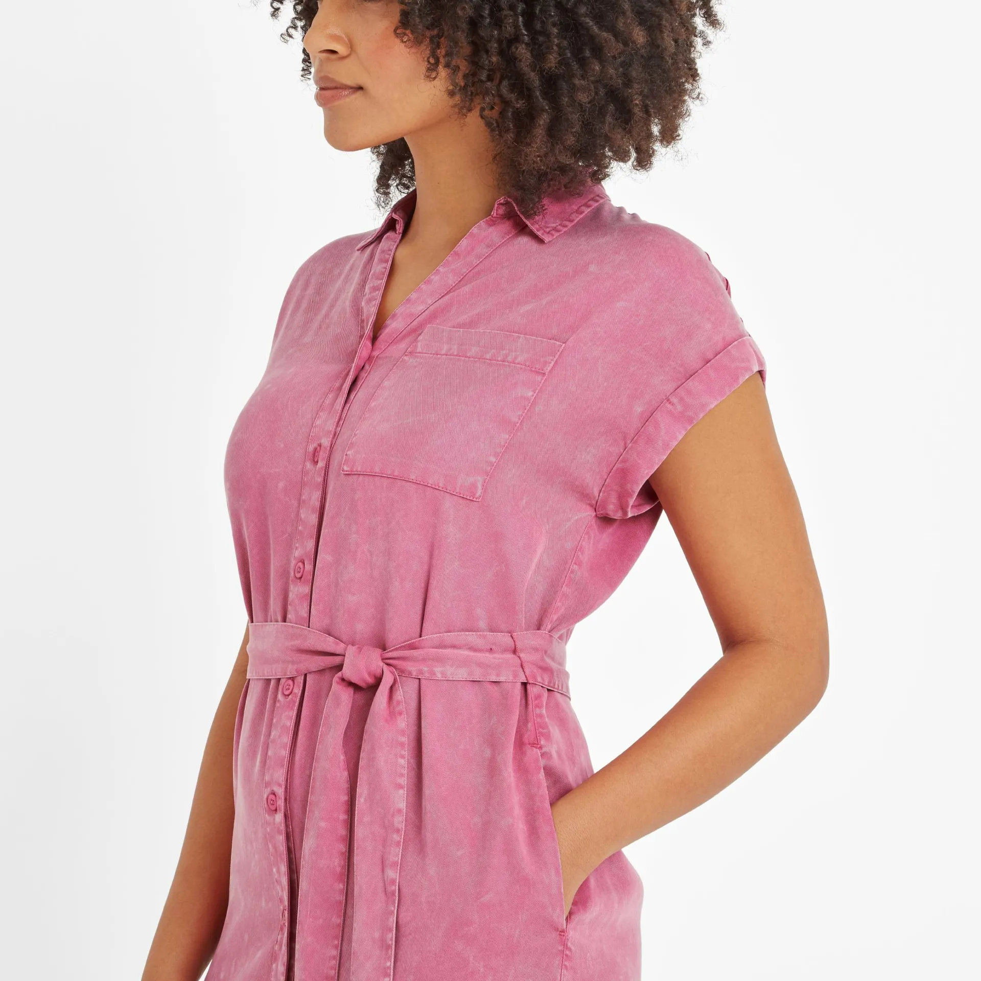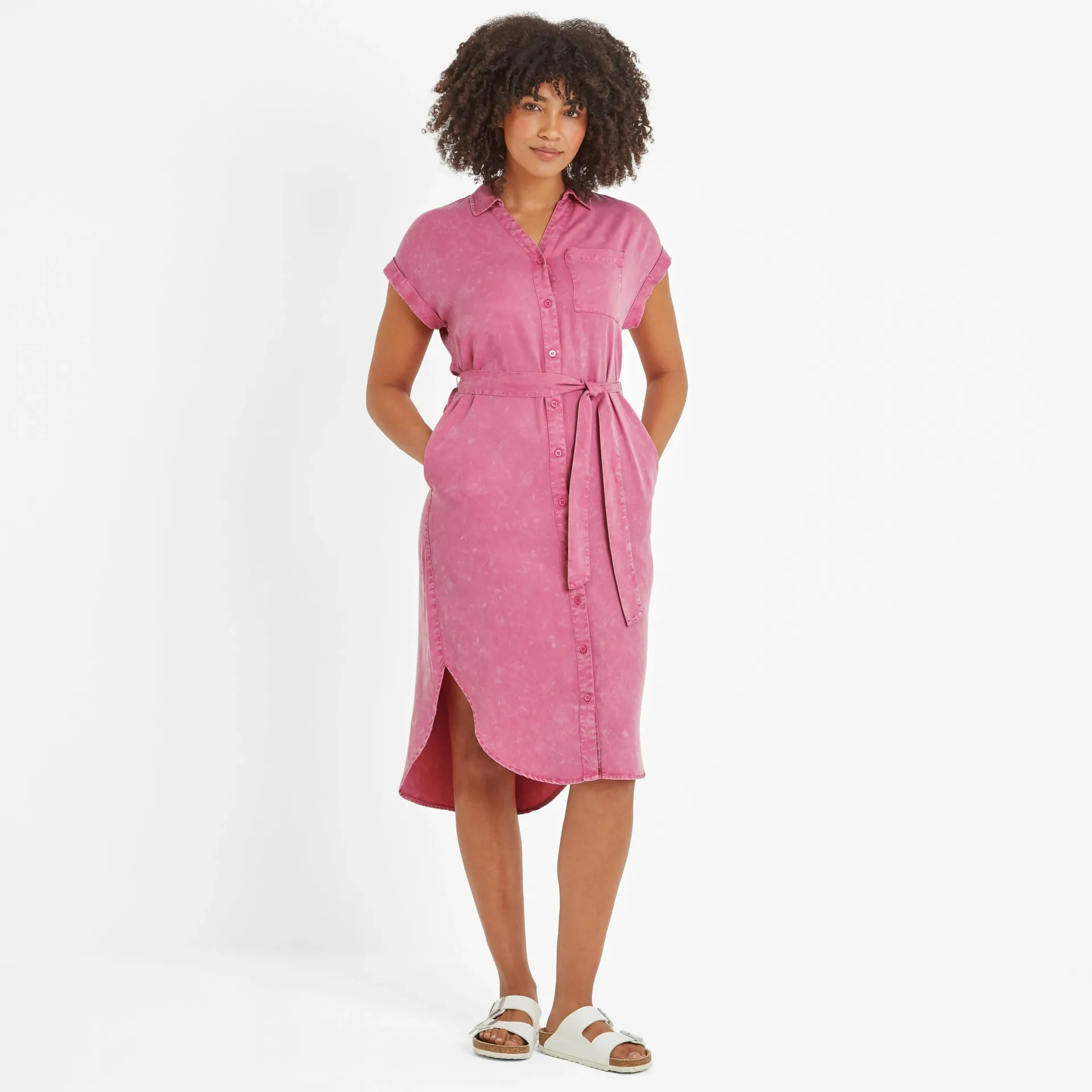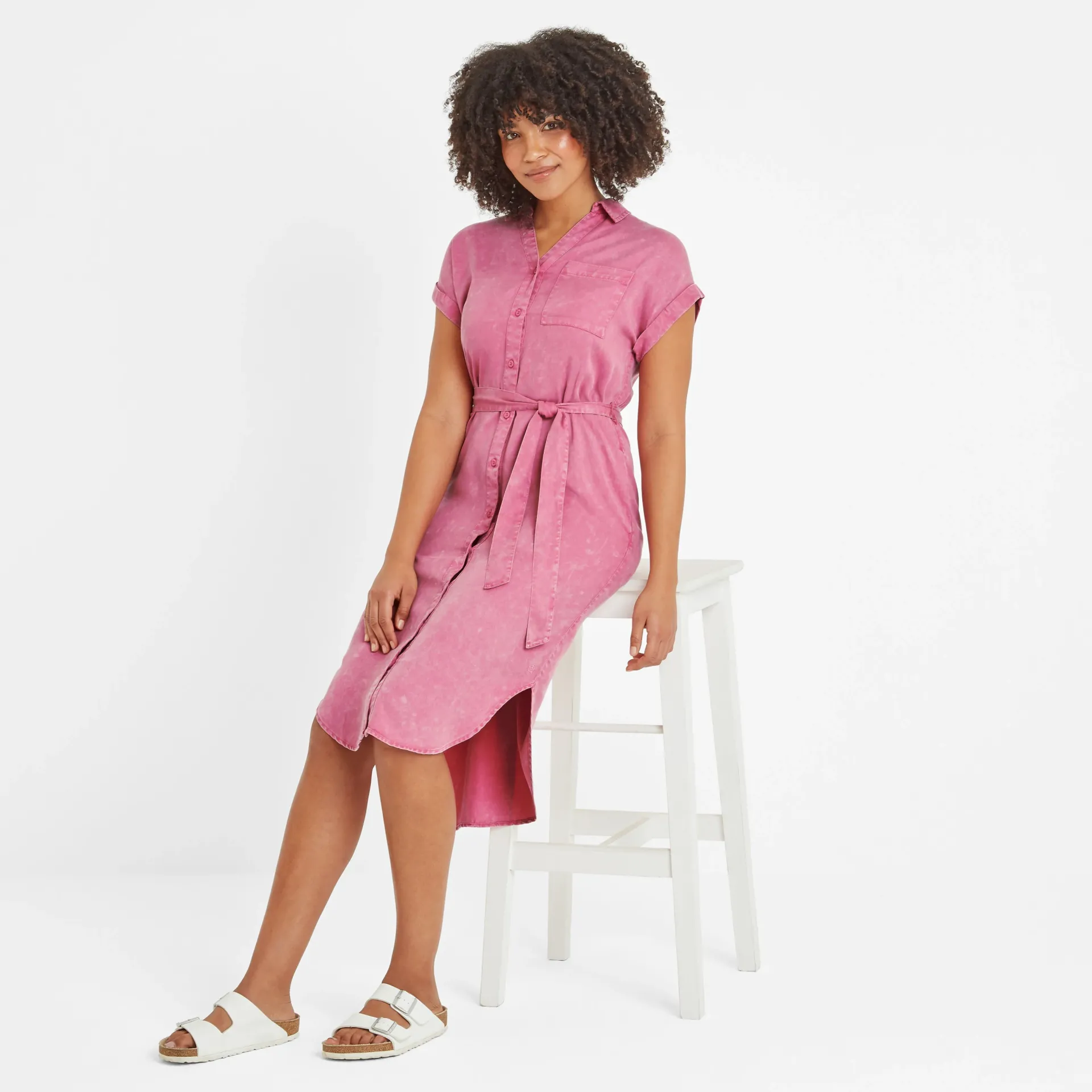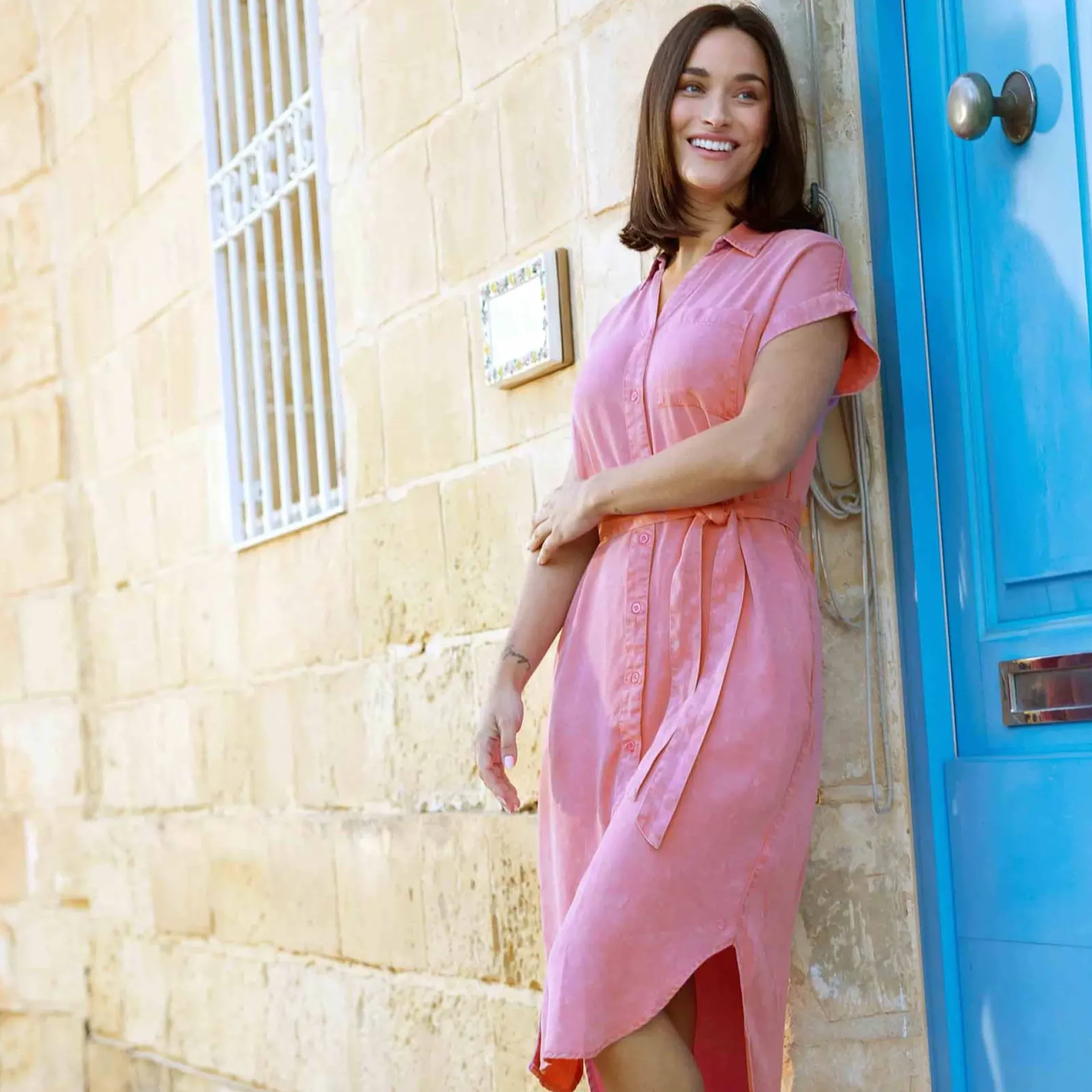 Clearance*This product is excluded from all additional promo code discountsProduct DescriptionThe Lenira shirt dress will likely become your most grabbed-for item this summer. Made from luxuriously soft Lyocell, it’s super drapey with a relaxed fit that’s perfect for casual days exploring new towns on holiday, or laid-back weekends closer to home. Featuring pearlised buttons, a curved hem with side splits that gives a really satisfying silhouette, and dolman sleeves you can roll up and secure, it’ practical and stylish. The removable tie belt lets you cinch the waist for a flattering fit or wear it loose for a more relaxed vibe. With a patch pocket on the chest and concealed side-seam pockets, this dress is as functional as it is chic. Pair with trainers for daytime adventures or dress it up with sandals for dinner al fresco.FeaturesLyocell DressPearlised Buttons To OpeningRemovable Tie Belt To WaistDolman Sleeves With Turn UpPatch Pocket On The ChestBack YokeConcealed Pockets In Side SeamCurved Hem With Side SplitPleat On The BackLogo Embroidery Above The HemFitStudio model Natasha Dress 8 UK, Height 5’10