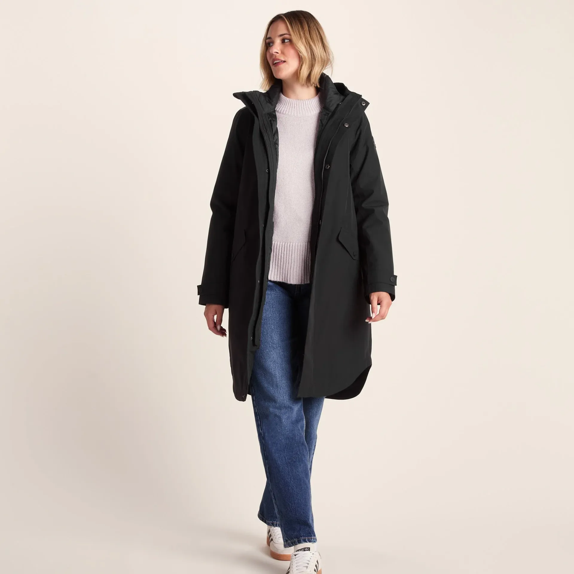 Product DescriptionLooking for a womenâs jacket that can handle whatever the day throws at you? The Lyra womenâs 3-in-1 jacket has got your back. Whether it’s chucking it down with rain, the wind’s picking up, or the sun is finally making an appearance, this versatile womenâs coat has you covered. You can wear the waterproof shell and insulated inner for full protection or wear one on its own, depending on what the weather’s doing.nWhen the rain comes down, you’ll appreciate the outer jacket’s serious waterproof credentials with its 10K waterproofing, 10K breathability, and windproof design. The sealed seams and water-repellent finish keep you dry and cosy, while the wired hood peak shields your face, and a 2-way zip with press stud fastening ensures you’re sealed from top to toe.nThe Lyra womenâ 3-in1 jacket includes a flattering A-line cut and a gently curved hem, which lets you move freely, whether you’re dashing around or just out for a wander. Underneath, a mesh-lined upper lets your skin breathe, wFeaturesOuter jacket – Waterproof (10K), breathable (10K) and windproofFully taped seams and water repellent coating (DWR)A-line shape with curved hem and back pleat detailMesh lined upper body, taffeta lined hood, sleeves u0026amp; lower bodyFixed hood with fused hood facing and wired hood peak 2 Way zip opening fastened with press studsAdjusters on hood, and cuffs2 lower pockets with press stud fasteningTOG24 badge on sleeveInsulated A-line inner jacket with curved hemLarge diamond quiltingZip opening to front of jacket that also zips into outer jacket and loops on cuffs and back neck 2 lower zip pockets with TOG24 embroidery on LHSFitStudio model Meg Dress 8 uk Height 5’10* Bust 34 Waist 25.5