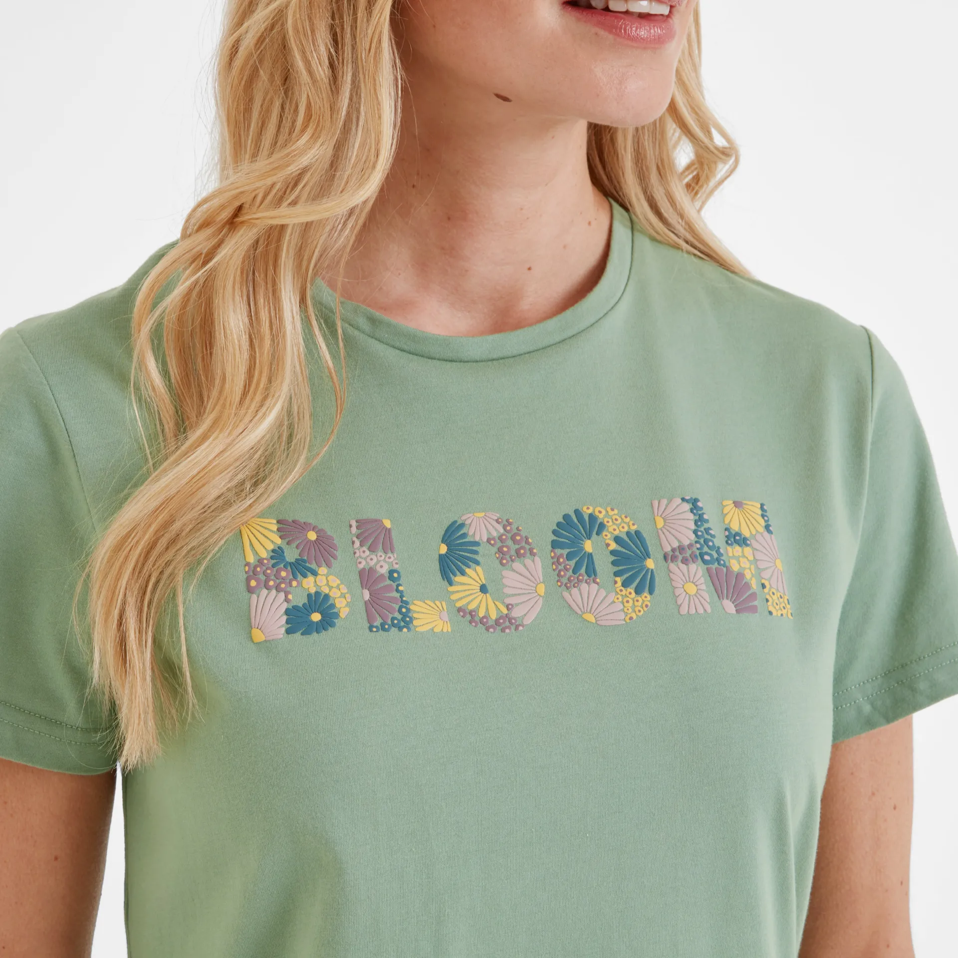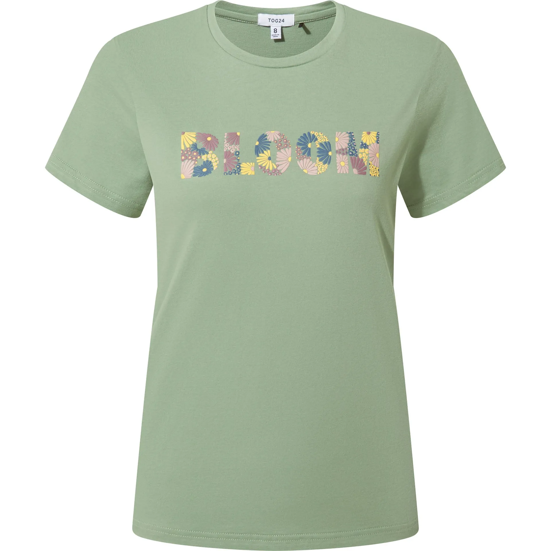 Clearance*This product is excluded from all additional promo code discountsProduct DescriptionThe Minda printed T-shirt gives all the summer vibes. Crafted from supersoft cotton, this T-shirt is lightweight, comfy, and built for laid-back days. Featuring the uplifting slogan ‘BLOOM’ in raised print on the chest, it’s a subtle reminder to embrace the little joys in life. With short sleeves and a relaxed fit, it goes with almost anything and is perfect for any casual occasion, from easy-going strolls with ice cream to unwinding in the garden. Finished with a TOG24 label at the hem, the Minda Tee is your go-to for simple style and everyday comfort.FeaturesSUPERSOFT COTTON TEESHORT SLEEVESRAISED PRINTED SLOGAN ON THE CHESTTOG24 LABEL ON THE HEMFitStudio model Izzy Dress 8 UK, Height 5’7