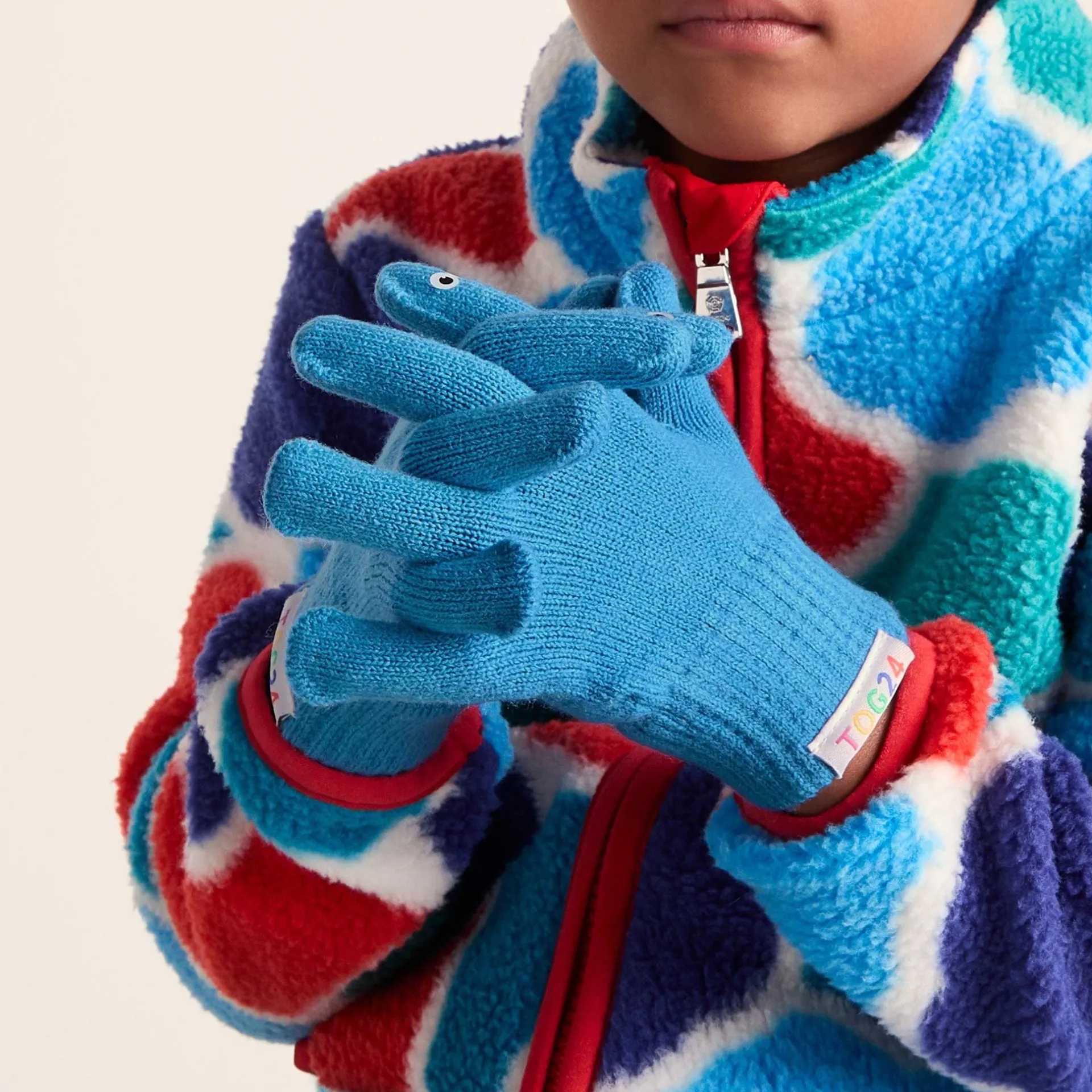 Product DescriptionKeep your little lamb’s hands warm and toasty with these funky and colourful Soay knitted gloves, part of the TOG24 X Shaun the Sheep collaboration. These kids’ knitted gloves are perfect for chilly walks to school or afternoons spent in the park. These soft-knitted gloves feature ribbed cuffs, which serve two purposes: to lock in heat while keeping out the chill and to provide a comfortable fit that stays in place all day, no matter what mischief your little one is getting into. The playful colour options make these children’s gloves easy to spot in backpacks or pockets – no more lost gloves during school days! Plus, they come with Shaun’s iconic googly eyes printed on the index finger, bringing the fun, mischievous spirit of Shaun the Sheep along for the ride.FeaturesTOG24 X Shaun the Sheep collaborationKnitted glovesRib cuffShaun the Sheet print on the index fingerTOG24 woven label on the cuffFitMaterial Composition96% Acrylic, 3% Polyamide, 1% ElastaneCareMachine wash at 30c, Do not bleach, Do not tumble dry, Do Not Iron, Do not dry clean, Wash with similar colours, Reshape and dry flat, Specific care instuctions can be found on your garment care label