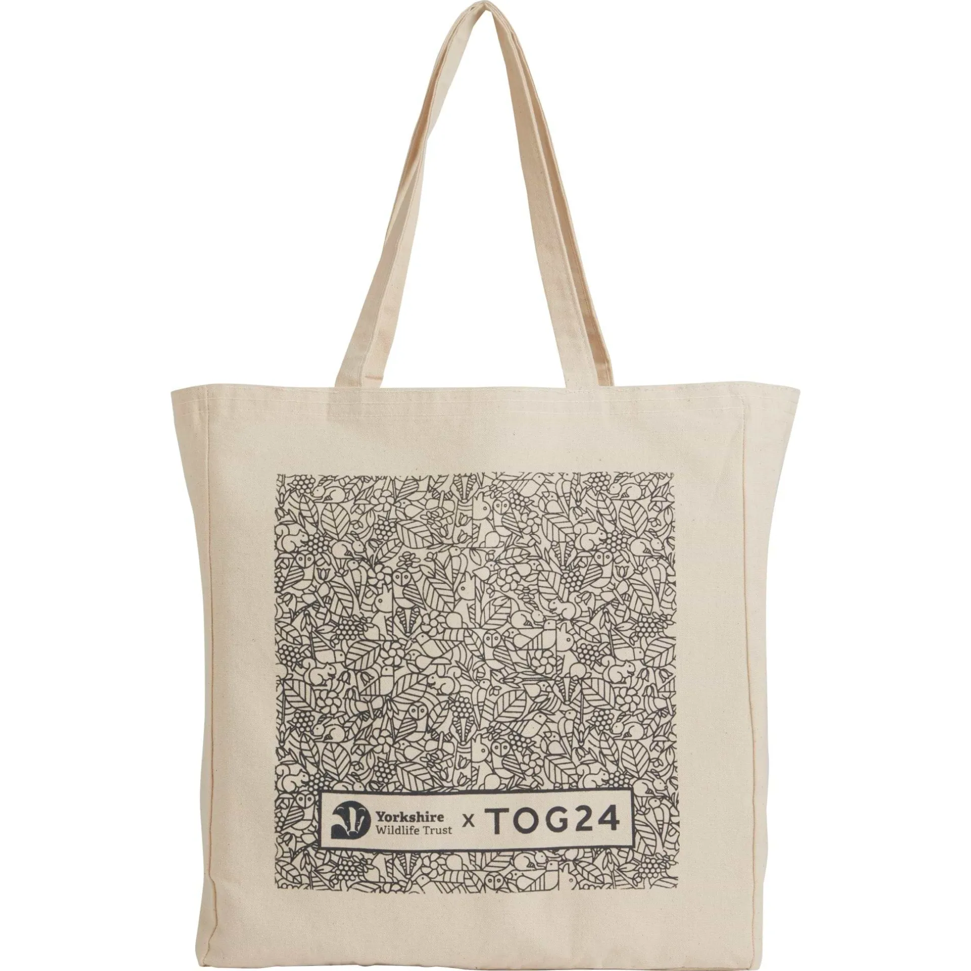Product DescriptionGrab a handy and durable tote bag and do your bit for our charity partner The Yorkshire Wildlife Trust with our Wild Tote Bag. This natural cotton canvas tote bag is super practical for shopping or even work. With sturdy straps for carrying heavy items and strong construction, this tote bag is designed to be long-lasting and makes for a great plastic bag alternative. And with a wildlife-inspired print on the front, this bag is also stylish and can be paired with your everyday wardrobe. Proceeds from each purchase of the TOG24 Wild tote bag will be donated to charity, making it a fantastic option for your day-to-day as well as helping a great cause.FeaturesDurable cotton canvas tote bagProceeds of each sale are donated to charityWildlife inspired print on front of the bagChunky handlesW: 40cm H: 44cmFitMaterial Composition100% CottonCareHand Wash Only