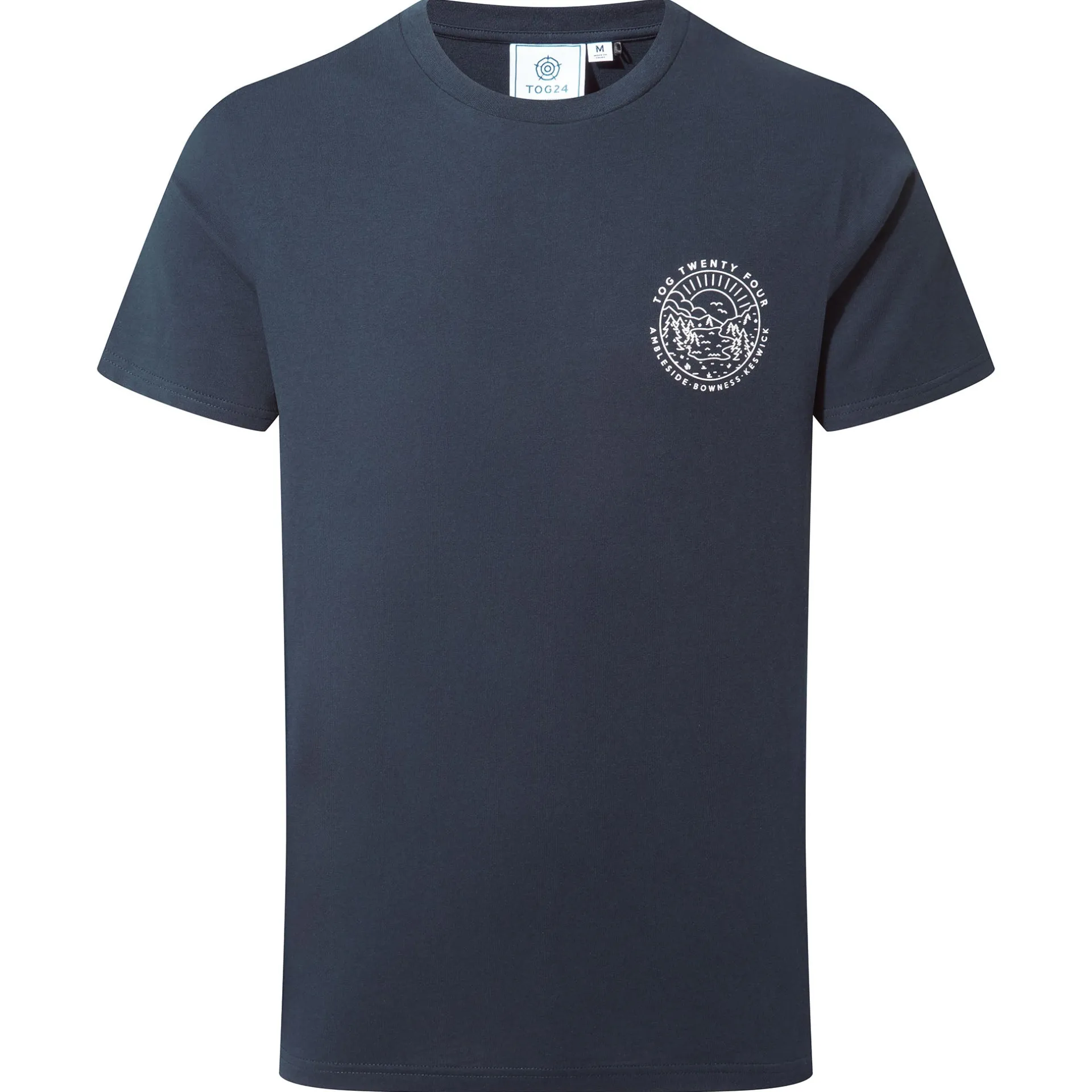 Product DescriptionCelebrating the stunning lakeside towns of Ambleside, Bowness and Keswick, our Lakes men’s crew neck t-shirt proudly displays a small graphic on the chest, with a larger version on the back. These depict the glorious Lake District landscape edged with the name of the towns and TOG Twenty Four printed in jewel colours. This cool and comfortable t-shirt comes in supersoft 100% sustainable cotton that feels great against your skin and it has a comfy ribbed crew neck too. rn rnLakes makes the perfect gift for friends and family as a reminder of happy hikes enjoying the stunning Lake District scenery. This graphic tee was designed by our team based in the beautiful Spen Valley in West Yorkshire and the finishing touch is a small woven TOG24 label on the side seam.FeaturesSupersoft 100% sustainable cotton short sleeve teeRib crew neckSmall graphic print on chestLarge graphic print on backWoven label on side seamFitStudio model Freddie is wearing size M and is 6’1