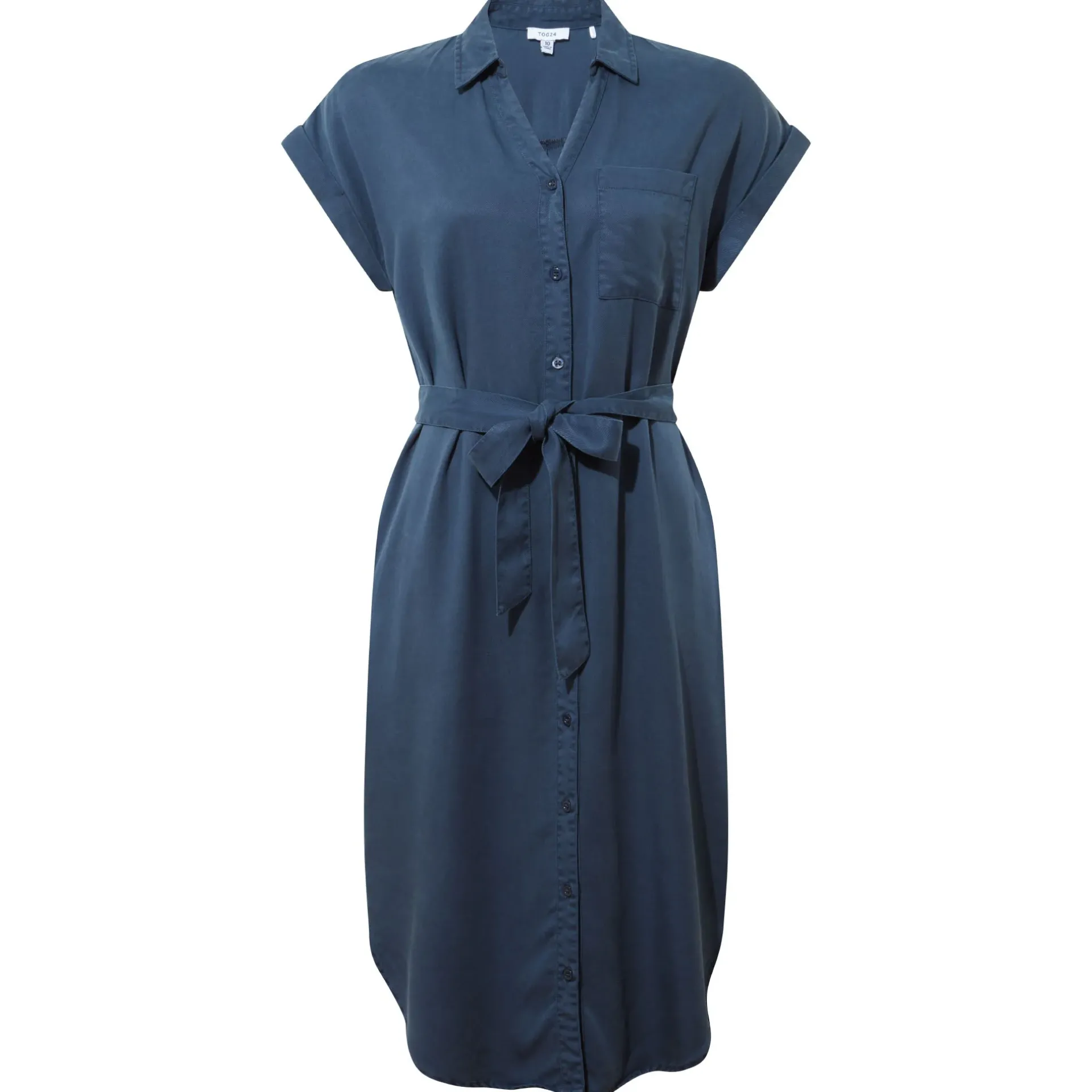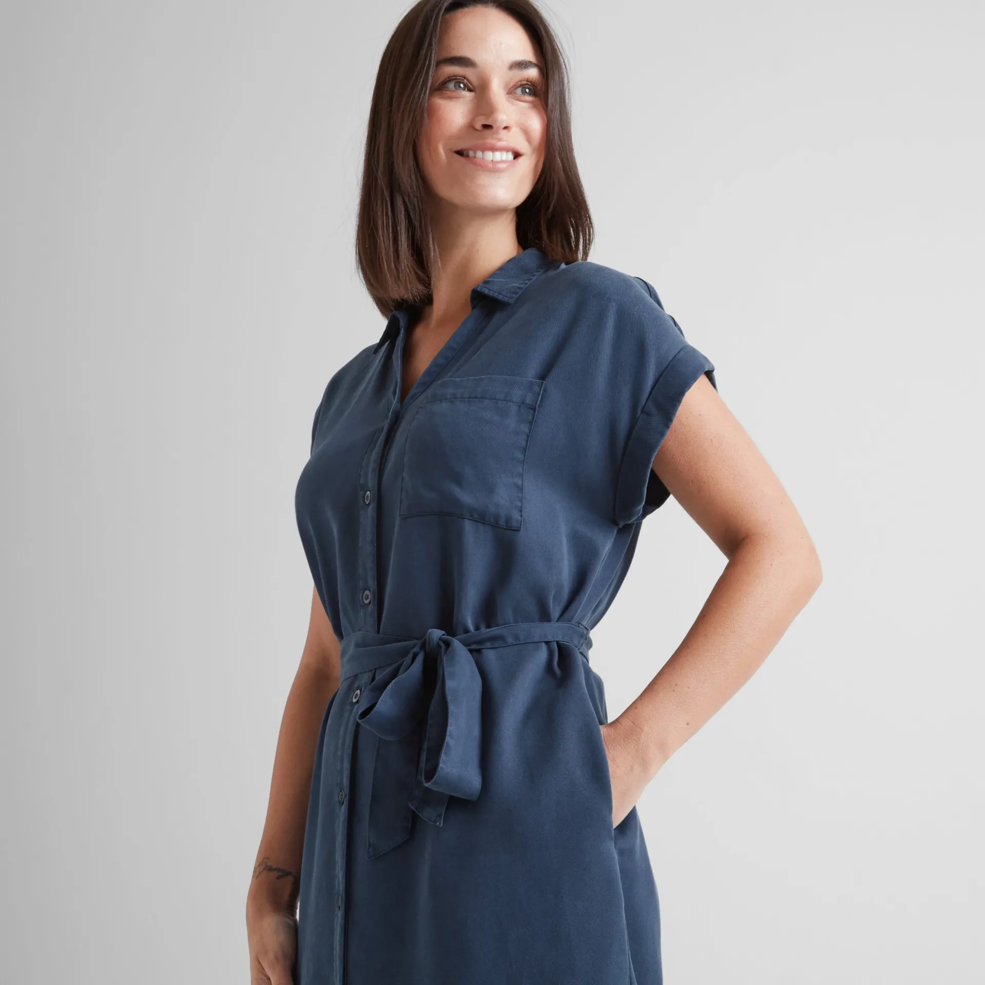 Product DescriptionThe Lenira shirt dress will likely become your most grabbed-for item this summer. Made from luxuriously soft Lyocell, it’s super drapey with a relaxed fit that’s perfect for casual days exploring new towns on holiday, or laid-back weekends closer to home. Featuring pearlised buttons, a curved hem with side splits that gives a really satisfying silhouette, and dolman sleeves you can roll up and secure, it’ practical and stylish. The removable tie belt lets you cinch the waist for a flattering fit or wear it loose for a more relaxed vibe. With a patch pocket on the chest and concealed side-seam pockets, this dress is as functional as it is chic. Pair with trainers for daytime adventures or dress it up with sandals for dinner al fresco.FeaturesLyocell DressPearlised Buttons To OpeningRemovable Tie Belt To WaistDolman Sleeves With Turn UpPatch Pocket On The ChestBack YokeConcealed Pockets In Side SeamCurved Hem With Side SplitPleat On The BackLogo Embroidery Above The HemFitStudio model Georgia Dress 8 UK, Height 5’10