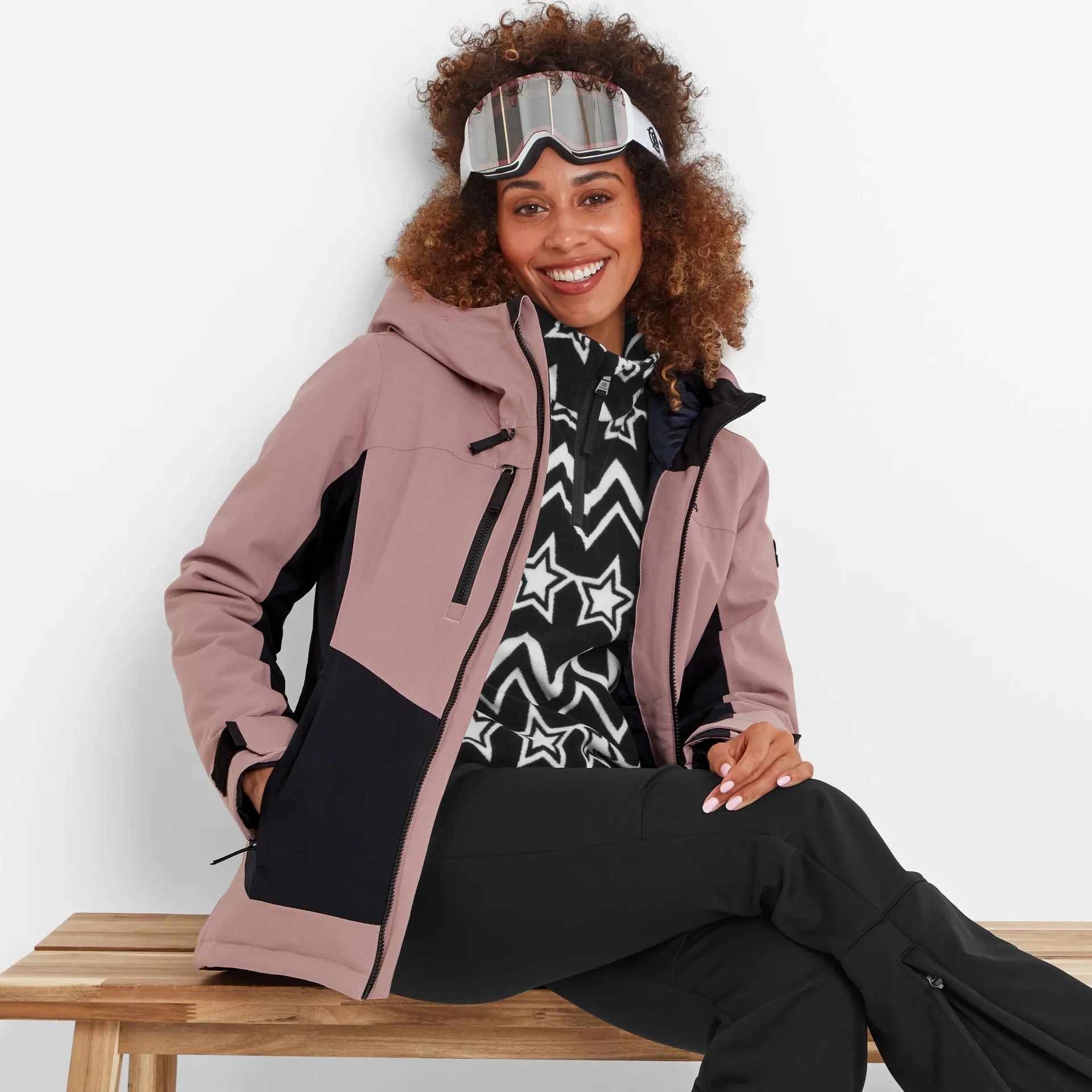 Product DescriptionWhen it comes to skiwear, Montana is our most premium option. Made from the finest weather-resisting materials, with taped seams, a water repellent coating and a warm insulated fill , the Montana jacket will keep you warm, impeccably dry and comfortable. The stylish colour block design will keep you looking great whilst also protecting you from all of the elements. Featuring practical essentials including snow cuffs and a snowskirt to keep the wind and snow out, a D-ring to attach your gloves to, an inner mesh pocket for storing your goggles, and four zip pockets on the front for storing your valuables, one of them including a goggle wipe attached to the inside. It also has a pocket on the sleeve to store your ski pass, allowing you to easily scan it without removing it when on the go. Montana’s helmet-compatible hood, deep neck and high collar offers supreme protection and the fused hood peak and hood adjusters give you even more protection against the elements. The jacket includes eFeaturesWaterproof (10K), Breathable (10K), and WindproofPolyester FillingFully taped seamsWater repellent coating (DWR)Durable fabric with colour block panelsFixed hood with shaped and fused hood peakChunky easy grab adjusters on the hood, hem and cuffsFull length zip with glove-friendly puller2 chest pockets, 2 Lower zip pockets, 1 sleeve zip pocket for ski passSki features include; snow cuffs, 1 inner mesh goggle pocket, ski goggle wipe, glove ringSnowskirt has a gel print on the edge for grip and a DWR finish – this is not removeable.TOG24 badge on sleeve u0026amp; logo print on chestFitStudio model Emma is wearing size 10 and is 5’9