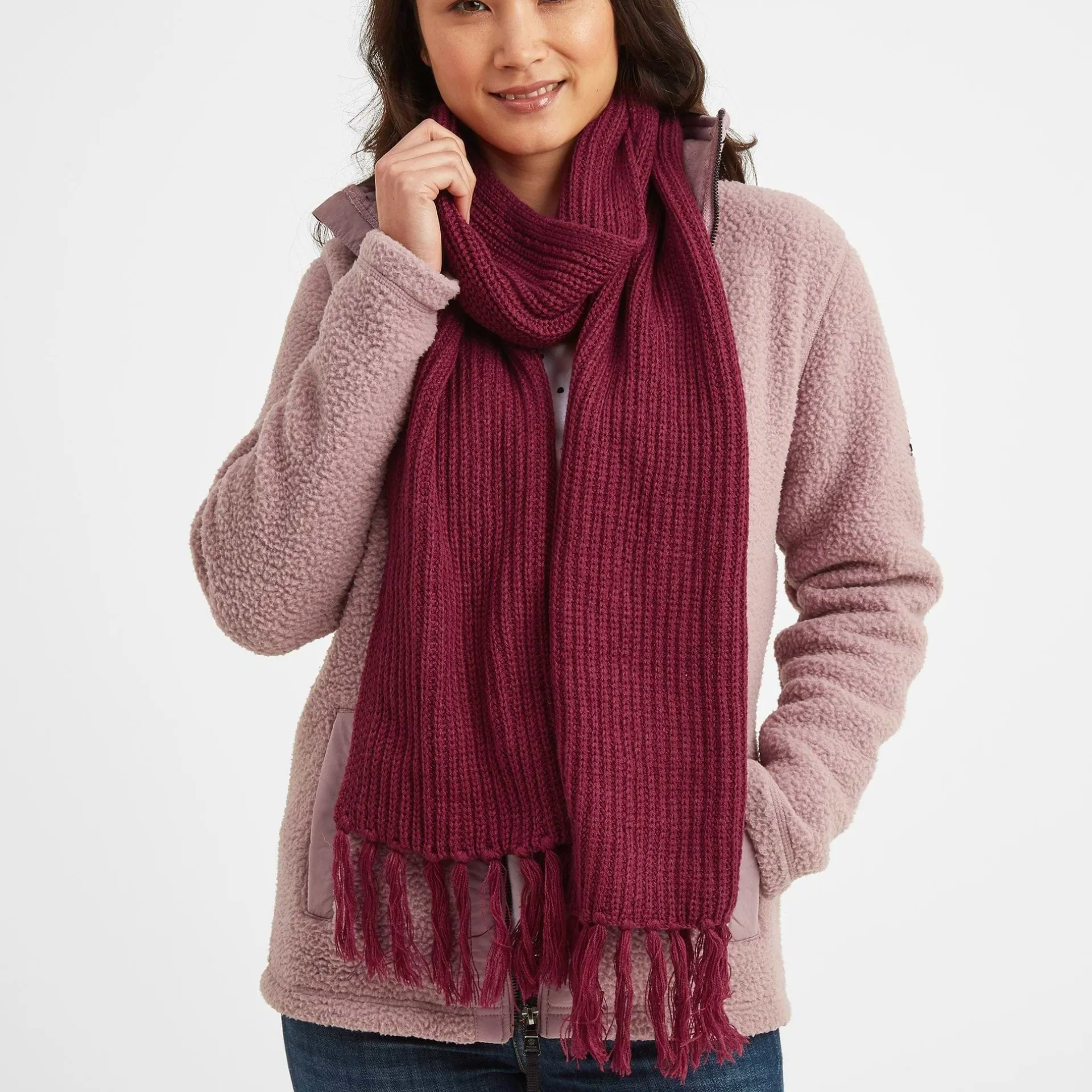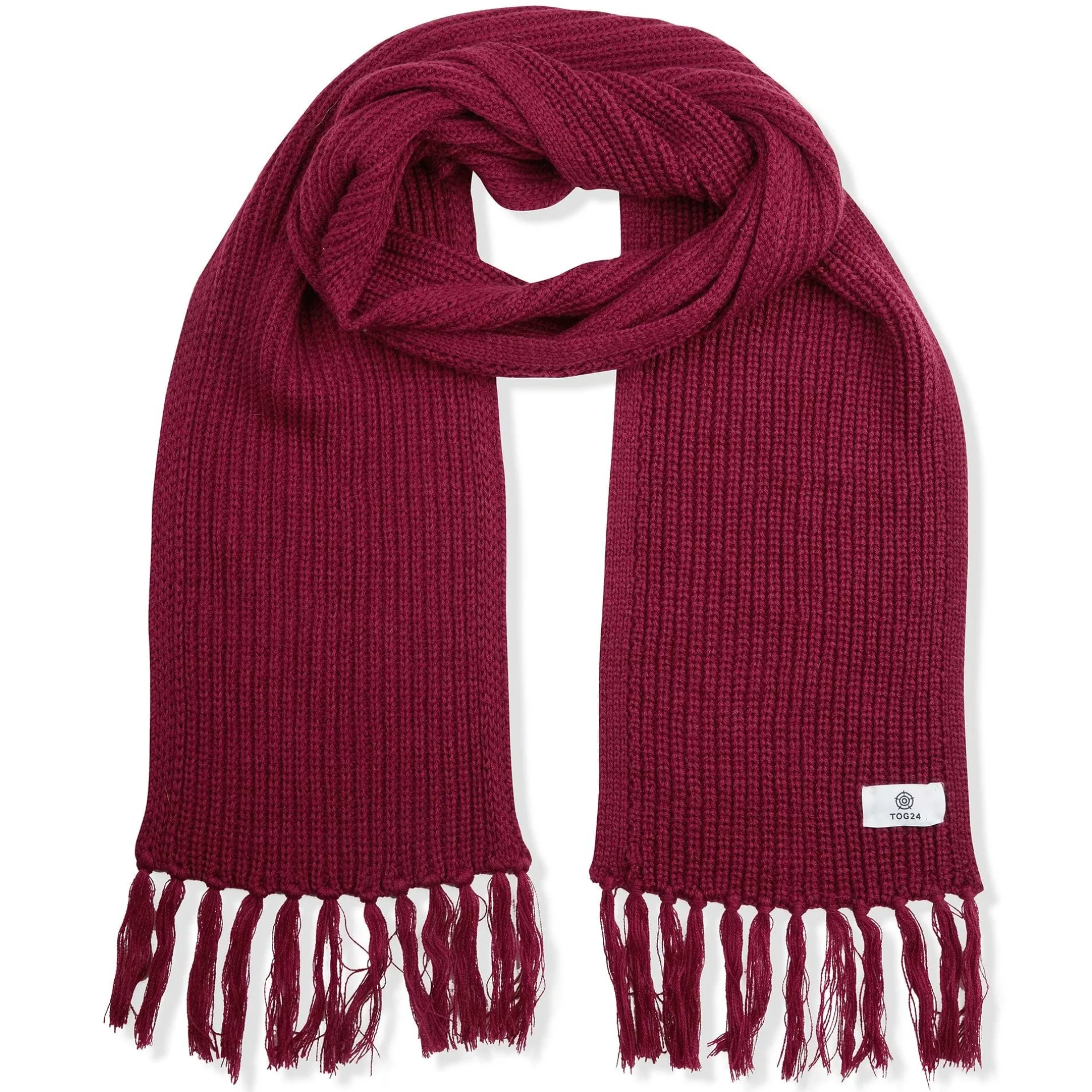 Black November EventGet an extra 15% off this product – automatically applied at checkoutCannot be used in conjunction with any other discountsProduct DescriptionChunky, warm and cosy, our Burrell scarf is knitted in a soft-to-the-touch ribbed texture and makes the perfect finishing touch to any autumn or winter outfit. This versatile scarf is long enough to wrap around your neck several times to keep the chill out on blustery days and has playful tassels at each end. Designed in West Yorkshire, Burrell comes in warm colours inspired by moorland berries and you’ll find our signature Yorkshire Rose TOG24 woven label at one end. When you’re searching for the ideal gift for any occasion, look no further.FeaturesChunky knitted scarfSoft-to-the-touch ribbed textureTassel fringe at both endsWoven Yorkshire Rose TOG24 label at one endFitMaterial Composition100% Acrylic.CareMachine washable.