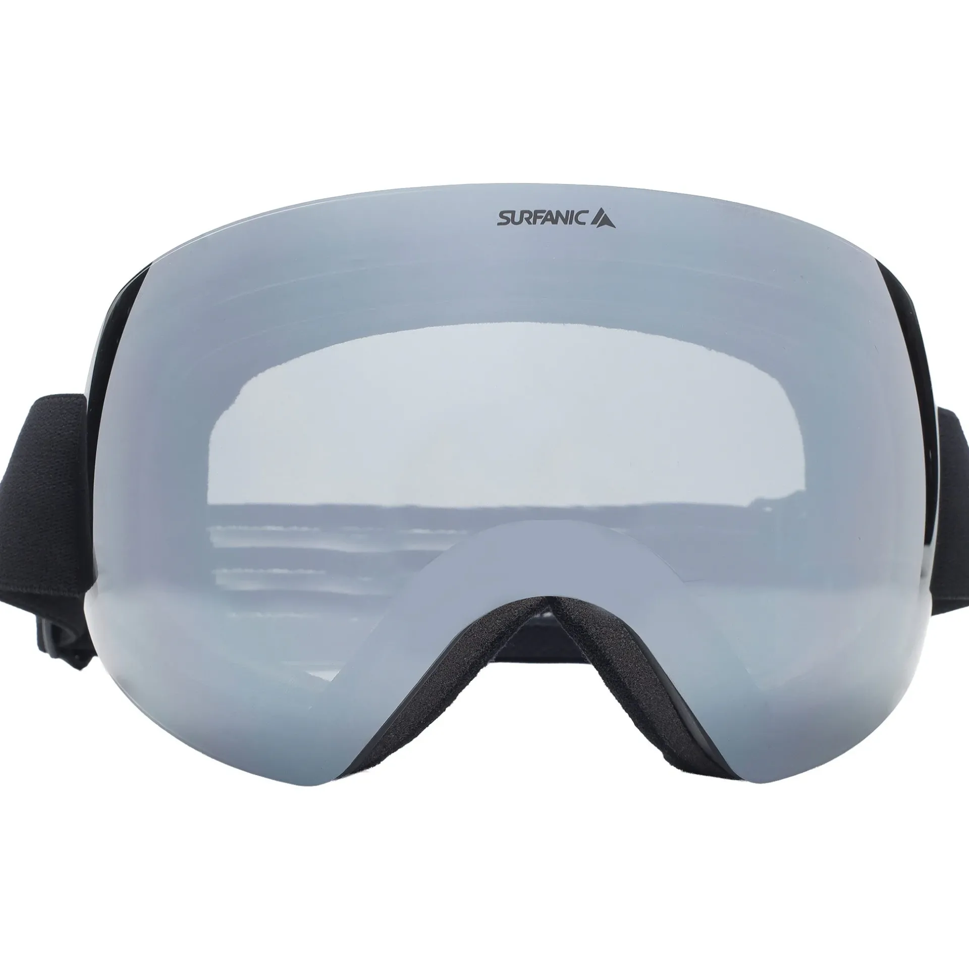Product DescriptionIntroducing the Maverick Goggle from Surfanic, a game-changer in winter sports eyewear. Designed with a bold, oversized look, the Maverick Goggle is not just about making a statement on the slopes; it’s about delivering unparalleled performance and comfort.At the heart of the Maverick Goggle is its toric lens, which combines the best of both cylindrical and spherical lenses. This design offers superior optical clarity and a wide field of vision, ensuring you can see every detail of the terrain. The toric lens also provides excellent peripheral vision, crucial for spotting obstacles and other skiers.A key feature of the Maverick Goggle is its dual-layer anti-fog system. This cutting-edge technology forms a thermal barrier between the cold external air and the warm internal air, this is combined with a hydrophilic lens coating which effectively prevents fogging and ensures your view remains unobstructed.Strategically placed vents allow for optimal airflow, reducinFeaturesAnti Fog System: Special anti-fog coatings are applied to the double lens, creating a hydrophilic surface that spreads moisture evenly, preventing foggingFull Frame Ventilation: Directional airflow across the lens, prevents fogging and allows moisture evaporationAdjustable Strap: Anti slip silicone coated straps stay in place over a helmet and are fully adjustable for the perfect fitUV Protection: All Surfanic goggles filters 100% of harmful UVA/UVB rays with a UV400 ratingCushioning Face Foam: Provides a secure and comfortable fitSoft Touch Goggle Bag: All Surfanic goggles come complete with soft touch bag for storage, this helps to protect the lens and is idea for cleaning**Lens Information:**Category 2 Lens: Category 2 lenses are ideal for those who need reliable performance in changing light environments, ensuring clear vision and reducing eye strain. Ideal for both sunny and cloudy conditionsFrame Colour: Matte BlacFitMaterial CompositionCare