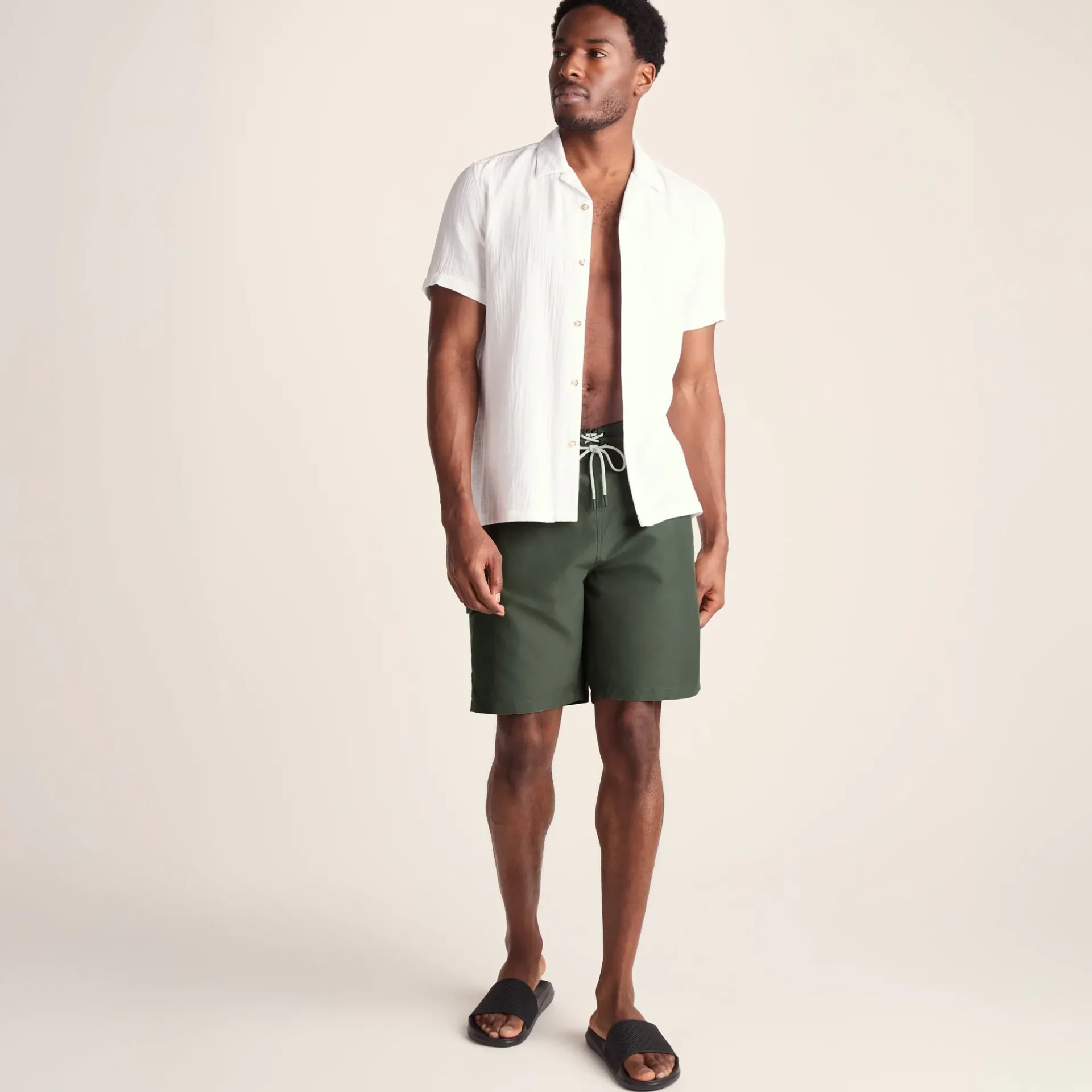 Product DescriptionOur Aslan men’s swim shorts are made from 100% recycled polyester fabric, helping you to make a sustainable choice with your swimwear whilst still looking great. Equipped with an elasticated waistband with drawcord you can be sure of a comfortable fit. Featuring an inner mesh brief, two hip pockets, one patch pocket on the leg and one back pocket, they blend comfort and style.FeaturesMade from 100% recycled polyester fabricElasticated waistband with non-functional drawcord detailInner mesh brief2 hip pockets, 1 patch pocket on leg u0026amp; 1 back pocketTOG24 label on pocket openingFitStudio model Efosa is wearing size M and is 6’1