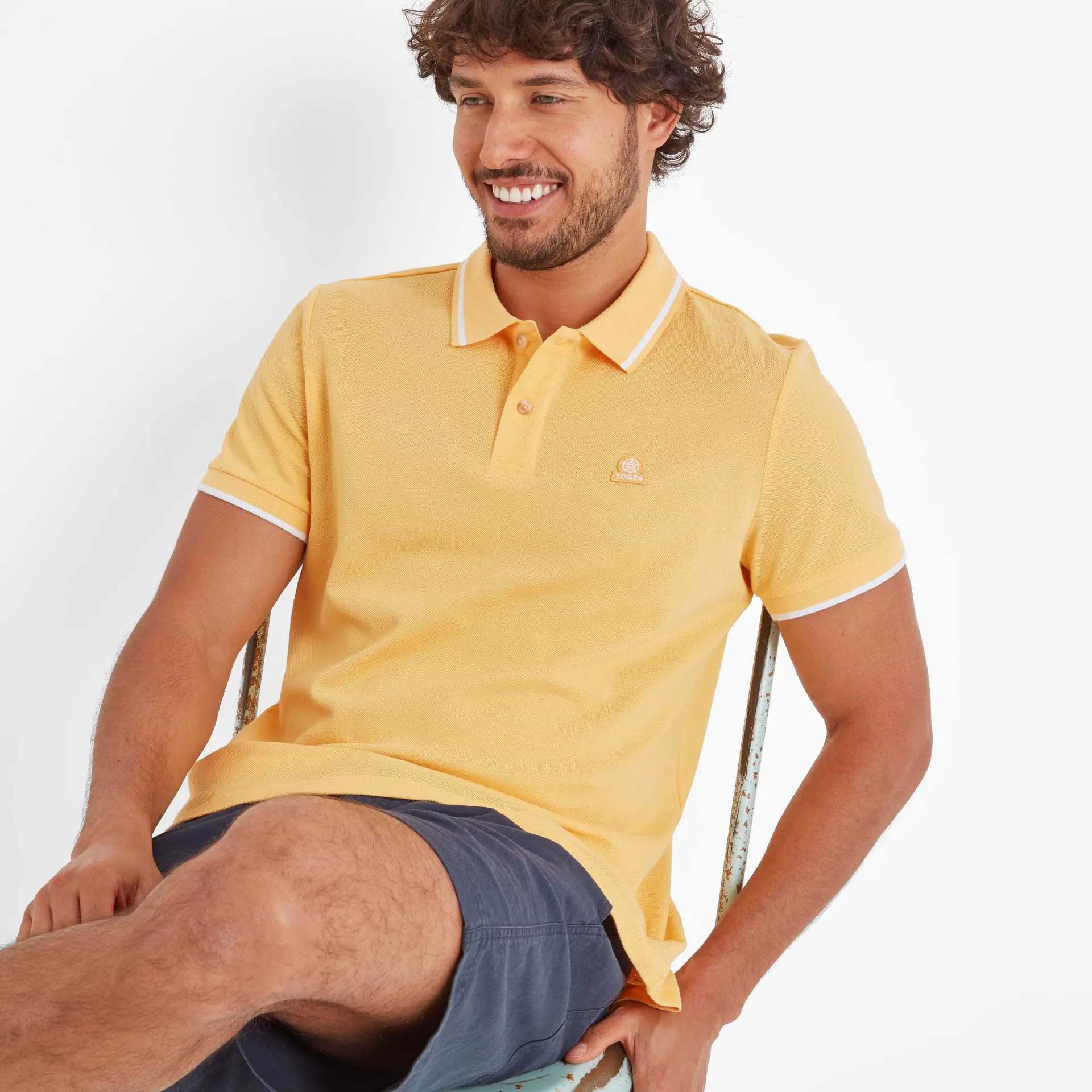 Clearance*This product is excluded from all additional promo code discountsProduct DescriptionBright and summery, our Binsoe polo shirt comes in a supersoft, 100% sustainable textured cotton pique so it feels as good on as it looks. The flat knitted ribbed collar and cuffs have tipped edges in a contrast colour to lift this classic polo top out of the ordinary. Designed by our team in West Yorkshire, this easy-to-wear polo shirt looks great teamed with shorts or jeans for anything from a day trip at the coast to a walk across the moors. The finishing touches are branded fastening buttons down the front and an embroidered TOG24 rose badge proudly displayed on the chest in a tonal colour.FeaturesSupersoft 100% sustainable cotton pique poloFlat knit rib on the collar u0026amp; cuffs with contrast tipped edgesBranded button fasteningEmbroidered badge on chestFitStudio model Rodrigo is wearing size M and is 6’1