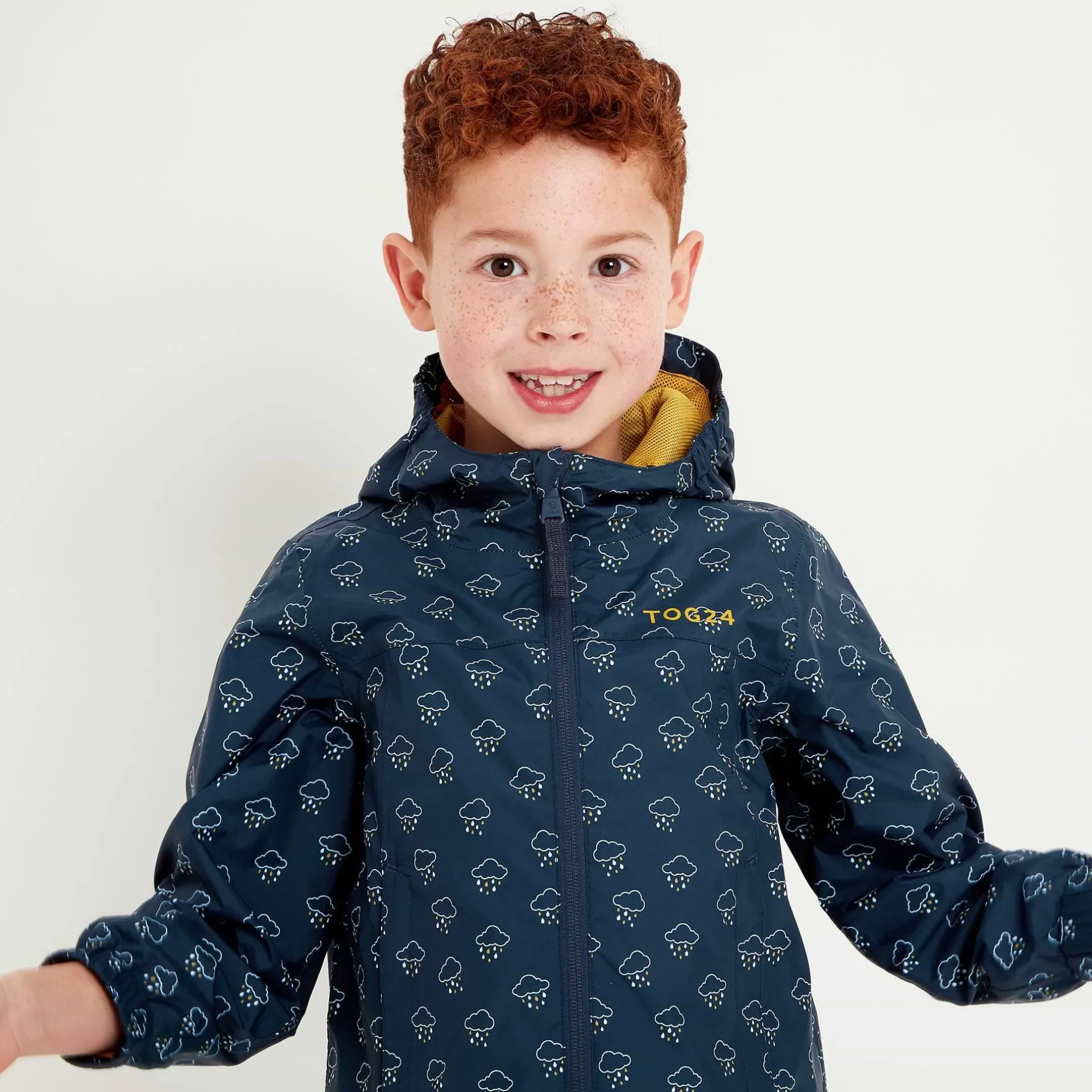Clearance*This product is excluded from all additional promo code discountsProduct DescriptionFully waterproof, windproof and breathable, our Copley kids jacket packs down small into its own bag, so it’s easy to carry around and ready for action when needed. Designed by the TOG24 team here in West Yorkshire, where they are always prepared for showers, this lightweight jacket comes in a supersoft fabric with mesh lining in the body and easy glide taffeta lining in the sleeves, so it’s comfortable to wear and easy to slip on and off. Fully taped seams on the inside stop water getting in, an invisible water repellent coating makes raindrops bead off the waterproof fabric and a cosy elasticated fixed hood keeps your child dry from top to bottom.FeaturesWaterproof (5K) and breathableFully taped seamsWater repellent coating (DWR)WindproofSupersoft easy glide taffeta liningFull length zipFixed elasticated hoodElasticated cuffs2 lower zip-up pocketsToggle hem adjustersPacks away into a small, branded bagPrinted TOG24 logo on the chestFitMaterial Composition100% Polyester.CareMachine washable.