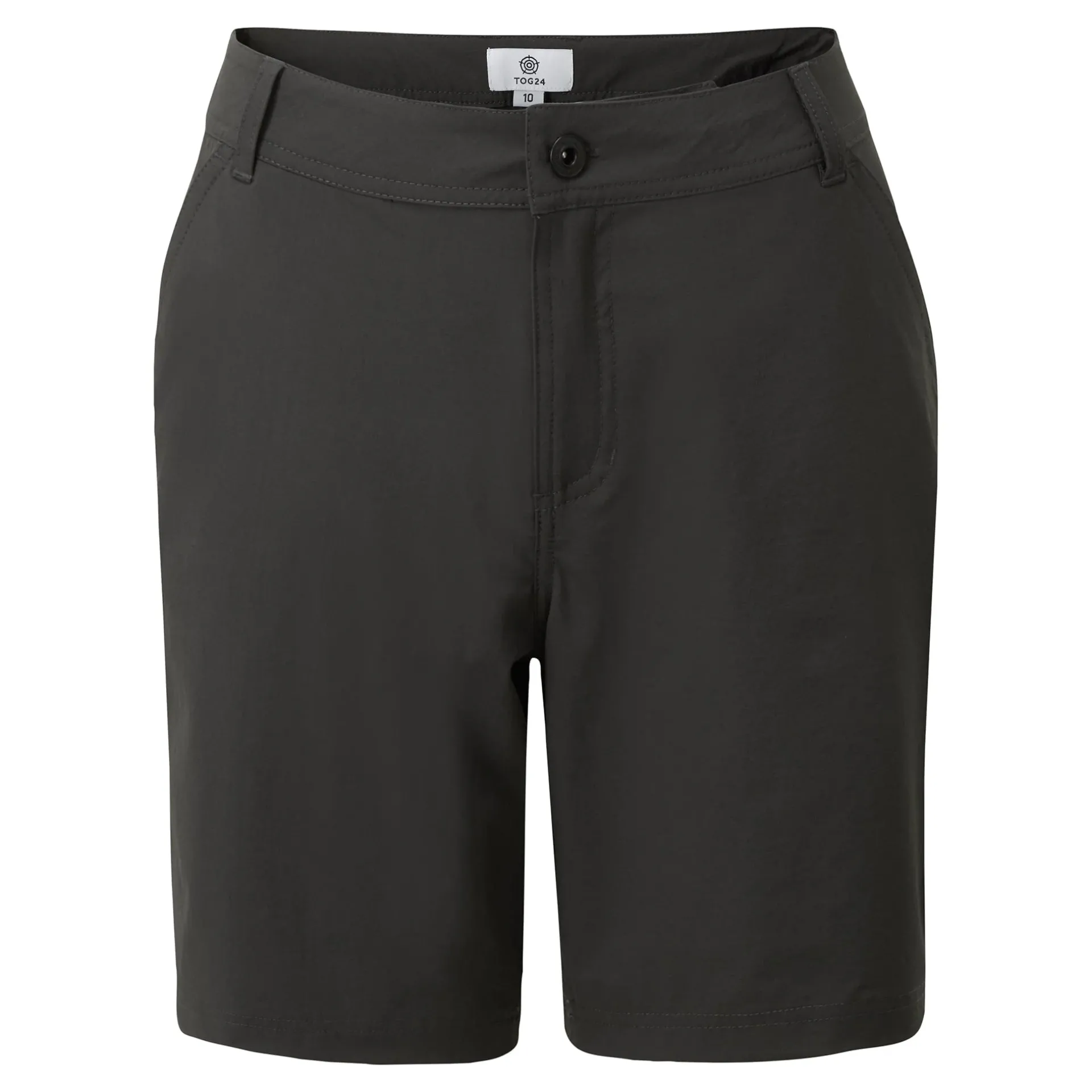 Clearancen*This product is excluded from all additional promo code discountsnProduct DescriptionnIncredibly comfortable, these walking shorts for women have been cut from an exceptionally soft, smooth yet hardwearing stretch fabric that makes every step feel great. With the Yorkshire Moors on our doorstep, the TOG24 design team know what makes a good pair of walking shorts. These are cut loose enough for easy movement, but slim enough to be flattering when you’ve finished your hike. If exercise isn’t on your mind, they’re perfect teamed with a T-shirt for relaxing in the garden. Simple in design, the angled pockets on the front and a hidden zip up pocket on the back are handy for carrying essentials like keys and cash. Branding is kept very discreet with TOG24 imprinted on the button.nFeaturesnLightweight, durable, easycare fabricn4 way stretch for improved movementnZip fly with button and hook u0026amp; barn2 angled front pocketsn1 zip up back pocketnBranded buttonnFitnStudio model Dee is wearing size 10 and is 5ª9.5