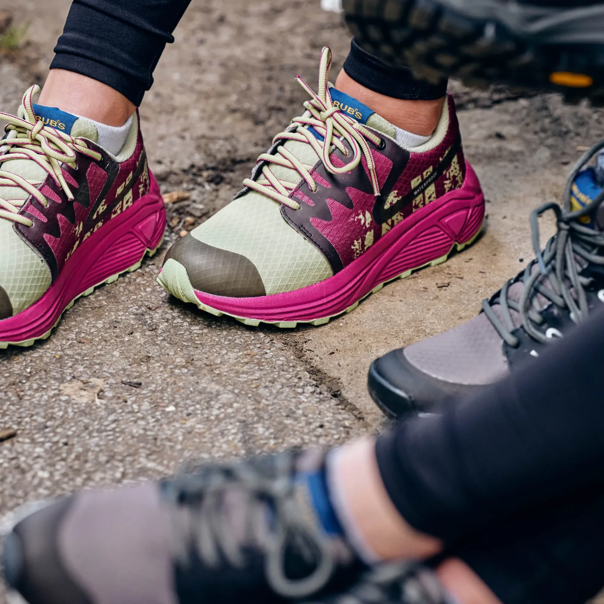Product DescriptionGrubs DISCOVER⢠trainer IS 100% water resistant. Made from tough snag resistant DIAMOND RIP-STOP⢠nylon with a breathable, moisture wicking HYDRI-FUSE⢠bootie lining. All components work together, keeping the wearer warm and dry.FeaturesDERBY LACED OPENING – For maximum adjustment and secure fit. VIBRAMÂŽ SPHIKE⢠or SPEED HIKE sole from VIBRAMÂŽ – had directional V shaped tread inn their XS TRAILâ˘compound for superb grip on most surfaces. The split GROUND ADAPTIVE heel centralises the foot as it meets the ground giving the foot a lateral/medial independent suspension. Lightweight FUSED overlays – Protect the toes and reinforce stress points. COMFORT RATING 0Âşc to +25Âşc.FitMaterial CompositionUpper: 50% Nylon, 50% TPU; Inner: 100% POLYESTER; Sole: 100% RubberCareBRUSH ME, WASH ME: Hose down your wellies after each use and once a month wash off excess dirt with just water and for a deep clean use water with a mild soap. Gently scrub with a soft bristle brush until your boot is clean, then leave the boots to dry naturally (not on a direct heat source).