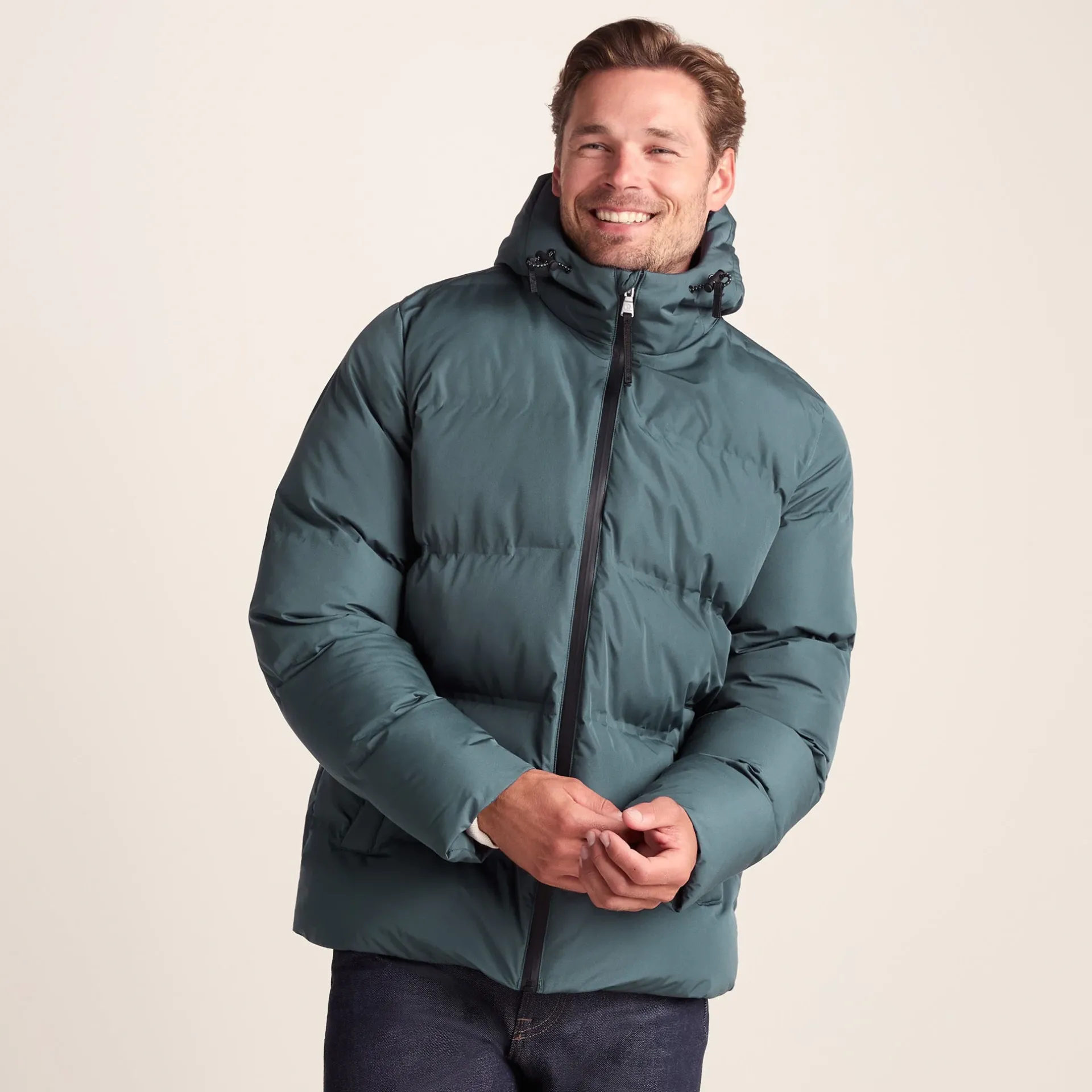 Product DescriptionWinter can be a right pain in the neck. Freezing mornings, surprise showers, and winds that come out of nowhere. Good thing the Menka men’s coat exists – your new best mate for tackling whatever the weather throws at you.nThe Menka men’s puffer jacket is built for guys who don’t have time to faff about with multiple layers. The relaxed boxy fit means you can throw it on over whatever you’re wearing, while the heat-sealed quilted design traps warmth.nWhen the wind picks up, just pull on that toggle-adjustable hood, and you’re sorted – no more chasing your hat down the street. Plus, the Menka men’s coat has a light DWR coating to protect you if it starts spitting.nThere are a lot of handy practical features in this men’s coat, too. Two lower zip pockets keep your stuff secure, and there’s even an inner zip pocket for anything valuable. The stretchy inner cuffs stop that annoying cold air sneaking up your arms, and the toggle-adjustable hem lets you pull in the fit to fight off any draughFeaturesLight rain protection, wind resistant and warmHeat sealed quilted designWater repellent coating (DWR)Relaxed boxy fitToggle adjusters on the hood openingWP zip opening to front2 lower zip pockets, 1 inner zip pocketToggle adjusters to hemStretch inner cuffTOG24 badge on sleeveFitStudio model erik is wearing size M and is 5’11
