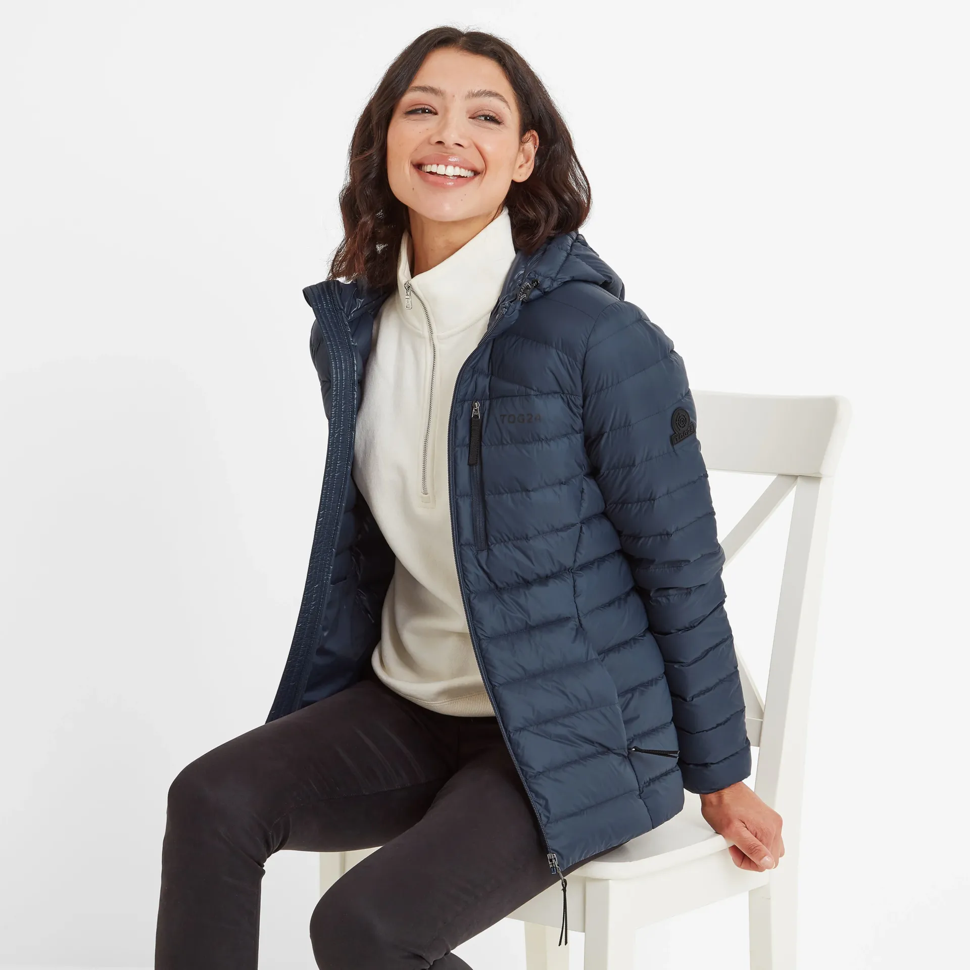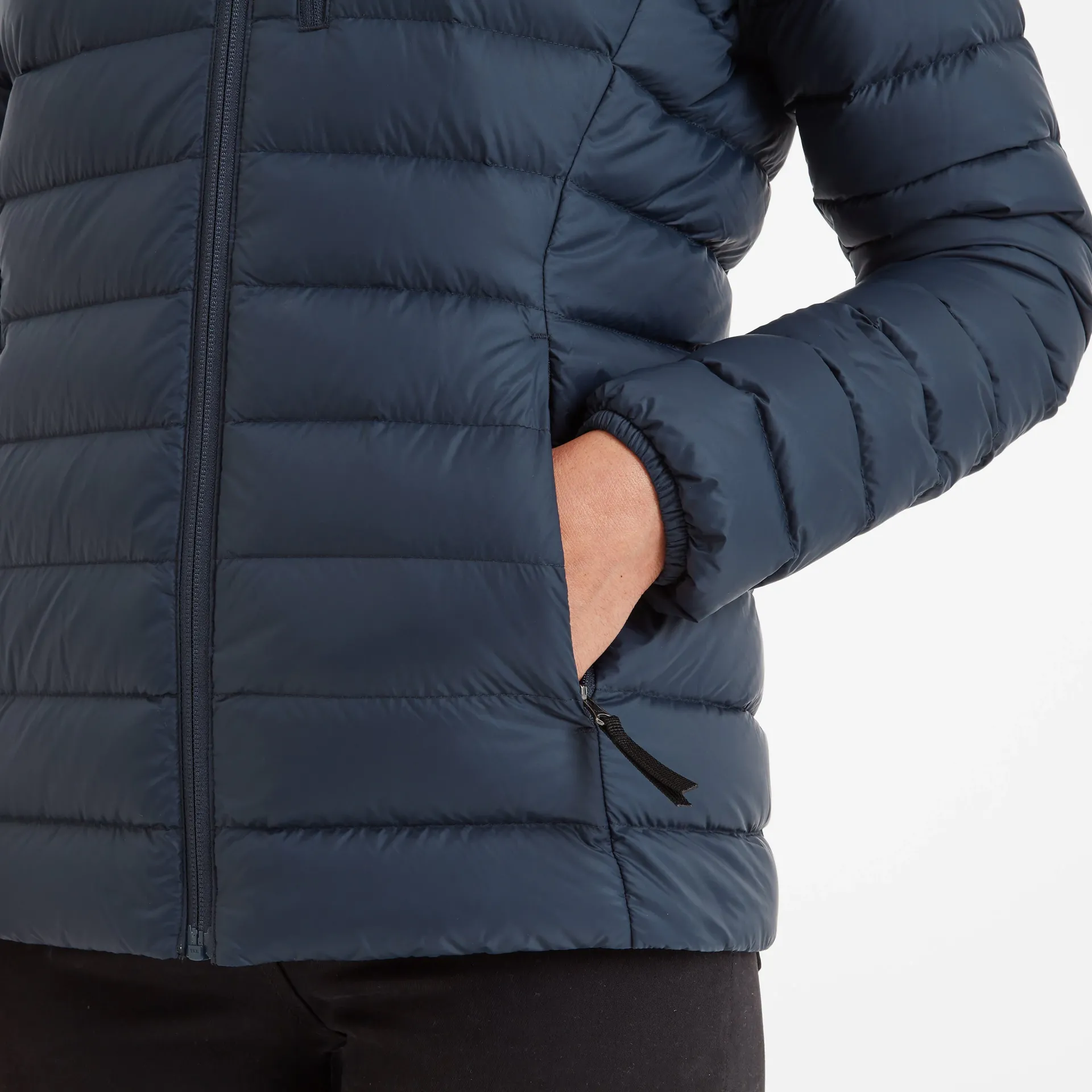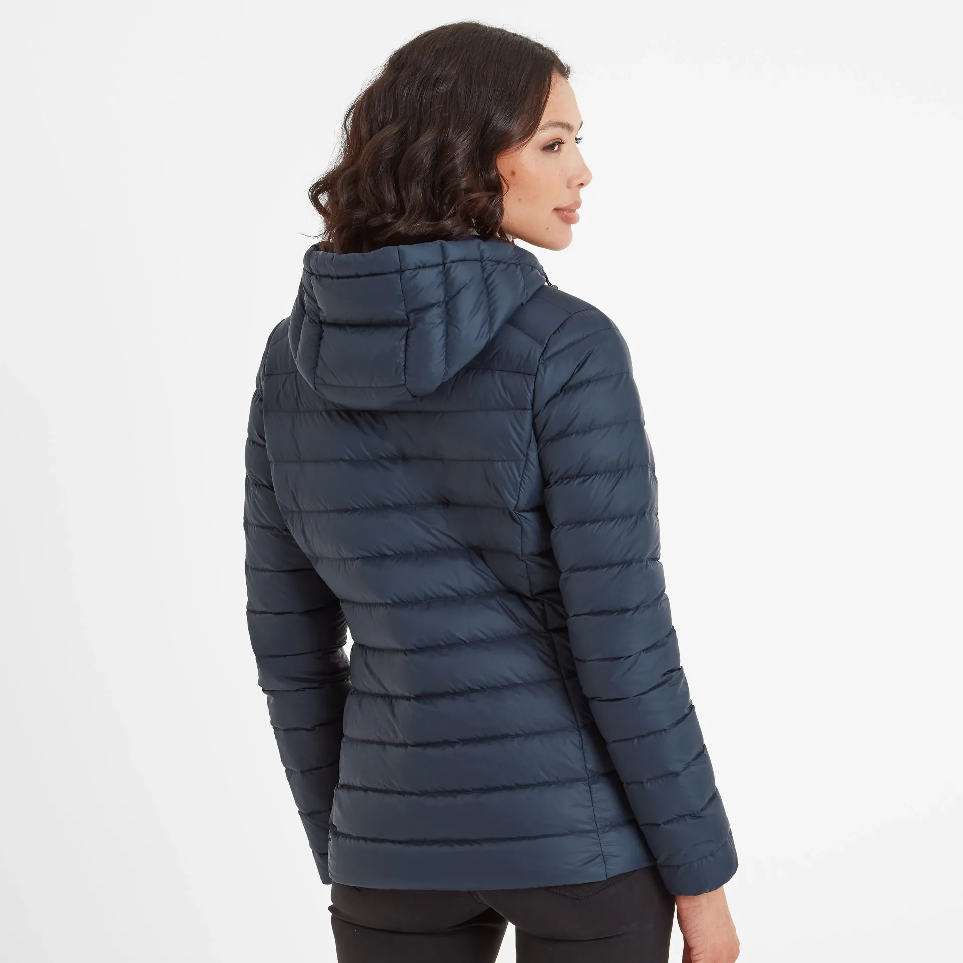 Product DescriptionSay hello to winter with the North down hooded jacket featuring duck down. If itâs high-quality and supreme warmth youâre after, then the women’s North hooded down jacket is a smart choice for those outdoor adventures. Featuring our most premium insulation made from duck down, this jacket feels toasty warm and cosy and yet equally feels breathable and lightweight. Like all great things, thereâs more to the North than meets the eye, as you wonât believe a jacket so insulated can also pack away into its own chest pocket and become a handy travel pillow, too. Thatâs because the North has been designed with the adventurer in mind, so practicality and space-saving genius is an absolute must. Complete with toggle adjusters on the hood to trap in all that wonderful warmth for your head and neck, this jacket also comes with zip side pockets to safely store your phone, wallet and keys. Layer the North over a sweatshirt on extra chilly days, or layer it under a coat for added protection from theFeatures90% duck down 10% feather, 800 fill powerLightweight, breathable u0026amp; ultra warmDown weight – 86g (based on size M)1 zip chest pocket, 2 lower zip pocketsToggle adjuster to hemJacket packs away into chest pocketLogo print on chestFitStudio model Melissa is wearing size 8 and is 5’10
