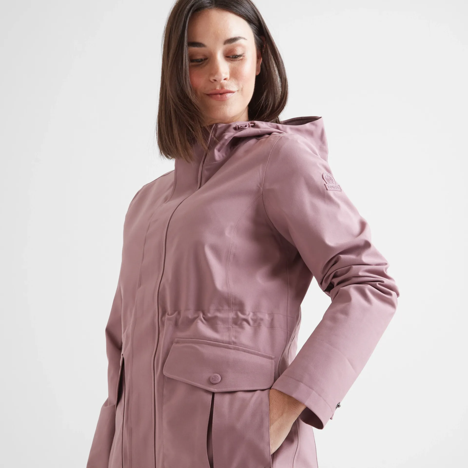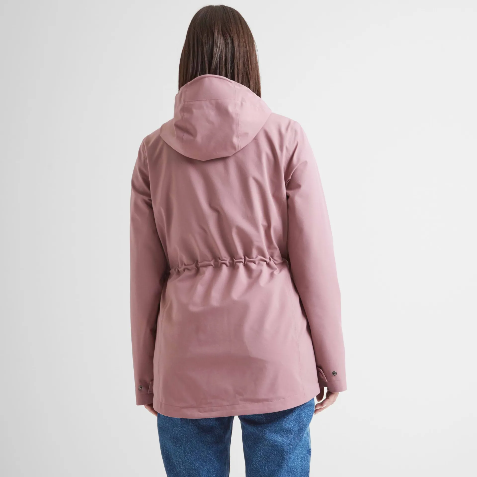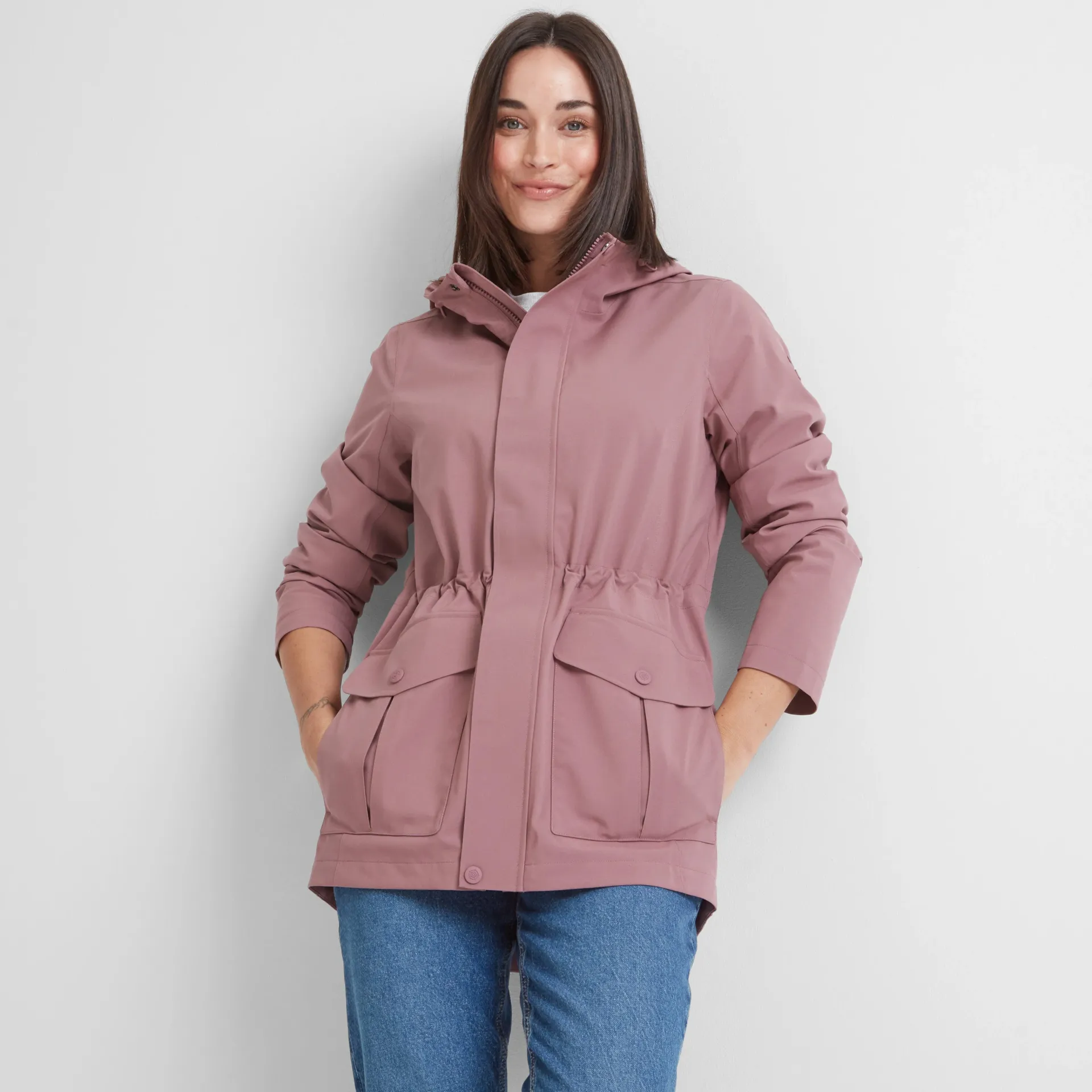 Product DescriptionOur Burradon womens waterproof jacket is designed to be your everyday waterproof companion. This jacket will keep you dry in all but the heaviest rain. There are plenty of handy places to stash stuff; on the outside, there are two angled patch pockets plus there’s a pocket on the inside. Also windproof, it’ll keep the breeze out even when it’s really blustery. Layered over a hoodie or jumper for extra cosiness.Features Waterproof (10K), Breathable (10K), and WindproofFully taped seamsWater repellent coating (DWR)Zip opening fastened with press studs u0026amp; velcro Toggle adjusters on the hood openingPress stud adjuster on the back of hood2 Lower patch pockets with side entry u0026amp; 1 inner zip pocketPress stud cuff adjustersToggle adjusters on the inner waistTOG24 badge on sleeveFitStudio model Georgia Dress 8 UK, Height 5’10