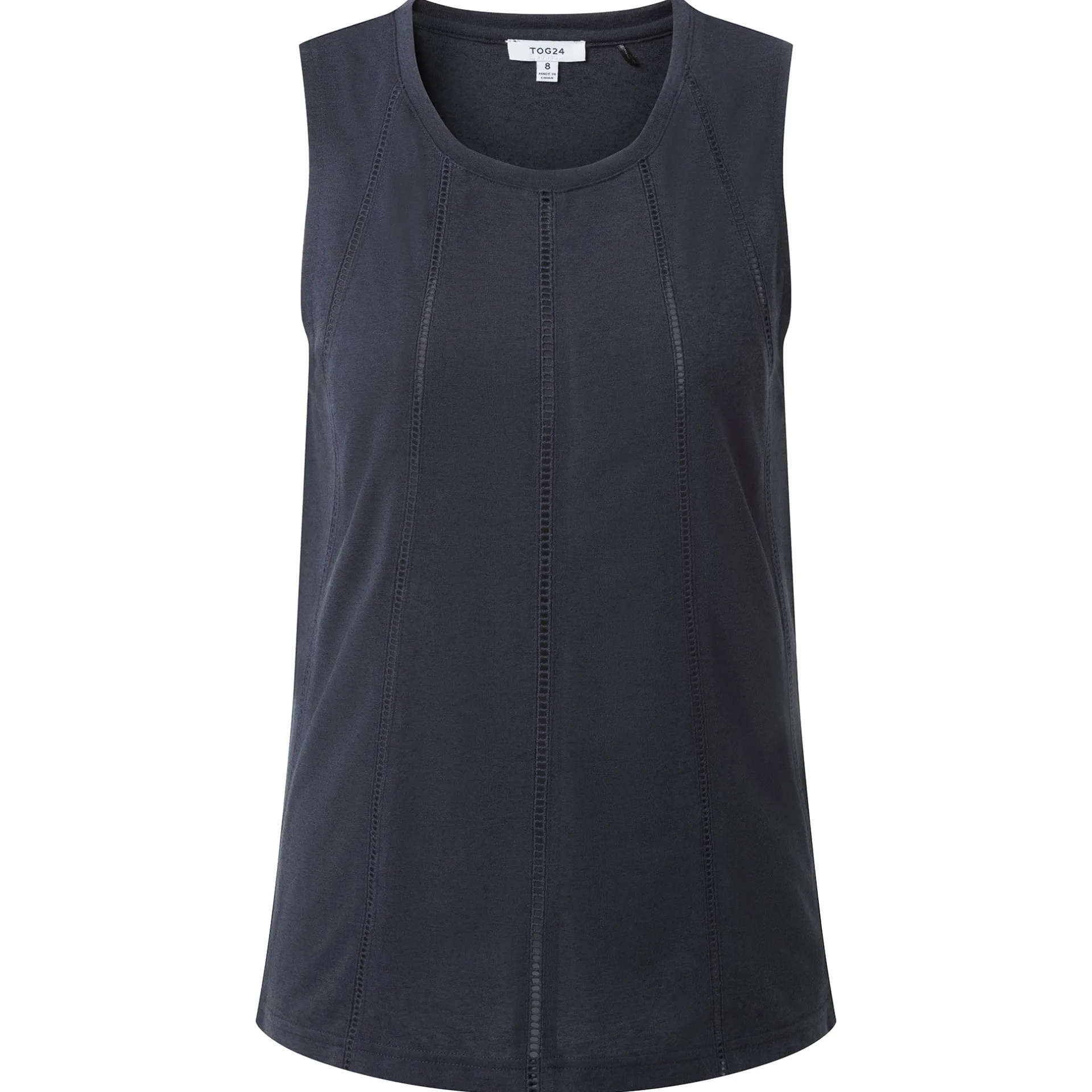 Clearance*This product is excluded from all additional promo code discountsProduct DescriptionOur Chloe Vest is made with linen blend fabric designed to keep you cool when the weather heats up. It features an intricate laddering detail on the front that brings sophisticated style to your outfit.FeaturesLinen blend vestLaddering detail on the frontTOG24 label in side seamFitStudio model Meg is wearing size 8 and is 5’7