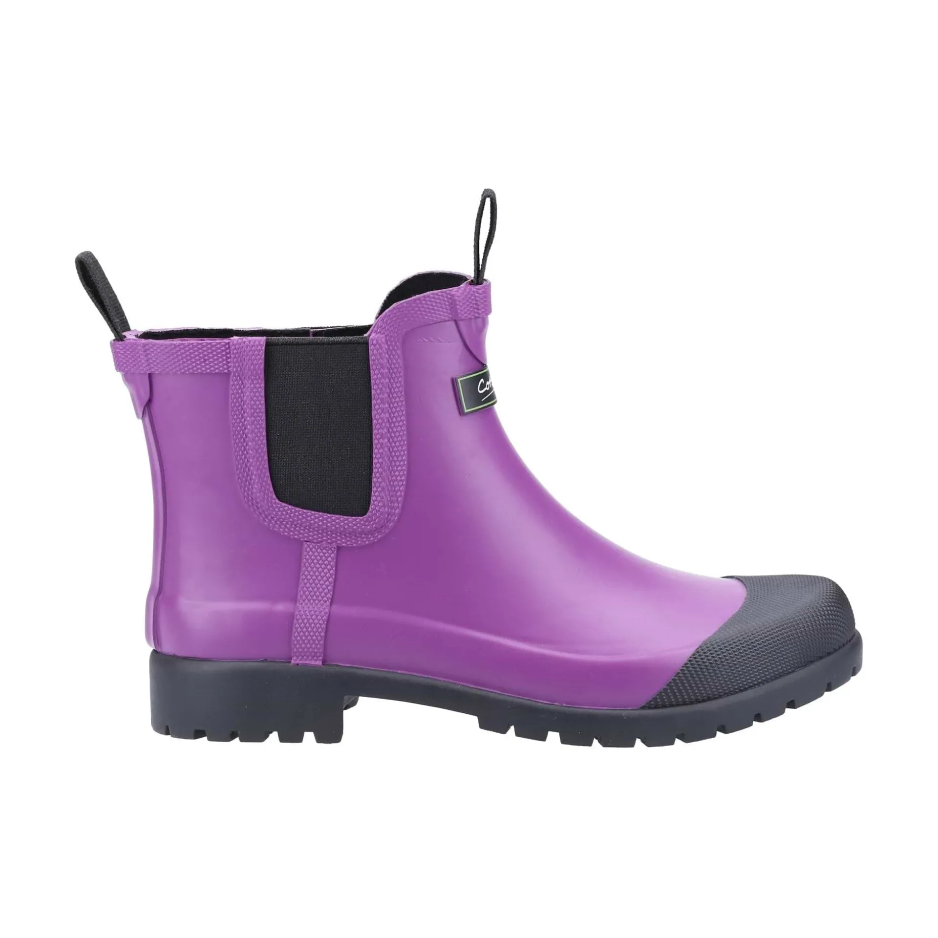Product DescriptionShort rubber womens wellington from Cotswold, Blenheim has the classic chelsea look and is not just for the garden! This style would look great under your jeans around town, it’s extremely flexible with a heavily cleated sole for grip and durabilityFeaturesShort Rubber Wellington in classic chelsea styleFully waterproofFront and rear pull loopTwin elasticated gusset with inside coverHeavily cleated sole for grip and durabilityContrast Black toe capDiamond Toe Cap and FoxingExtremely flexibleWet weather ideal for gardeningFitMaterial CompositionUpper: Rubber. Lining: Textile. Sole: Rubber.Care
