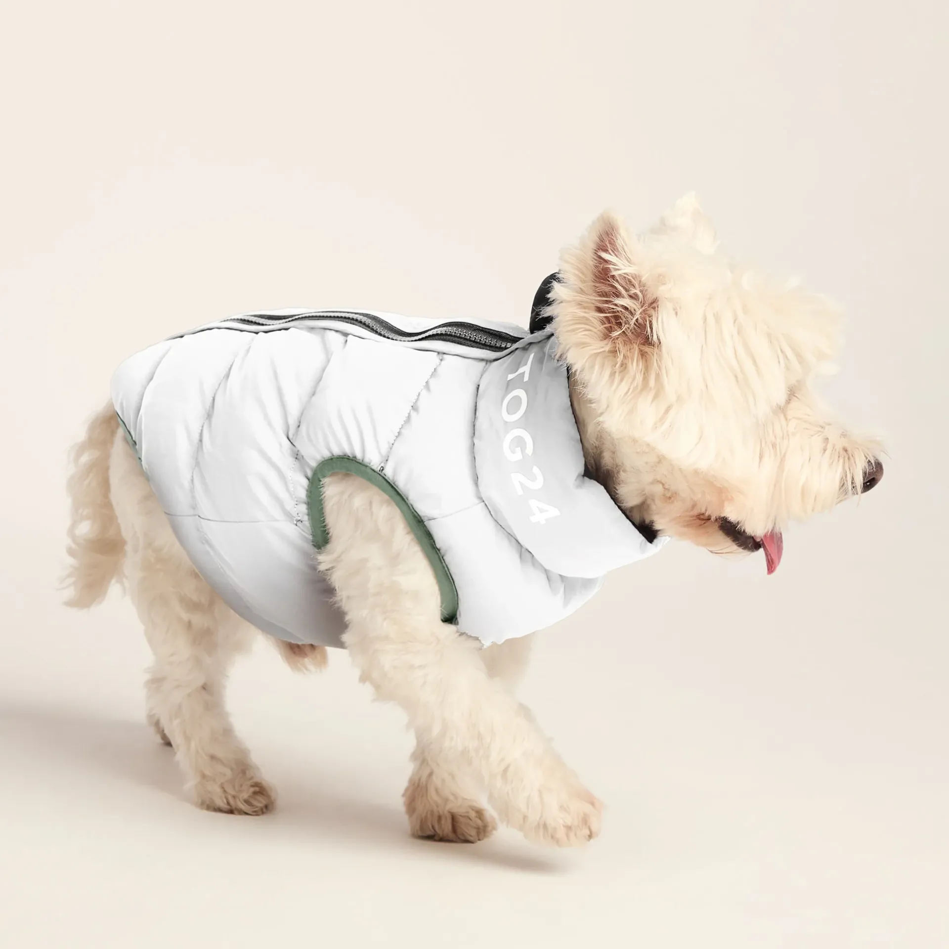 Product DescriptionInsulated for warmth and comfort, our Fetch coat for dogs keeps your pet cosy on cold winter walks. This stylish jacket is lightweight with a full length zip to make putting it on your dog stress-free. The reversible design has a reflective option so that your dog can be seen by cars and cyclists on dark early morning walks in the winter. A cut-out in the neck conveniently allows you to attach a lead while your dog is wearing the jacket. The colourblock pattern in tones inspired by the Yorkshire landscape with TOG24 printed on the neck gives the coat a sporty look both you and your canine companion will love.FeaturesLightweight u0026amp; padded dog coatReversible jacketOuter jacket is colour blocked u0026amp; Inner side of jacket is reflectiveZip fasteningHole for lead to be attachedTOG24 print on collarIntended for pet use onlyThis is not a toy and dogs should be supervised when wearingFitMaterial Composition100% Polyester.CareMachine washable.