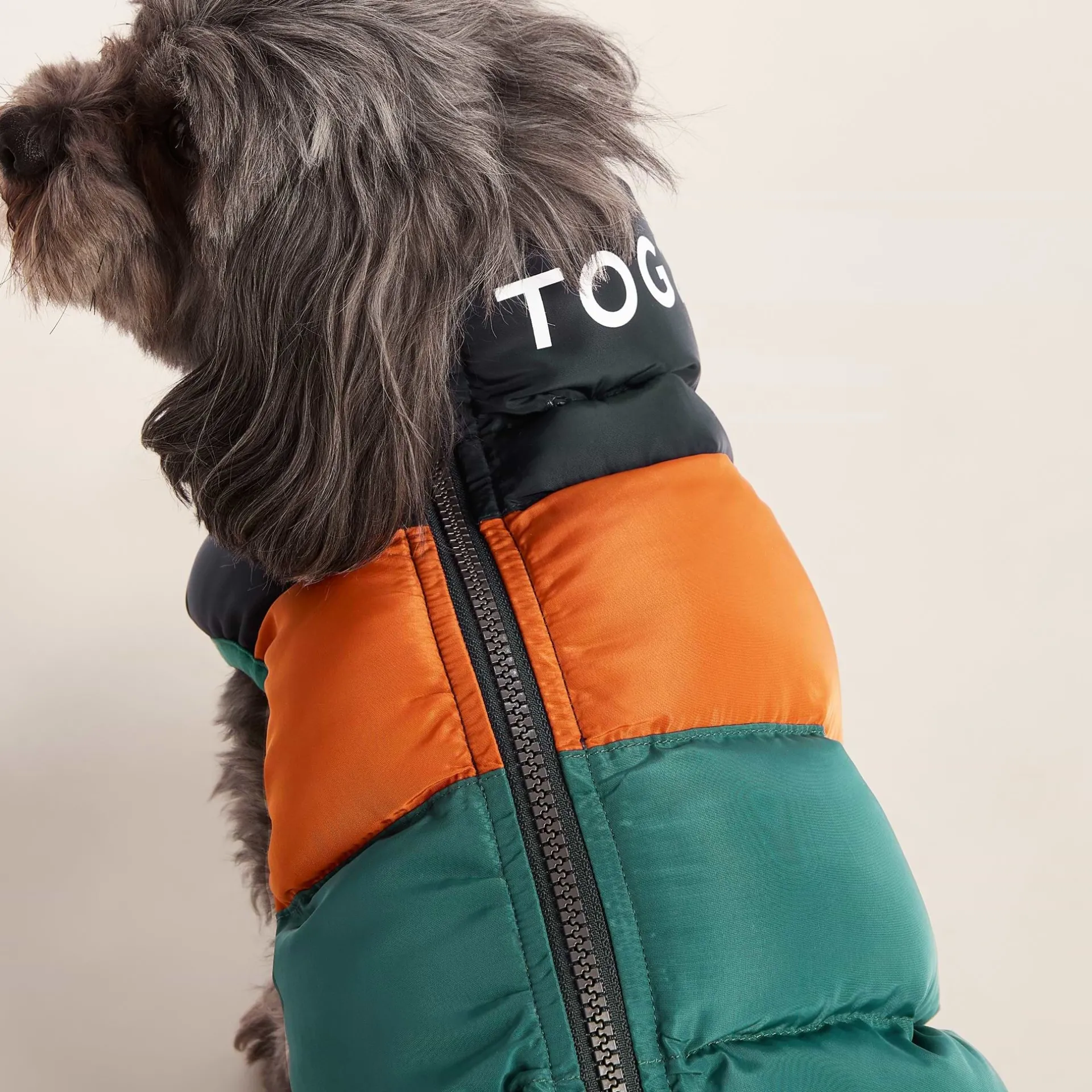 Product DescriptionInsulated for warmth and comfort, our Fetch coat for dogs keeps your pet cosy on cold winter walks. This stylish jacket is lightweight with a full length zip to make putting it on your dog stress-free. The reversible design has a reflective option so that your dog can be seen by cars and cyclists on dark early morning walks in the winter. A cut-out in the neck conveniently allows you to attach a lead while your dog is wearing the jacket. The colourblock pattern in tones inspired by the Yorkshire landscape with TOG24 printed on the neck gives the coat a sporty look both you and your canine companion will love.FeaturesLightweight u0026amp; padded dog coatReversible jacketOuter jacket is colour blocked u0026amp; Inner side of jacket is reflectiveZip fasteningHole for lead to be attachedTOG24 print on collarIntended for pet use onlyThis is not a toy and dogs should be supervised when wearingFitMaterial Composition100% Polyester.CareMachine washable.