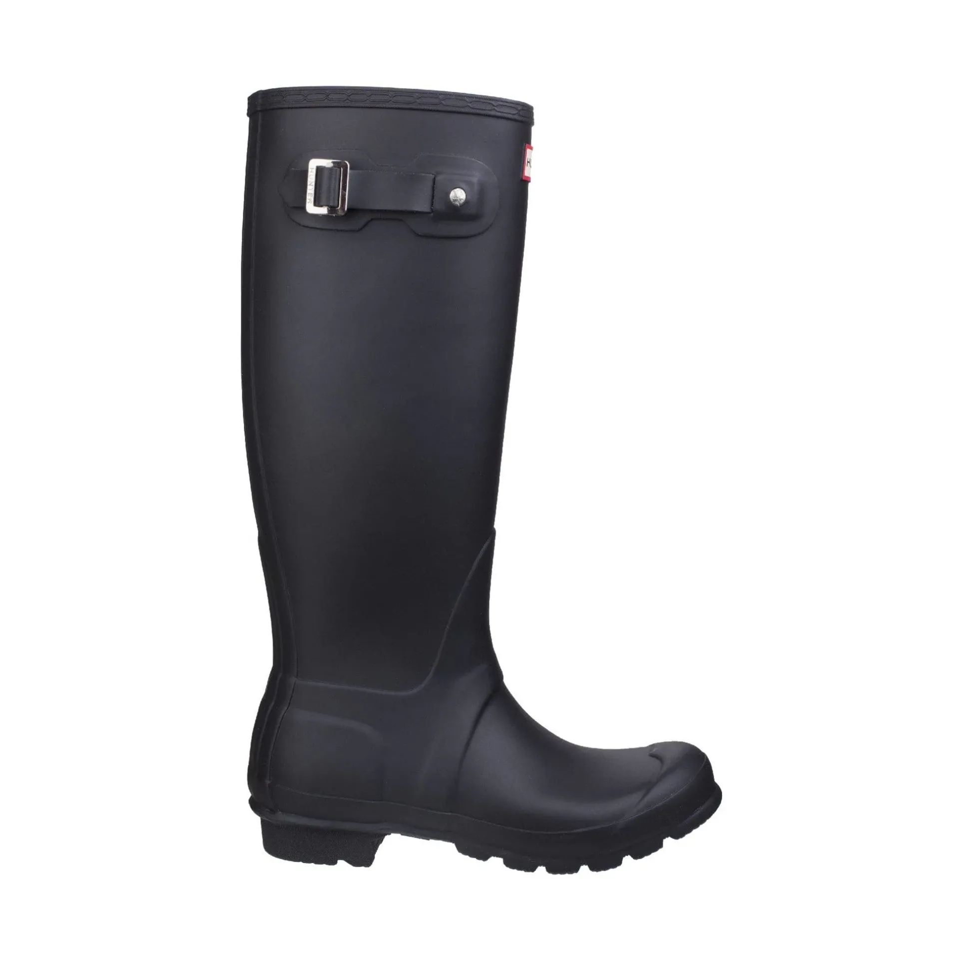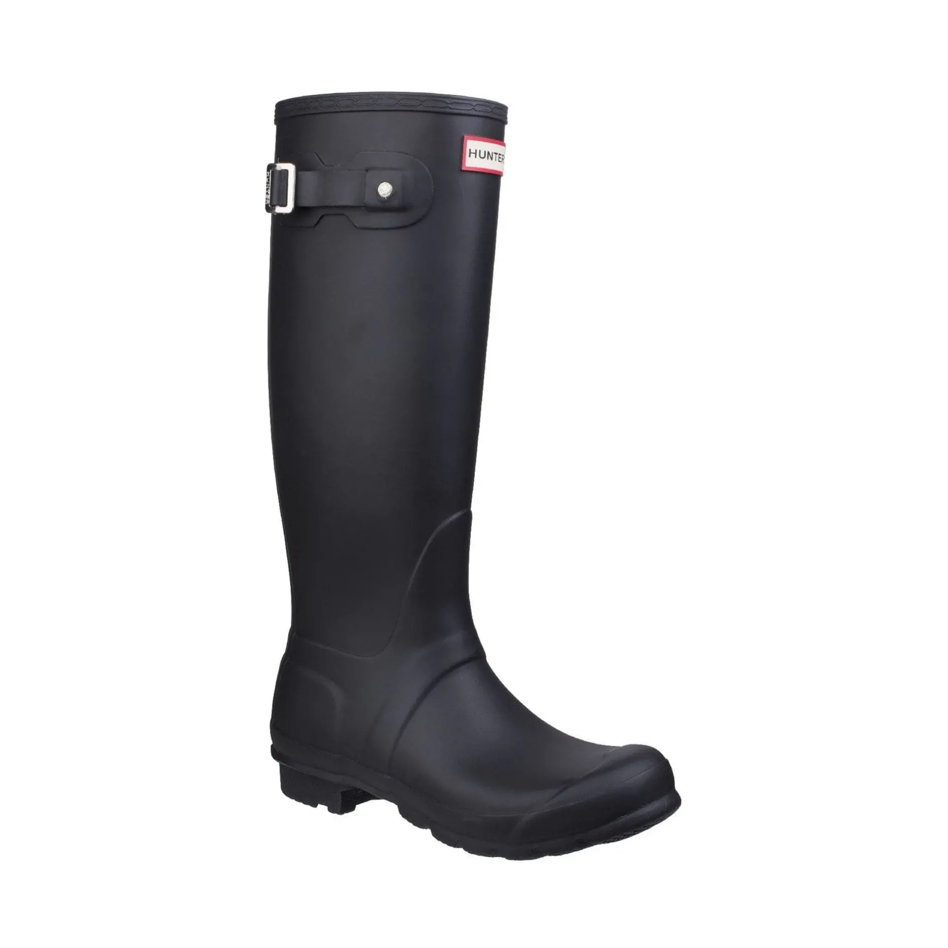 Product DescriptionFirst introduced in 1956, the Original Tall boot is handcrafted from 28 parts and built on the original last for exceptional fit and comfort. This iconic style lies at the heart of the Hunter Original brand.FeaturesHandcraftedWaterproofTextile liningOriginal calendered outsoleAdjustable strap to enhance fitNatural rubberFitMaterial CompositionUpper: 100% Rubber. Lining: Rubber. Sole: Rubber.Care
