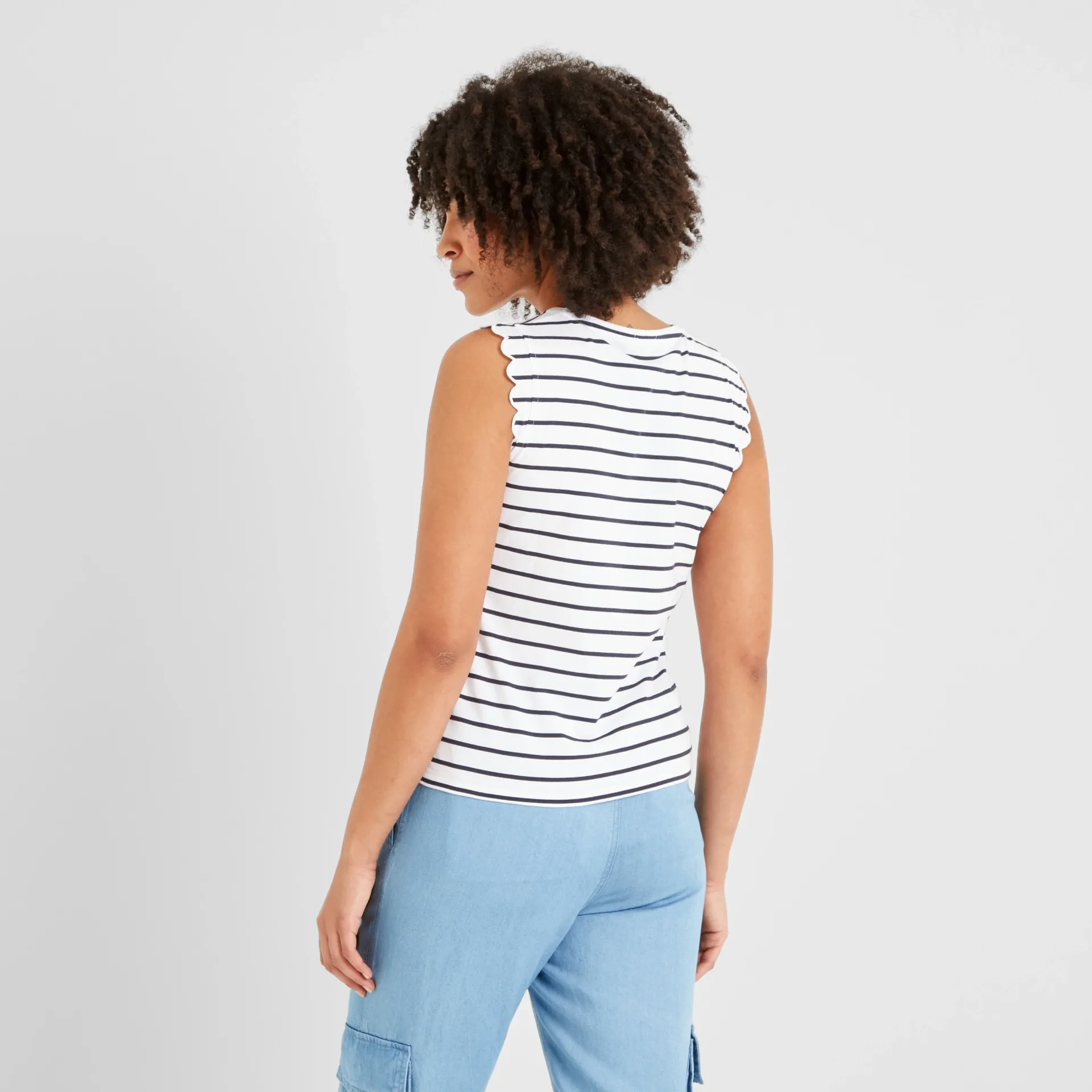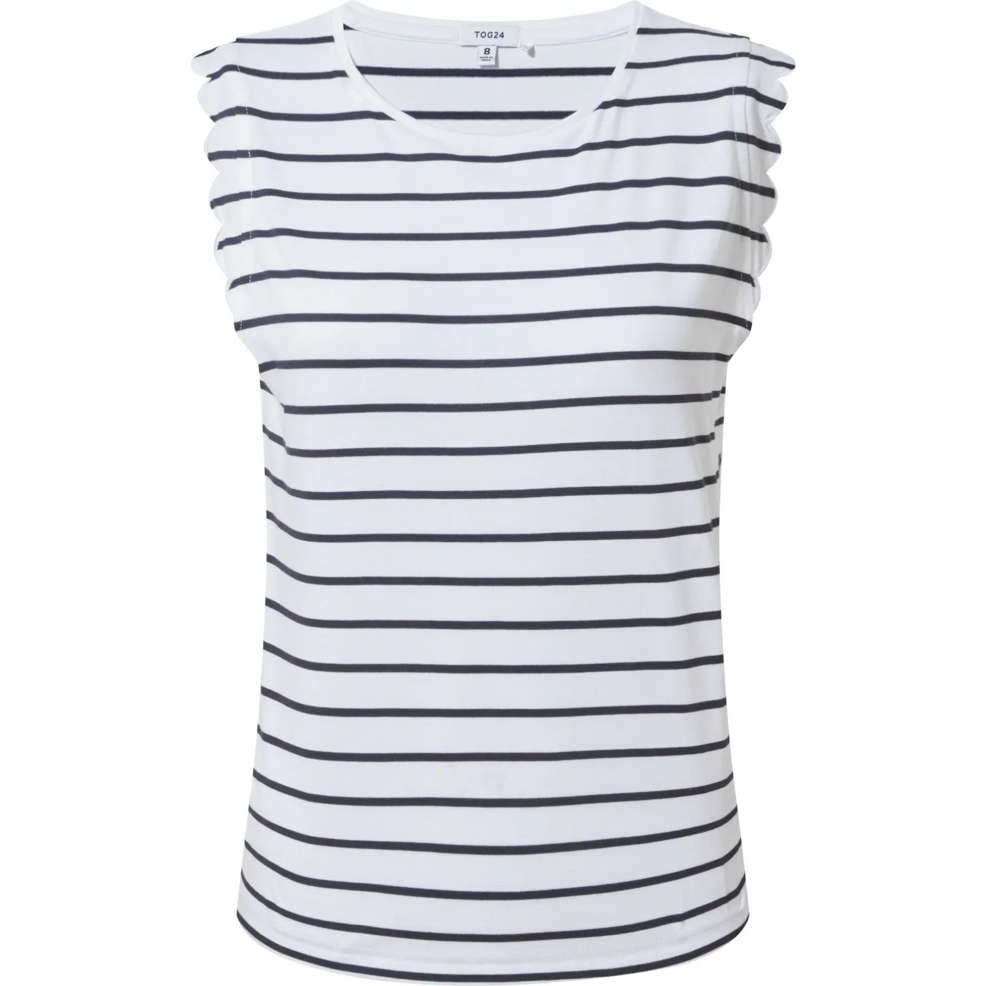 Clearance*This product is excluded from all additional promo code discountsProduct DescriptionThe Katie scalloped vest is an easy-going summer essential with a little extra luxe. Made from supersoft cotton, it’s lightweight and breathable, just great for sunny days. The cut-off vest look is accentuated with the scalloped detailing around the armholes, which add a nice touch. Whether you’re pairing it with shorts for a day at the beach or layering it under a jacket for a casual evening out, it looks great with almost anything. Finished with a TOG24 label on the hem, the Katie vest is a comfy and versatile staple you’ll find yourself reaching for all summer long.FeaturesSUPERSOFT COTTON TEESCALLOPED DETAIL TO ARMHOLESTOG24 LABEL ON THE HEMFitStudio model Natasha Dress 8 UK, Height 5’10