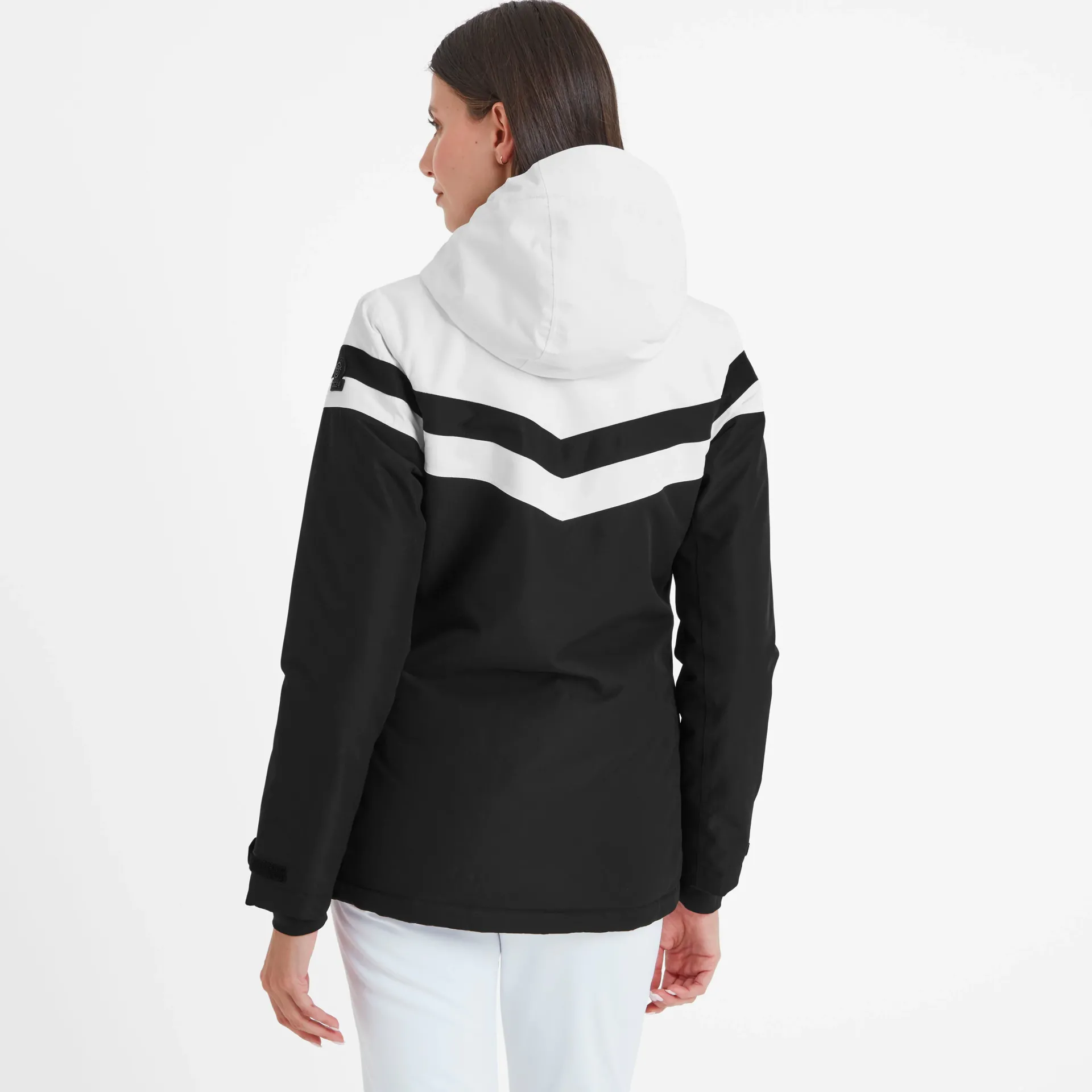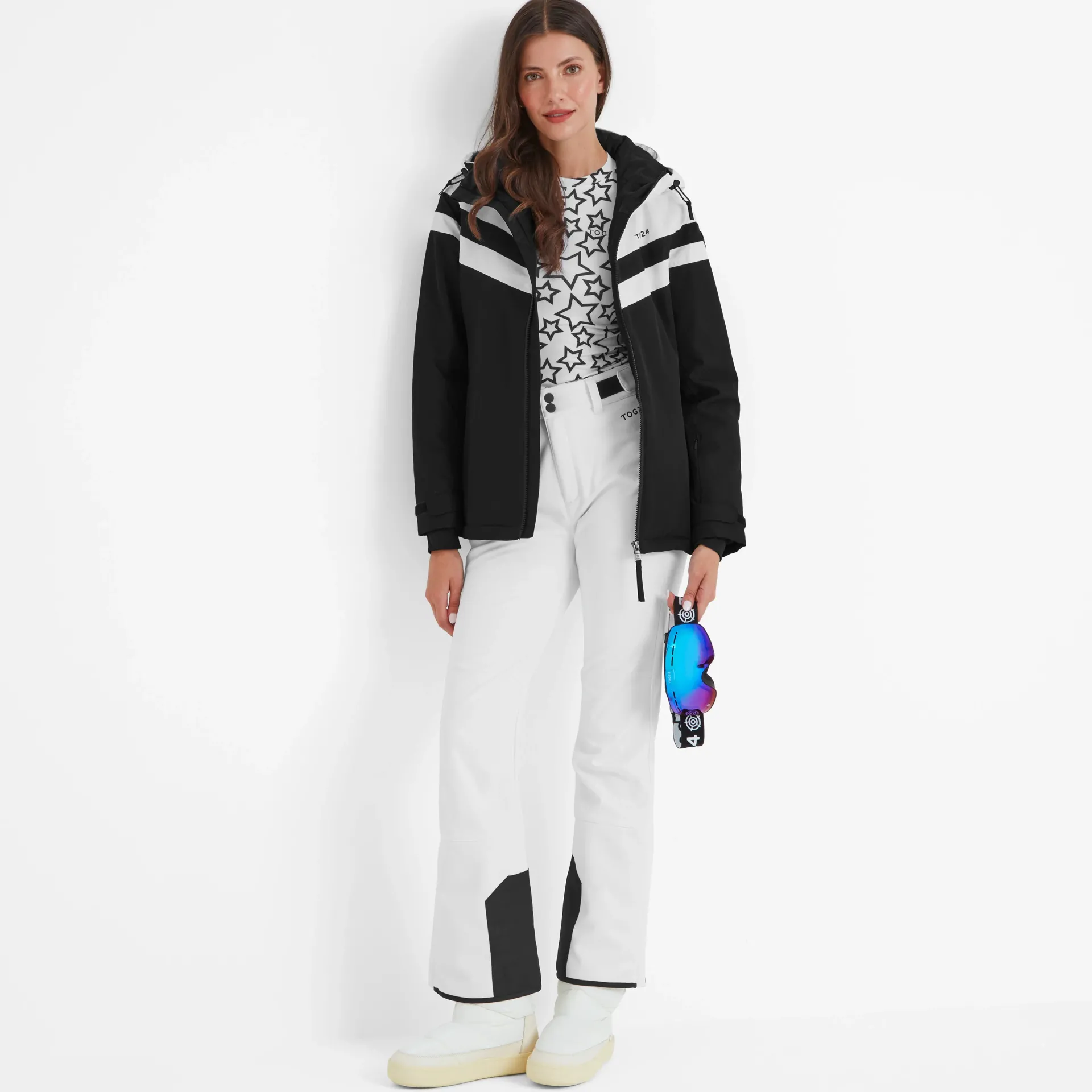Product DescriptionDesigned for enduring the snowy conditions, Panorama is tough and durable, fully waterproof and windproof, which helps to keep you warm and comfortable from the second you hit the slopes. With its eye-catching colour-block design and water repellent coating, this jacket is both stylish and practical. Its insulating filling offers great warmth, ideal for the cold weather. Panorama features a fixed, adjustable and helmet-compatible hood with a shaped peak for added protection, and chunky easy-grab adjusters on the hood, hems so you can adjust your jacket even when wearing ski gloves. Plus, Panorama includes a waterproof snowskirt with a gel print edge for grip and snow cuffs to keep the cold out. Featuring a ski pass pocket which allows you to scan your pass without removing it from your pocket, two zip outer pockets, and an inner pocket with a ski goggle wipe attached you’ll have plenty of pockets to store your belongings. At the hem there’s also a d-ring to clip your gloves to when on FeaturesWaterproof (10K), Breathable (10K), and WindproofPolyester FillingFully taped seamsWater repellent coating (DWR)Durable fabric with colour block panelsFixed hood with shaped and fused hood peakChunky easy grab adjusters on the hood, hem and cuffsFull length zip with glove-friendly puller2 Lower zip pockets, 1 inner zip pocket, 1 sleeve zip pocket for ski passSki features include; snow cuffs, ski goggle wipe attached to inside of chest pocket, glove ringSnowskirt has a gel print on the edge for grip and a DWR finish – this is not removeable.TOG24 badge on sleeve u0026amp; logo print on chestFitStudio model Mayara is wearing size 8 and is 5’11