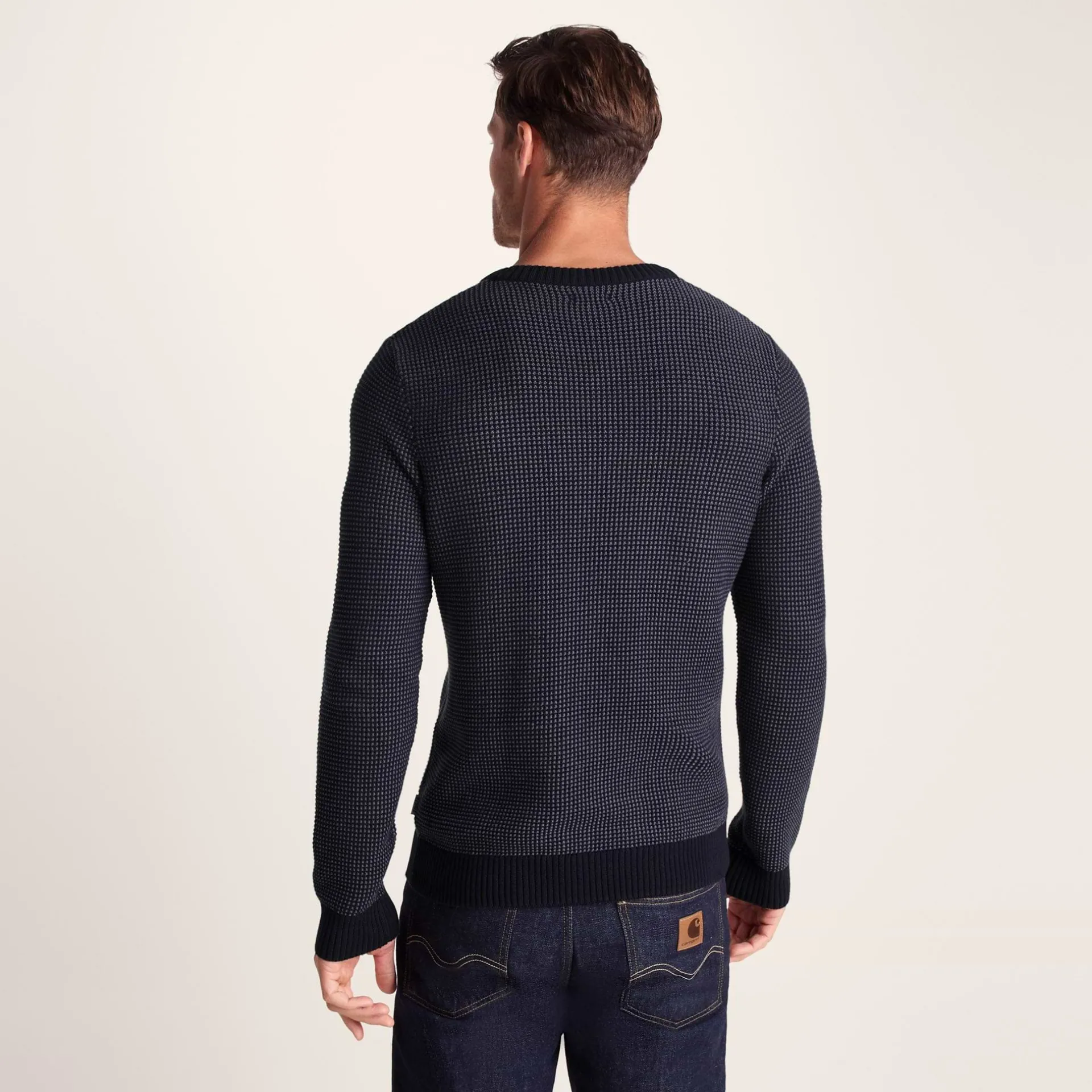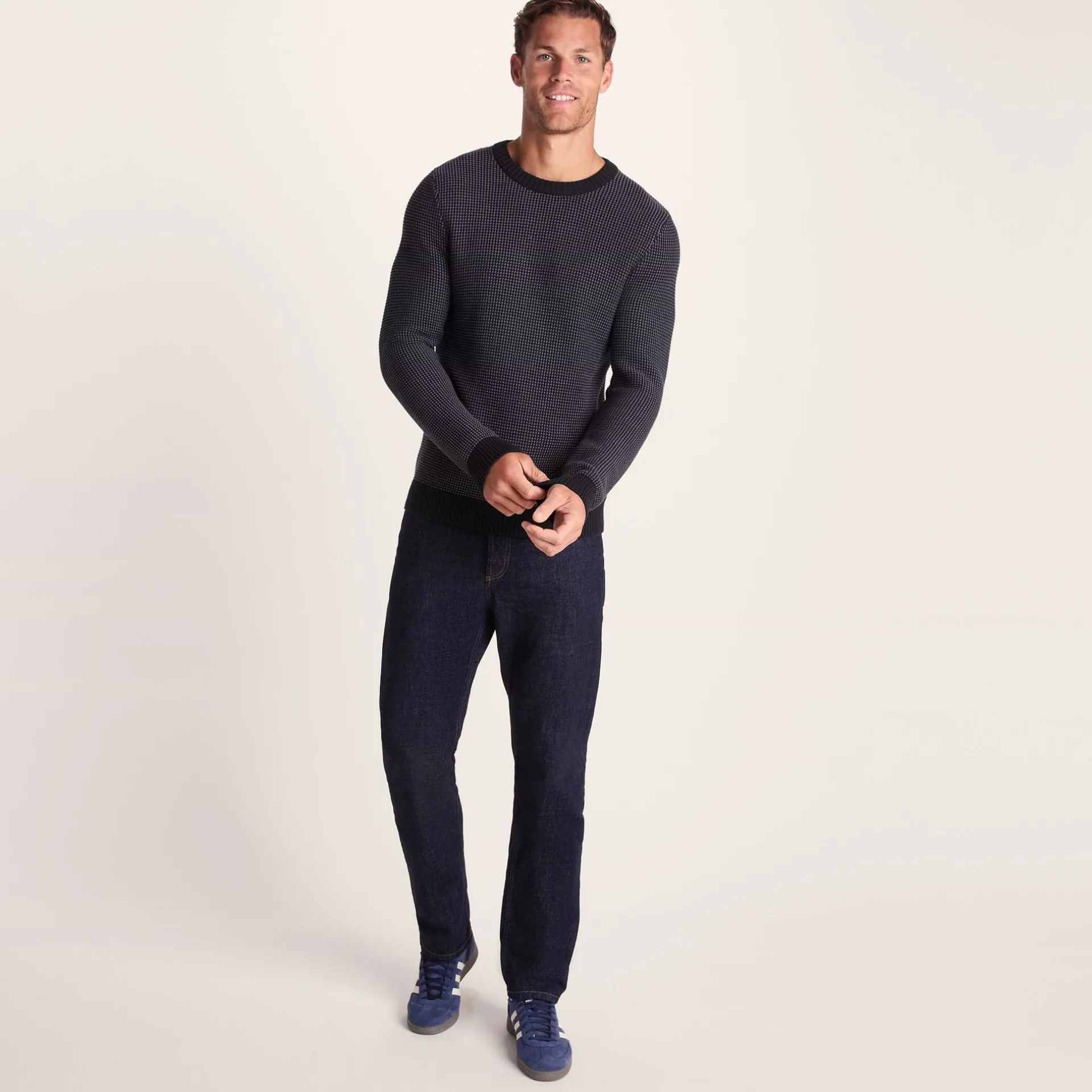 Product DescriptionThe Richie men’s jumper is the perfect wardrobe staple you can chuck on for the pub, a casual night out, or when you just want to look like you’ve made a bit of effort (without really trying).The moment you slip this men’s sweater on, you’ll notice how the two-tone knit brings a subtle richness to your outfit, and he ribbed cuffs, neck and hem keep everything looking tidy, even after loads of wear.nWhen the evening chill kicks in, this men’s jumper is warm without being stifling, and it sits nicely under a jacket when it gets nippy. Whether you’re meeting your pals or making an impression on date night, the Richie men’s jumper does the talking, so you don’t have to.FeaturesKnitted crew neck jumperTwo tone colourRib neck, hem and cuffsTOG24 woven label in the side seamFitStudio model Tyler is wearing size M and is 6’4