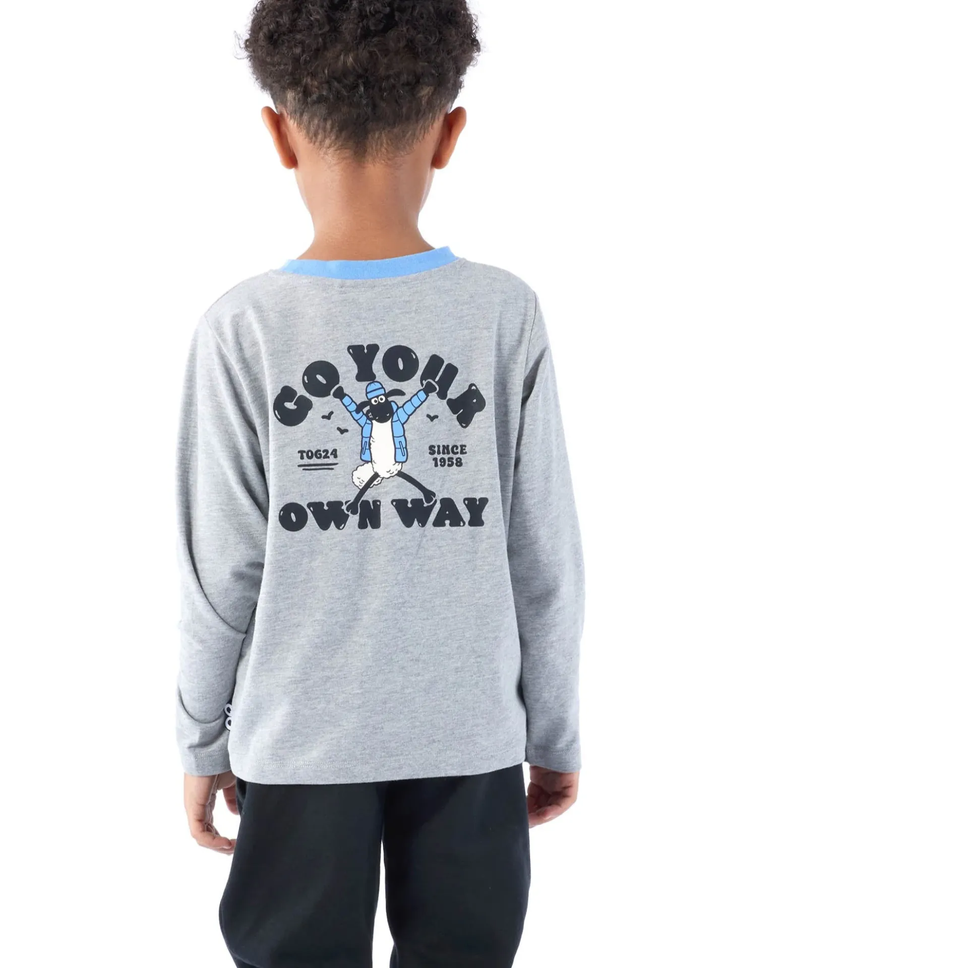 Product DescriptionEncourage your little one to show their colours with the Ryeland kidsâ long sleeve jersey tee – part of the TOG24 X Shaun the Sheep collaboration. Made from soft, comfy jersey, this long sleeve top is perfect for kids who love playtime at pretty much any time â just like Shaun. The small Shaun the Sheep graphic on the chest keeps it subtle up front, but turn around and youâll find the real statement – a bold, contrast graphic on the back that proudly reads âGo Your Own Wayâ. Itâs a nod to those little lambs who love to stand out from the flock. Call it âFleecewood Macâ style, if you will. Finished with a woven Shaun the Sheep label at the side seam, itâs a tee thatâs made for kids who dare to do things differently.FeaturesTOG24 X Shaun the Sheep collaborationLong sleeve jersey teeSmall graphic print on the chestLarge Shaun the Sheep graphic on the backShaun the Sheep woven label at side seamFitMaterial CompositionBody:58% Cotton (Better Cotton), 42% PolyesterCareMachine wash at 30c, Do not bleach, Do not tumble dry, Cool iron, Do not dry clean, Wash with similar colours, Specific care instuctions can be found on your garment care label
