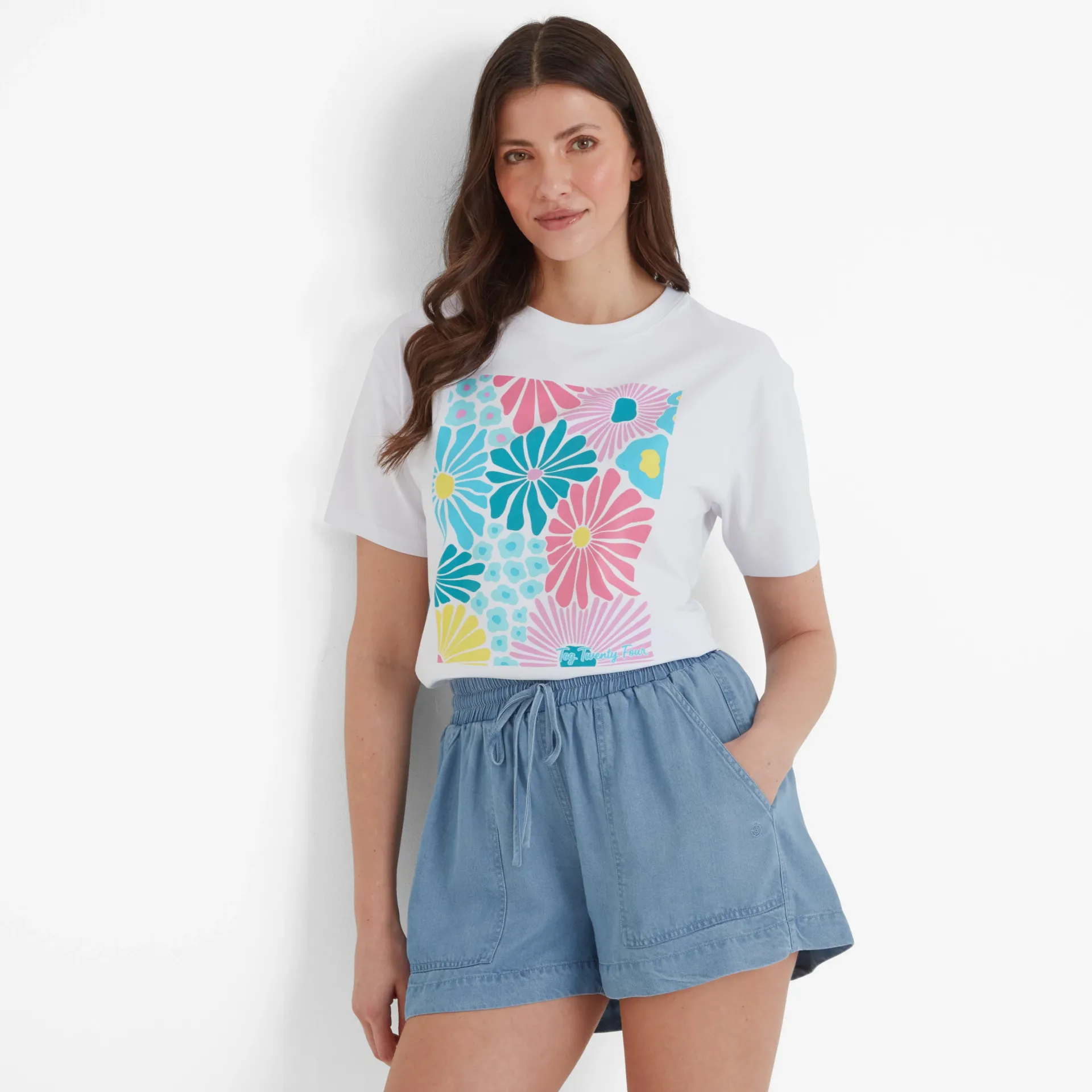 Clearance*This product is excluded from all additional promo code discountsProduct DescriptionThe Trissy printed T-shirt brings bold style and everyday comfort to your wardrobe. Made from premium heavyweight jersey fabric, it feels supersoft and durable, making it perfect for all-day wear. The T-shirt features a relaxed, boxy silhouette with dropped shoulders and short sleeves, giving it a laid-back fit that’s ideal for casual days. The straight hem adds to its easy-going vibe, making it a versatile choice for different outfits. The large tropical flower graphic on the chest adds a vibrant splash of colour and personality, instantly brightening up your look. Pair it with denim shorts and sandals for a classic summer vibe, or layer it under a lightweight jacket with joggers for laid-back weekends. Finished with a ribbed crew neck and a TOG24 label at the hem, the Trissy T-Shirt is a true summer staple that combines standout style with everyday ease.FeaturesSUPERSOFT TEEPREMIUM HEAVYWEIGHT JERSEY FABRICDROPPED SHOULDERSHORT SLEEVESSTRAIGHT HEM AND RELAXED FITRIB CREW NECKLARGE GRAPHIC PRINT TO CHESTTOG24 LABEL ON THE HEMFitStudio model Mayara Dress 8 UK, Height 5’11