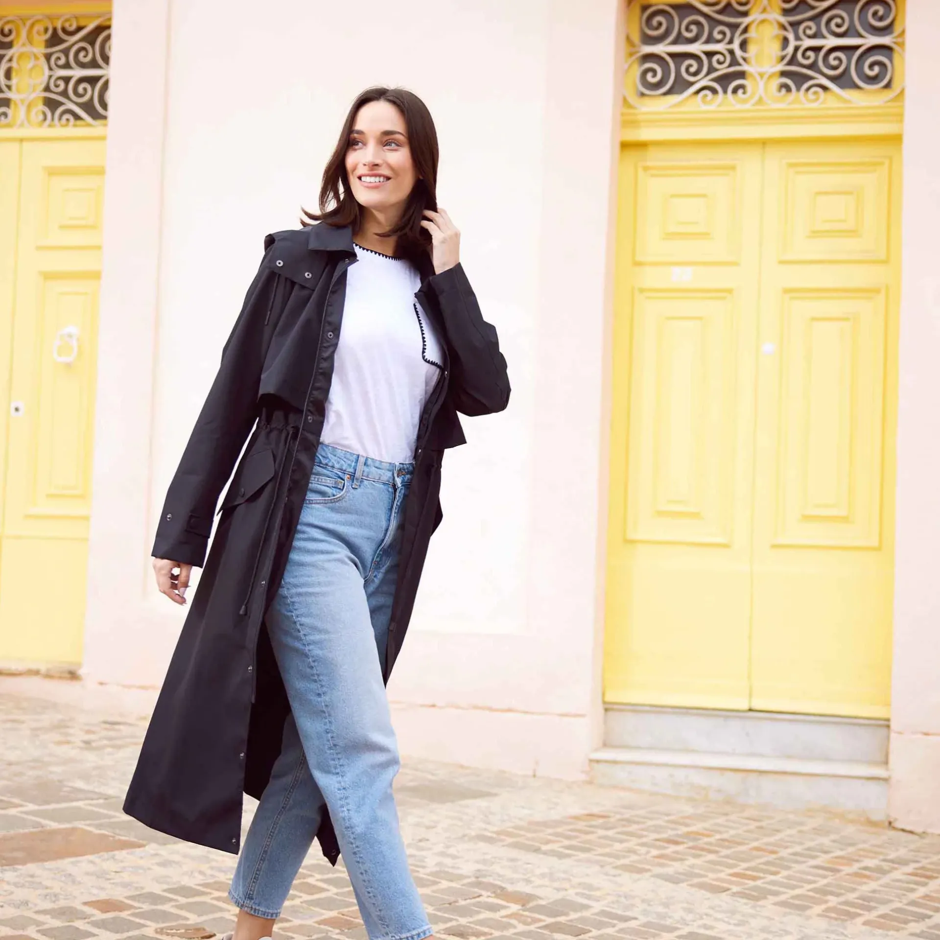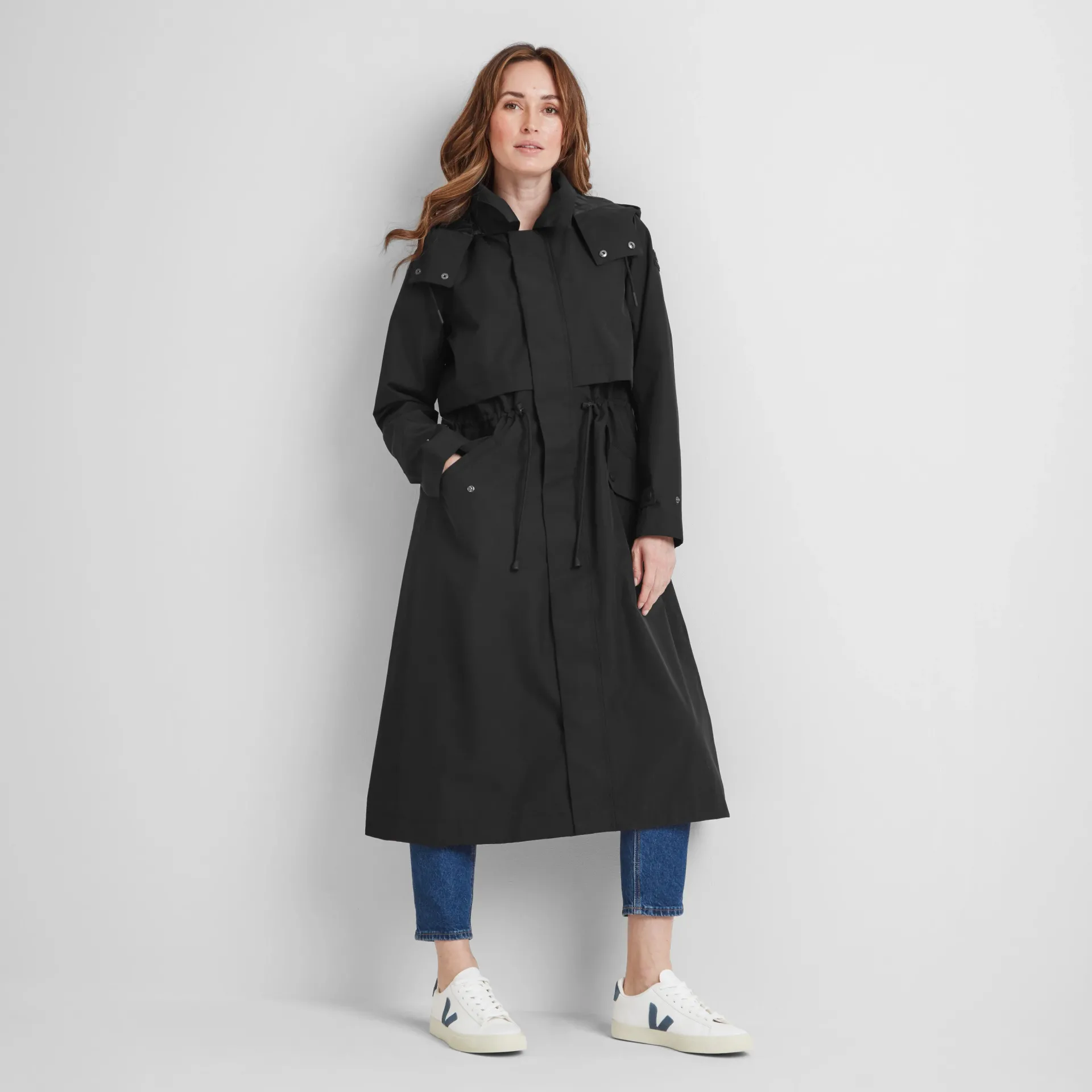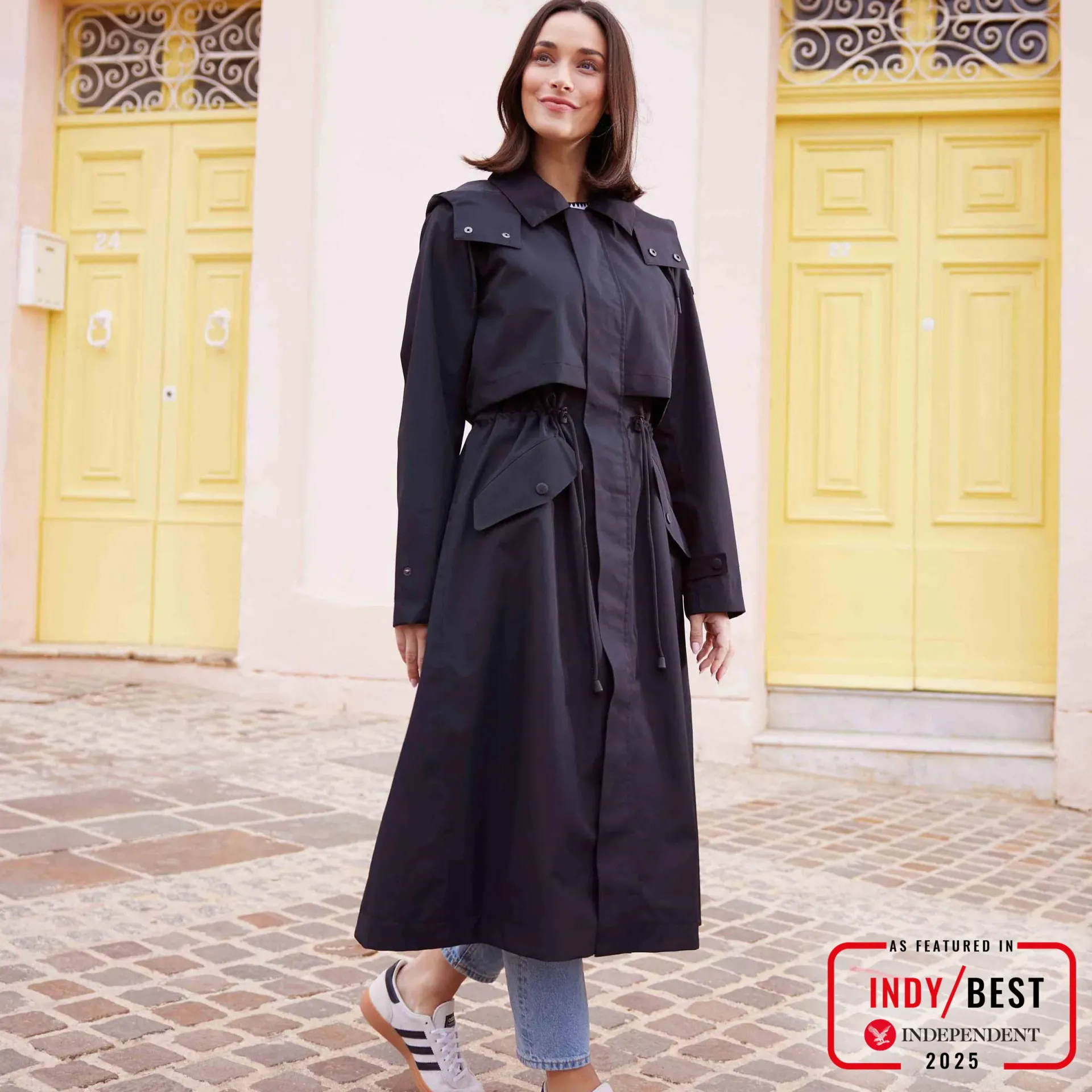 Product DescriptionWhen it comes to waterproof jackets, it doesnât get much more stylish than the Alva. Designed in the classic trench-coat silhouette, the Alva is a great looking coat that also comes with heaps of practical features. Its fully taped seams and waterproof coating ensures you keep the rain out and the warmth in, which is ideal for when the rain pours and the winds blow. Also, to ensure youâre ready for whatever the weather throws at you, the removable and adjustable hood comes complete with drawcords at the opening, while the handy two-way zip provides extra mobility. Whatâs more, the toggle adjusters on the waist offer that âcinched-inâ feel, which is both figure-flattering and great for keeping your torso toasty. With style and substance in abundance, the Alva is your trusty companion for keeping you dry and stylish in the unpredictable British weather.FeaturesWaterproof (10K), breathable (10K), and windproofFully taped seamsWater repellent coating (DWR)2 way zip opening fastened with concealed press studsRemovable hood with drawcords on hood openingToggle adjusters on waist2 lower patch pockets with press stud fasteningsPress stud cuff adjustersHem vent with concealed press studsTOG24 badge on sleeveFitStudio model Emma Dress 8 UK, Height 5’9