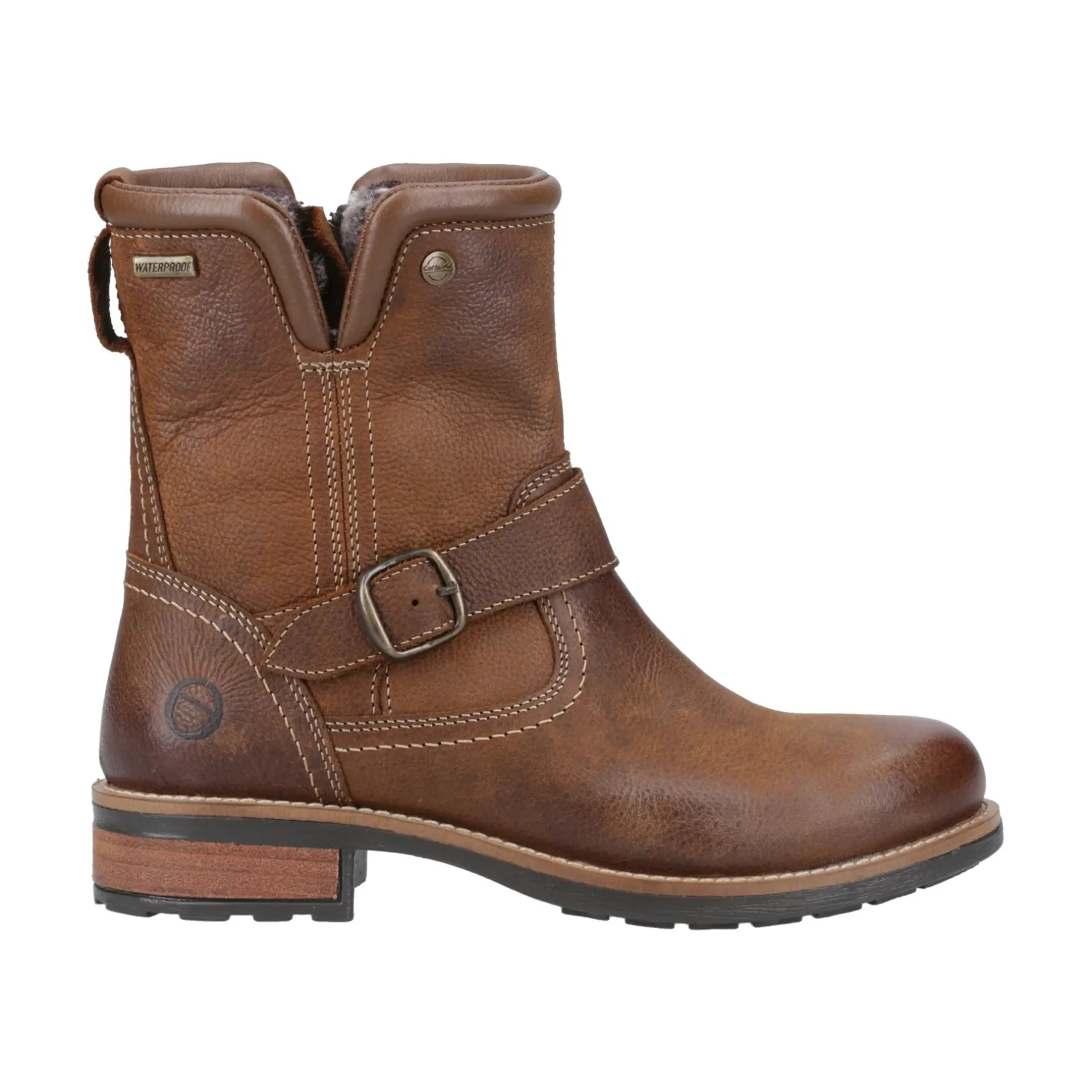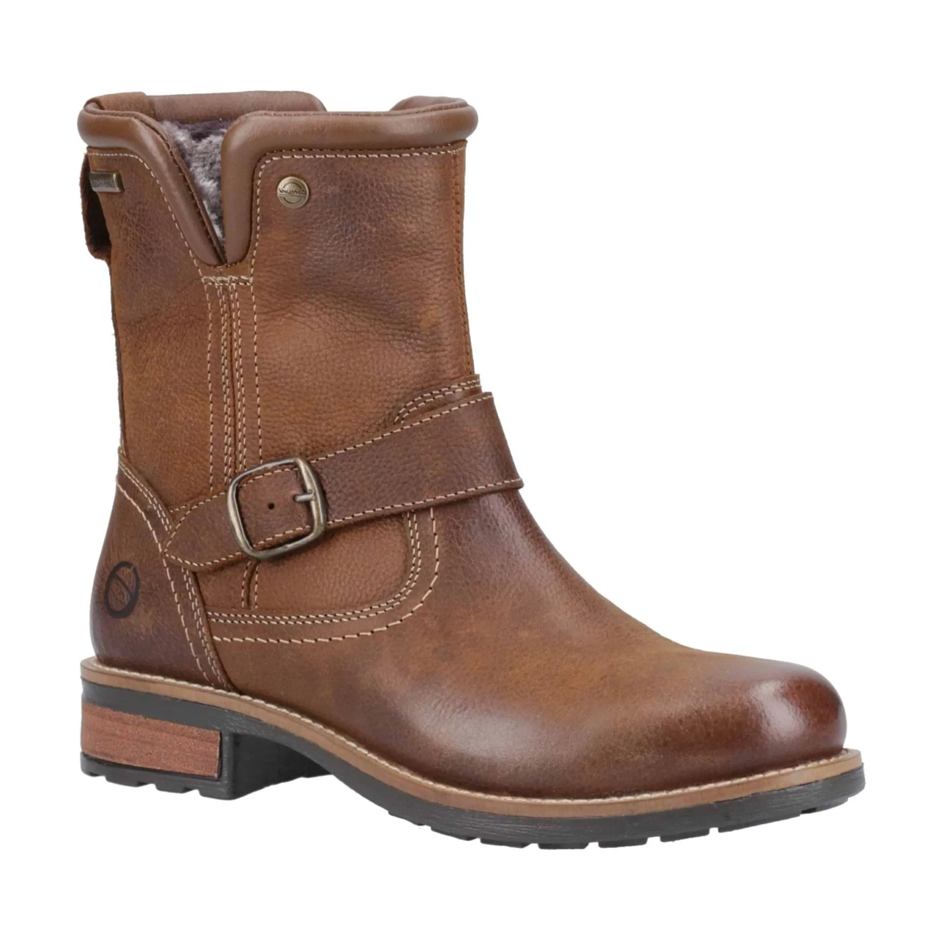 Product DescriptionKinsham is your biker boot with a country classic twist. Featuring waterproof leather uppers to keep your feet dry in the winter weather. With luxury faux fur lining the boot, your feet will be warm all season. With buckle detailing around the ankle.FeaturesKinsham is your biker boot with a country classic twist.Featuring waterproof leather uppers to keep your feet dry in the winter weather.With luxury faux fur lining the boot, your feet will be warm all season.With buckle detailing around the ankle.FitMaterial CompositionUpper: Full Grain Leather. Lining: Faux Fur/Waterproof Membrane. Sole: TPRCare