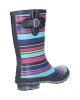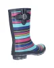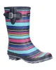 Product DescriptionWomen’s mid height boot with extra-fit adjustment at the calf. Fully waterproof rubber upper with colourful printed pattern. Practical cleated sole with stylish chunky 25mm heel. An ideal women’s festival welly, gardening boot or for walking the dog.FeaturesWomen’s mid calf wellingtonA colourful pattern adorns the upperFully waterproof constructionAdjustable extra-fit calf strap with buckle closureContrast textured rims and finishesSoft cotton and polyester blend liningRemovable EVA foam foot bedContoured and shaping heel areaRugged cleated rubber outsole with chunky 25mm heelIdeal pull on mid boot for gardening, dog walking or for use as a festival wellyFitMaterial CompositionUpper: Rubber. Lining: Cotton/Polyester. Sole: Rubber/EVA.Care