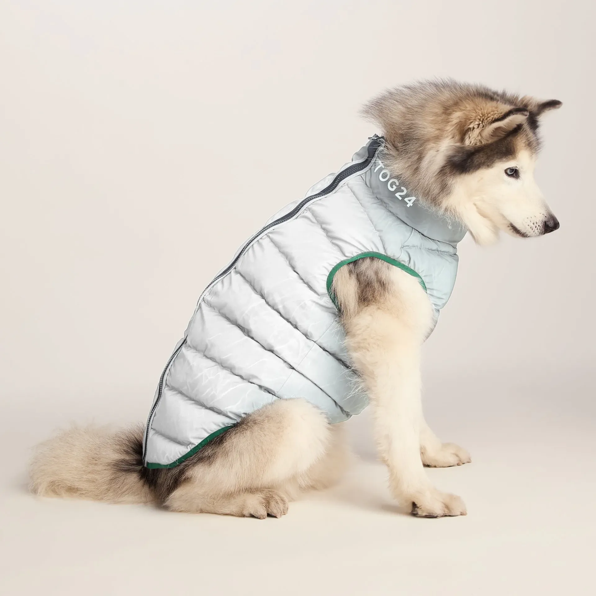 Product DescriptionInsulated for warmth and comfort, our Fetch coat for dogs keeps your pet cosy on cold winter walks. This stylish jacket is lightweight with a full length zip to make putting it on your dog stress-free. The reversible design has a reflective option so that your dog can be seen by cars and cyclists on dark early morning walks in the winter. A cut-out in the neck conveniently allows you to attach a lead while your dog is wearing the jacket. The colourblock pattern in tones inspired by the Yorkshire landscape with TOG24 printed on the neck gives the coat a sporty look both you and your canine companion will love.FeaturesLightweight u0026amp; padded dog coatReversible jacketOuter jacket is colour blocked u0026amp; Inner side of jacket is reflectiveZip fasteningHole for lead to be attachedTOG24 print on collarIntended for pet use onlyThis is not a toy and dogs should be supervised when wearingFitMaterial Composition100% Polyester.CareMachine washable.