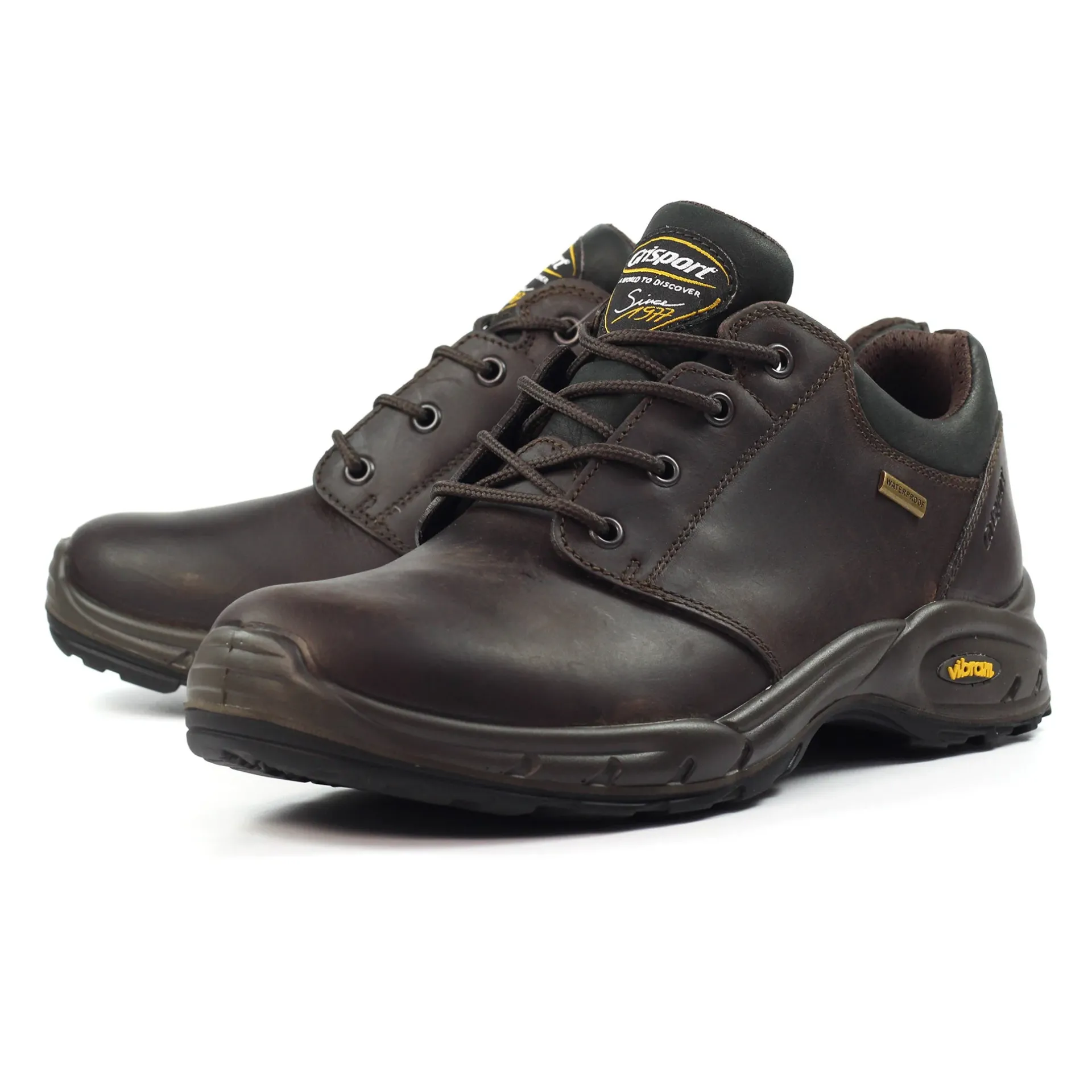Product DescriptionBuilt from the blueprint of the original Exmoor shoe, this updated version has been improved in both looks and performance. The new ‘memory foam’ insole elevates comfort levels, while the new Vibram ‘Travel-Pro’ sole provides non-slip traction. Perfect for casual walks, travelling and daily errands.FeaturesWaterproof membrane, exceptional breathability and waterproof performanceVibram ‘Travel Pro’ rubber outsole – anti-static and non-slipWaxed 2mm ‘Dakar’ leather upperRemovable, activated carbon insole with memory foam4 eyelet ‘easy lace’ system with fitting slotPadded collar100% waterproof lacesProtective rubber toe bumperBuilt on our ergonomic ‘travel’ last, for a precision fitDual-Density mid-sole, for lightweight, all-day comfortBellows tongue – keeps out water and debrisSizes 36 – 48Weight = 880gFitMaterial CompositionWaxed LeatherCare
