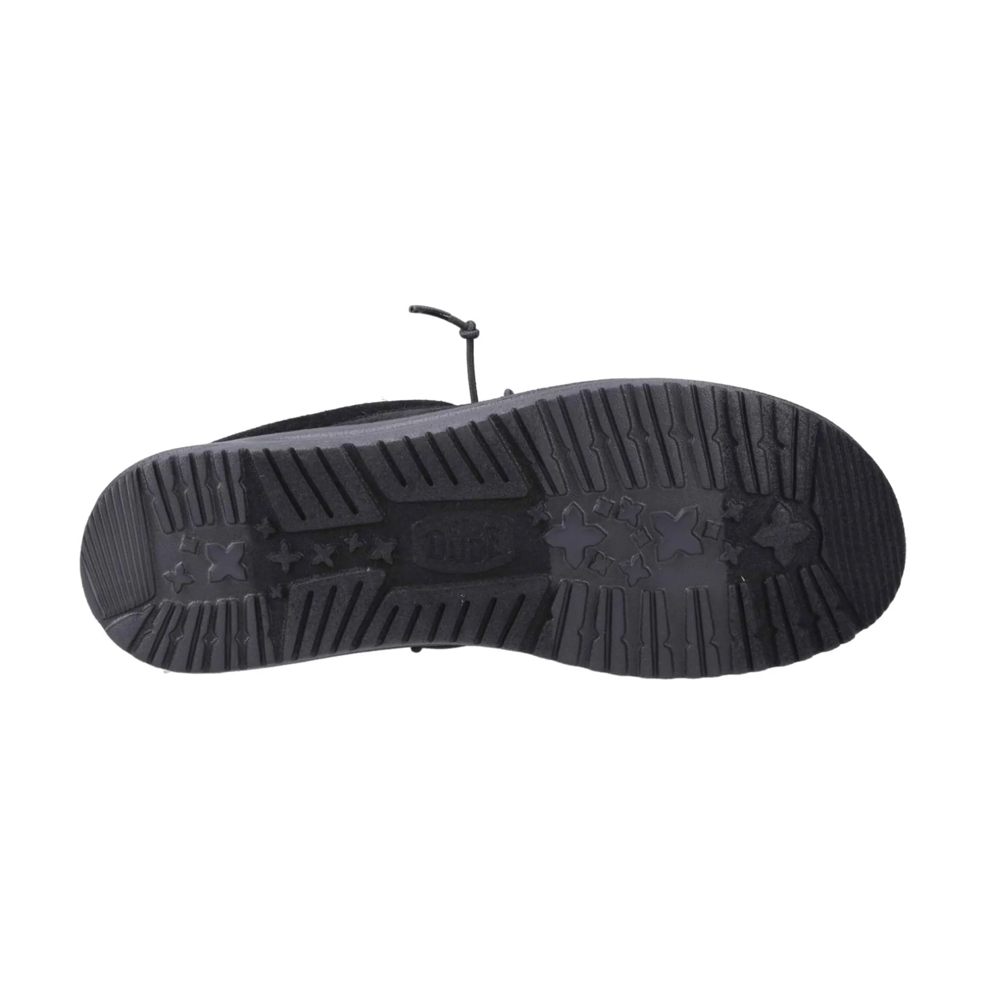 Product DescriptionIt doesn’t get more suave than suede. Day to night. Work to play. The Wally Suede elevates every look without missing a step. Premium suede, cool classic colours and all-day HEYDUDE comfort.FeaturesSuede upperUpper treated with water-repellent sprayComfort cushioned ankle collarElastic lacesEasy-on systemTravel readyRemovable foam insoleLightweight flexible outsoleFitMaterial CompositionUpper: Suede. Lining: Cotton. Sole: EVACare