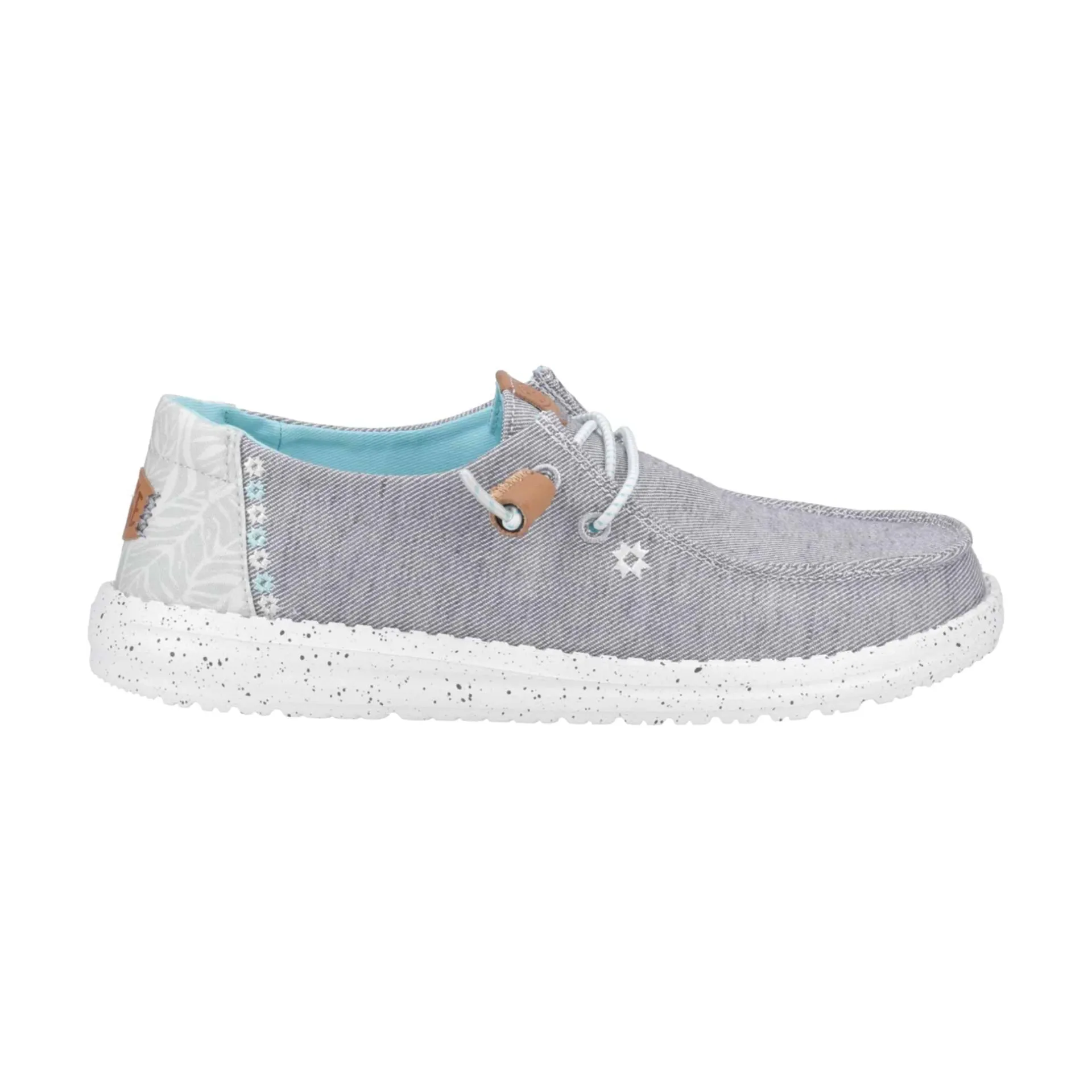 Product DescriptionIsland-inspired and featuring a flexible outsole, easy laces and colourful embroidery, Wendy Heathered Slub Tropical makes every day feel like a vacation underfoot.FeaturesCanvas upperElastic lacesLightweight outsoleFlexible outsoleEasy-on systemTravel readyRemovable foam insoleFitMaterial CompositionUpper: Linen/Lyocell/Cotton. Lining: 100% Cotton. Sole: RubberCare