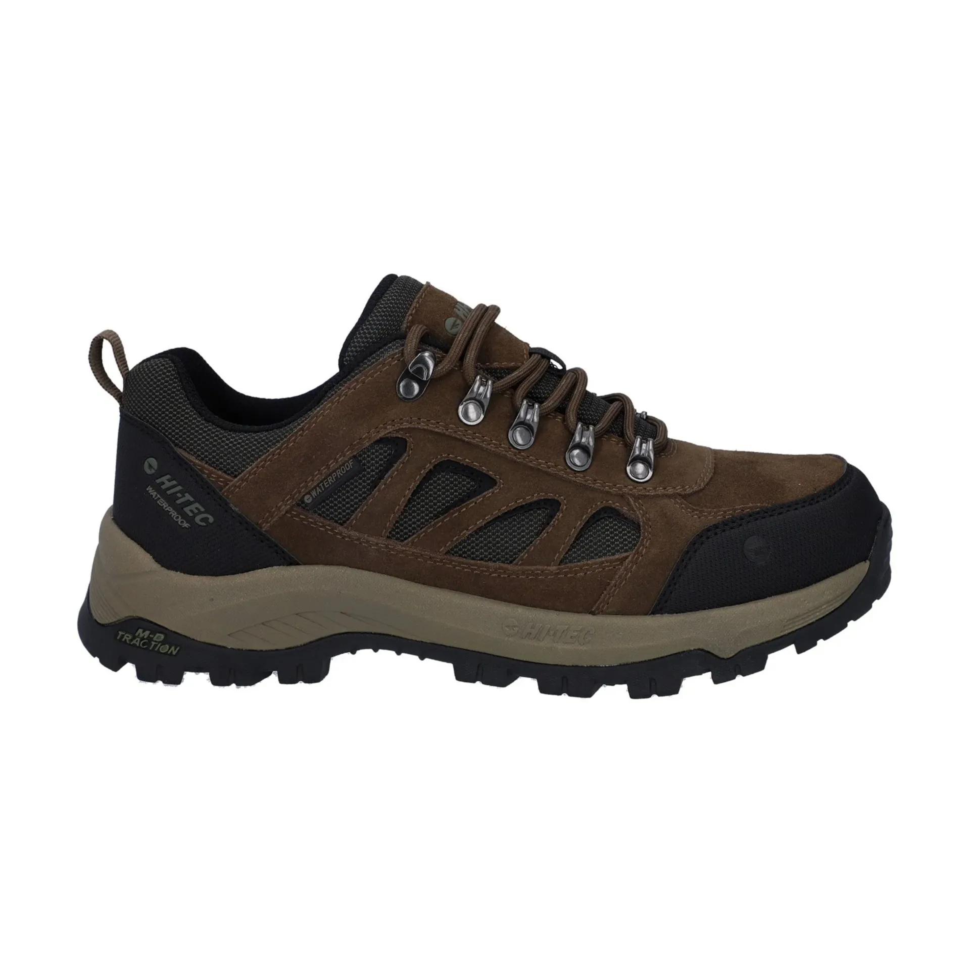 Product DescriptionSuede and mesh upper provides durability, breathability and comfort. Dri-Tec waterproof, breathable membrane keeps feet dry. Ghillie and rustproof hardware lacing system provides a snug and securPadded collar and tongue provides extreme comfortFeaturesAbrasion resistant heel and toe cap protects against rough terrainLightweight, durable fork shank ensures flexibility and stabilityM-D Traction outsole improves grip walking both up and downhillRemovable moulded EVA footbed delivers underfoot cushioningImpact-absorbing CMEVA midsole ensures long lasting cushioning and comfortFitMaterial CompositionUpper: Leather. Lining: Polyester. Sole: Rubber.Care