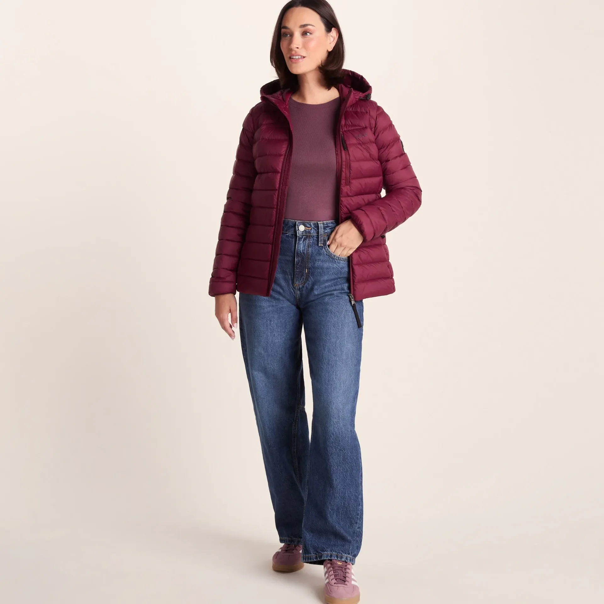 Product DescriptionSay hello to winter with the North down hooded jacket featuring duck down. If itâs high-quality and supreme warmth youâre after, then the women’s North hooded down jacket is a smart choice for those outdoor adventures. Featuring our most premium insulation made from duck down, this jacket feels toasty warm and cosy and yet equally feels breathable and lightweight. Like all great things, thereâs more to the North than meets the eye, as you wonât believe a jacket so insulated can also pack away into its own chest pocket and become a handy travel pillow, too. Thatâs because the North has been designed with the adventurer in mind, so practicality and space-saving genius is an absolute must. Complete with toggle adjusters on the hood to trap in all that wonderful warmth for your head and neck, this jacket also comes with zip side pockets to safely store your phone, wallet and keys. Layer the North over a sweatshirt on extra chilly days, or layer it under a coat for added protection from theFeatures90% duck down 10% feather, 800 fill powerLightweight, breathable u0026amp; ultra warmDown weight – 86g (based on size M)1 zip chest pocket, 2 lower zip pocketsToggle adjuster to hemJacket packs away into chest pocketLogo print on chestFitStudio model Georgia Dress 8 uk Height 5’10* Bust 34 Waist 25.5