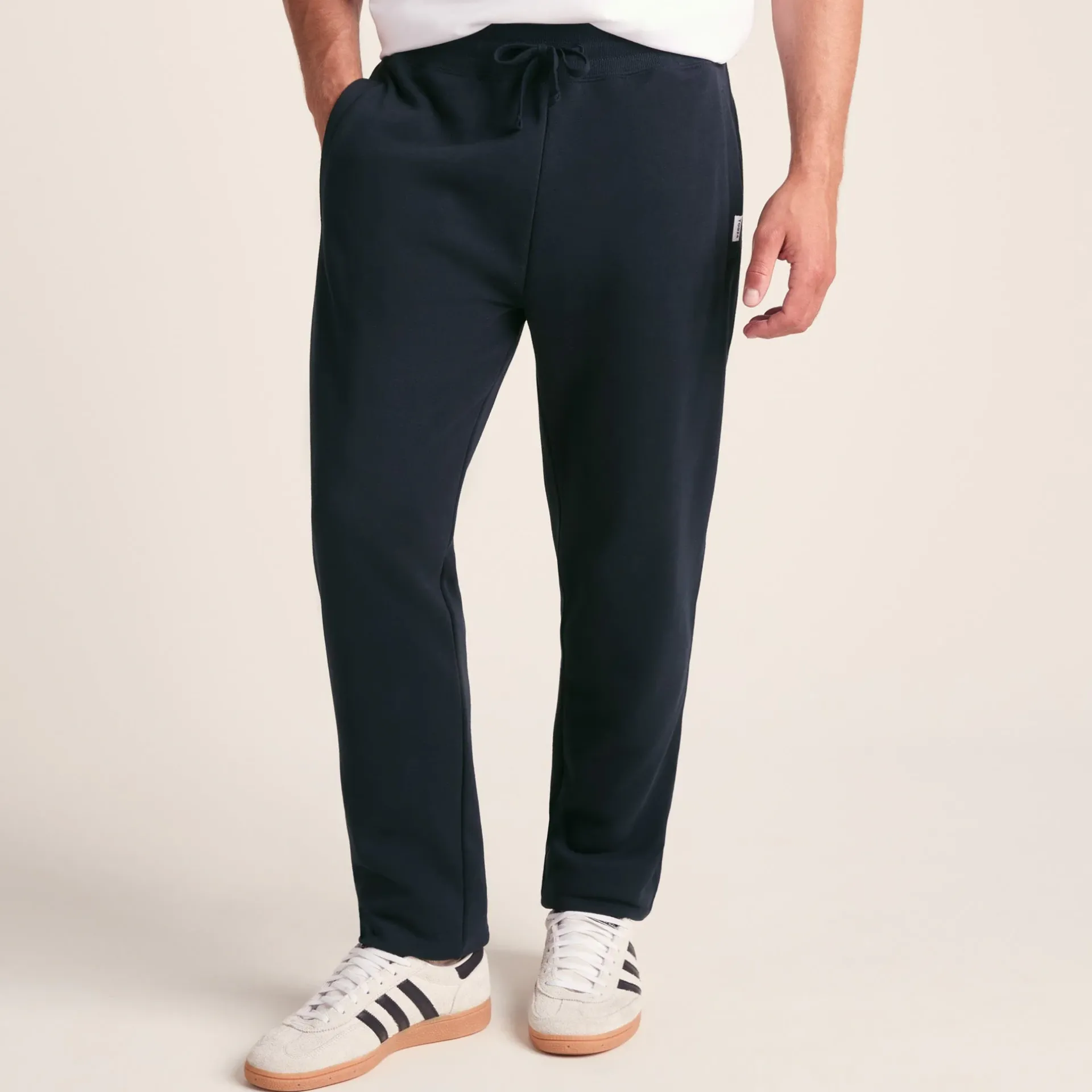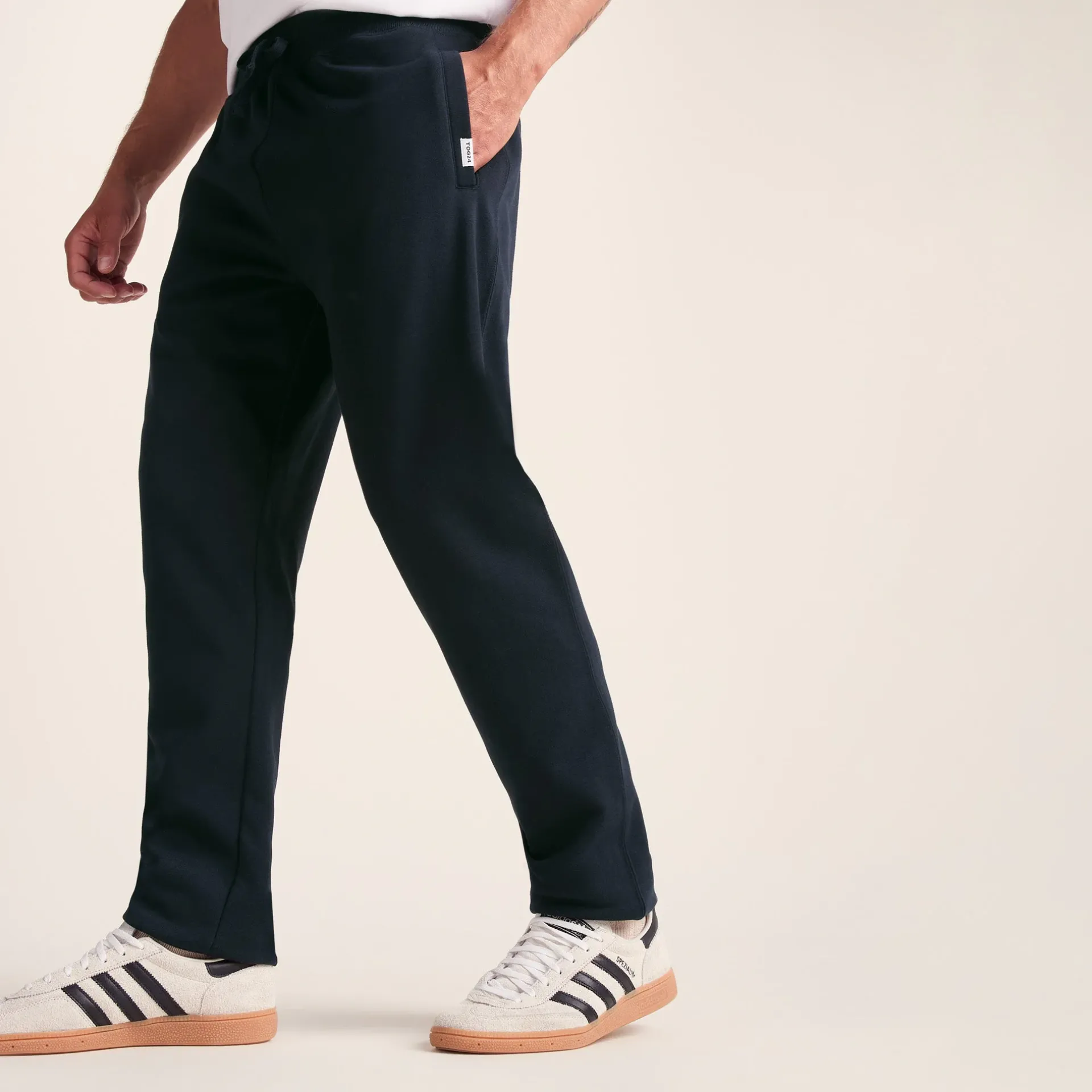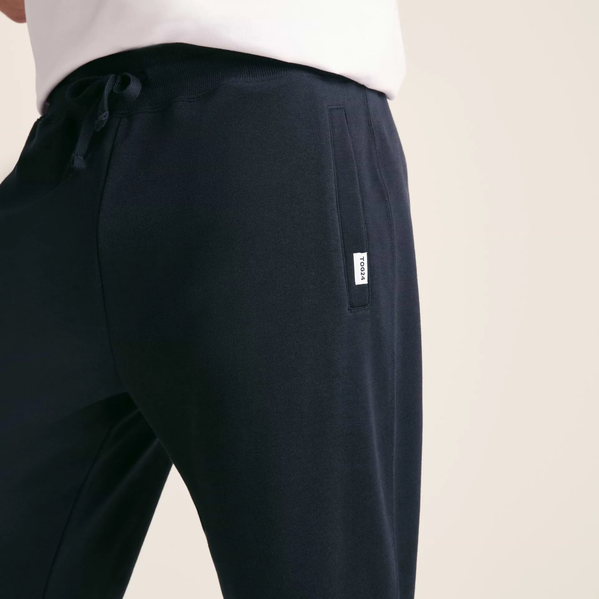 Product DescriptionRelax at home in our lightweight joggers, or pop them into your gym bag as the perfect cover-up after exercise. Designed by our team in Yorkshire, they’re cut in a straight leg style from a lightweight cotton blend fabric that feels cosy and soft with a loop-back finish on the inside and supersoft peach finish on the outside. They hold up snugly with the deep, comfy ribbed waistband, or you can tie the drawcords as well. The TOG24 ‘Truth Over Glory’ branding is seen on a small label on the front pocket.FeaturesSupersoftDeep elasticated ribbed waist with drawcordsStraight leg2 large pocketsTOG24 woven label on pocketFitStudio model Joshua is wearing size M and is 6′, chest 39