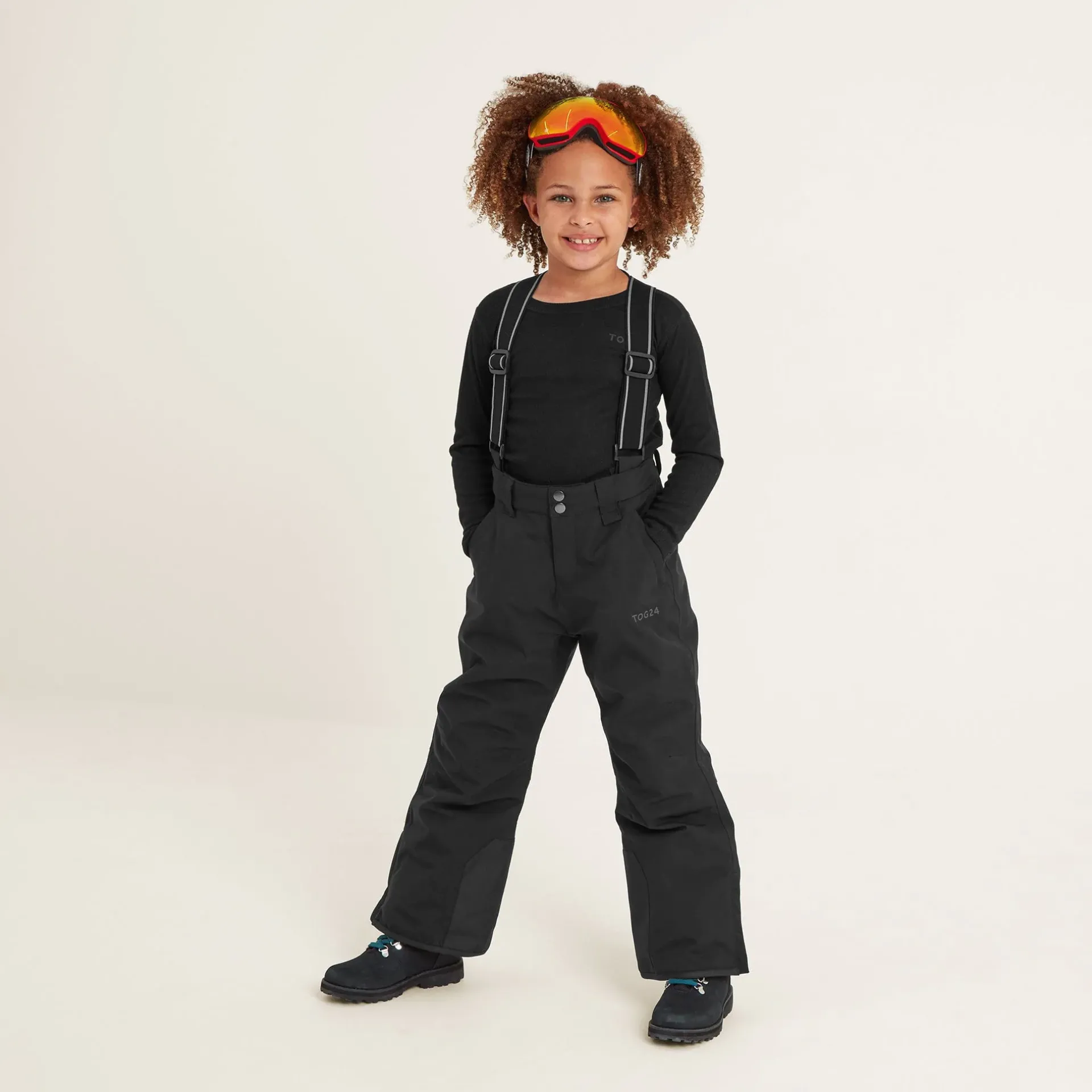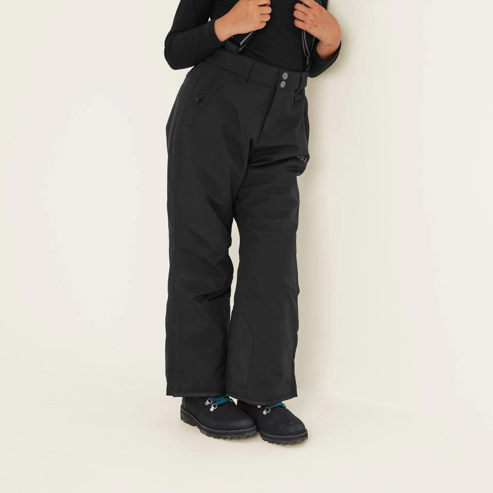Clearance*This product is excluded from all additional promo code discountsProduct DescriptionTrue to our ethos of Truth over Glory, these ski pants for kids have a ton of technical features without any fuss or ridiculously high price tags. 100% waterproof fabric, taped seams and an inner snow cuff means they can fall over or lie down and make snow angels without getting wet. Lightly padded insulation means they won’t get cold either. There’s masses of give in the waist, with a stretch panel at the back and two chunky touch-close tab adjusters so if your kids grow you can make it a bit bigger. The waist fastens with a neat press stud, but there’s also a hook and bar to keep everything secure underneath no matter how energetically they practice their snow ploughs. A generous cut with an inset gusset and darts at the knees means kids can do all the moves without being restricted. At the ankles there’s a leg zip to make it easy to fit the trousers over ski boots, and the inside leg is reinforced in just the place where boots or the side edge of the ski might rub. All in all these Features5K Waterproof, 5K Breathable, WindproofSynthetic fill for warmthTaped seams to stop water getting inDWR coating to outer fabric to repel watervelcro adjustment at waistzip fly with press stud u0026amp; hook u0026amp; bar fasteningElastic to back of waistband for added stretchzips to hem to help with ski bootsDetachable stretch bracesinternal snow gaitors at hem to stop snow getting inreinforced fabric to inside leg hem to reduce damage from skis2 hip pockets to front u0026amp; 1 hiddden zip pocket to backlogo print to hipFitMaterial CompositionOuter: 100% Polyester. Lining: 100% Polyester. Fill: 100% Polyester.CareMachine washable, tumble drying safe