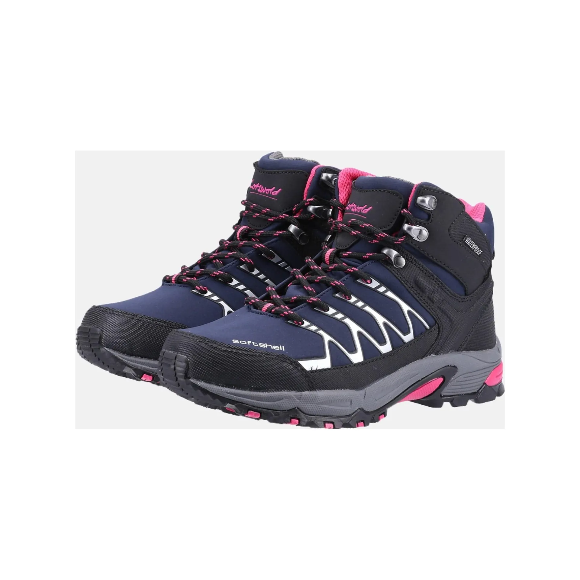 Product DescriptionLightweight and breathable hill and trail walking boot. A waterproof membrane keeps feet dry whilst a memory foam foot bed moulds and cushions the feet, keeping adventurous feet comfortable.FeaturesLightweight, breathable and water resistant soft shell upperWaterproof inner membraneSoft touch liningRemovable memory foam foot bedPadded gusset tongueDeep cushioned collarRear pull loopUpper speed lacing hooksTraction rubber outsoleFitMaterial CompositionUpper: Softshell/PU/Rubber/TPU. Lining: Waterproof Membrane/Mesh. Sole: Rubber.Care