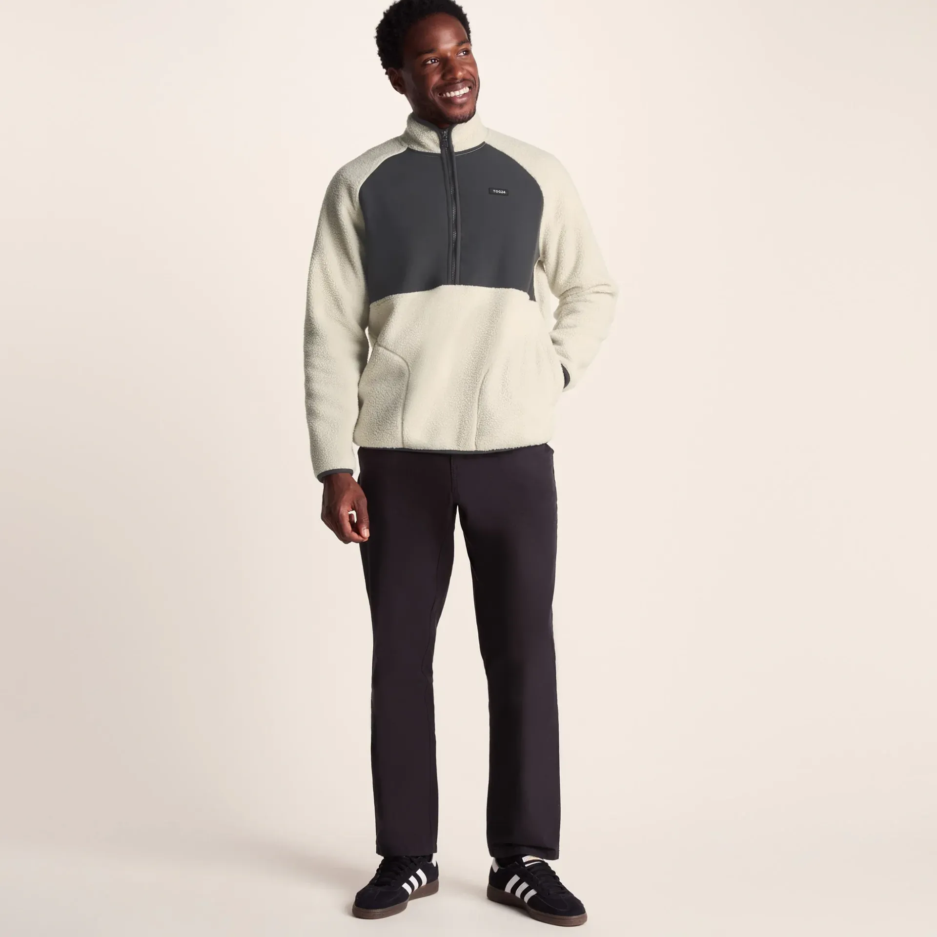 Product DescriptionUltra-soft and warm, the Eldon sherpa fleece feels great against the skin, and keeps the heat in brilliantly. Featuring a zip neck opening with elasticated binding for ease of wear, nd elasticated binding on the cuffs to keep the warmth in. The raglan sleeves give the Eldon a casual, relaxed look, and the TOG24 badge on the chest gives it a stylish, utility look.FeaturesWarm sherpa zip neckLaid on fabric panelRaglan sleevesZip neck opening with elasticated binding2 Lower pockets – no zipsElasticated binding on collar, hem and cuffsTOG24 badge on the chestFitStudio model Efosa is wearing size M and is 6’1